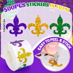 Mardi Gras Fleur de Lis Glitter Stickers Roll