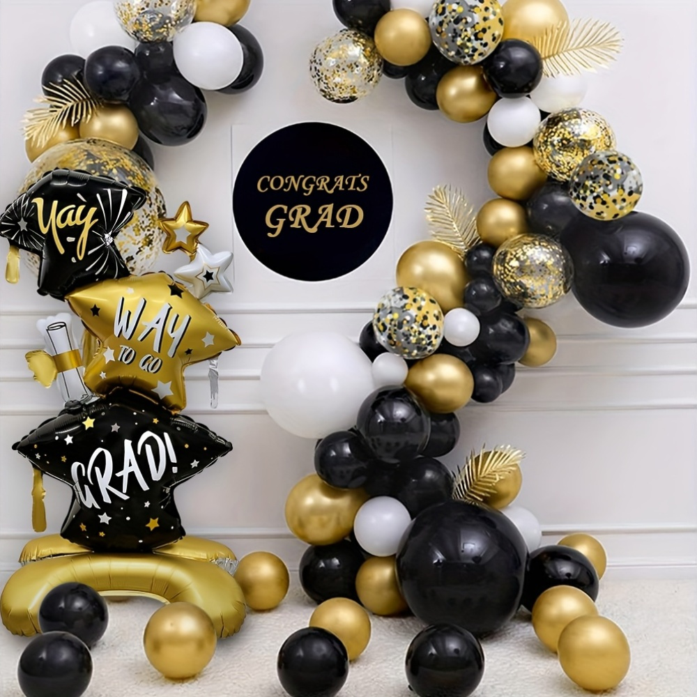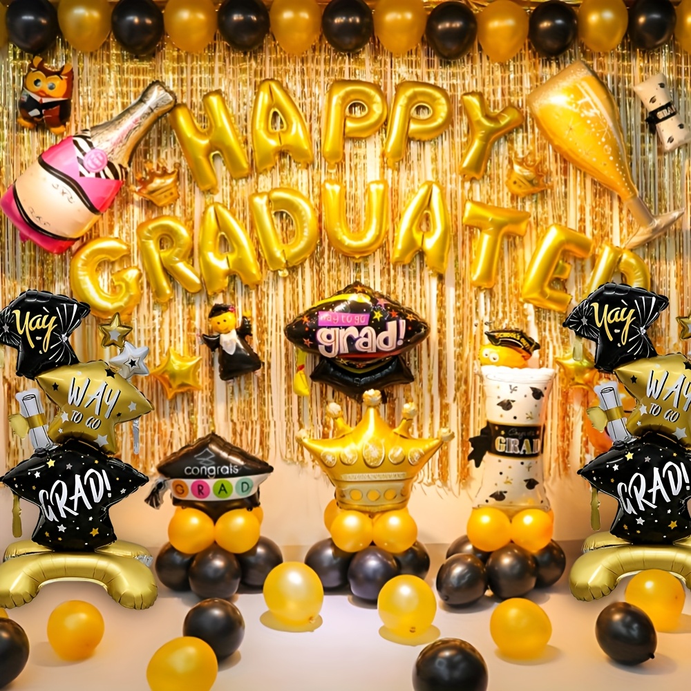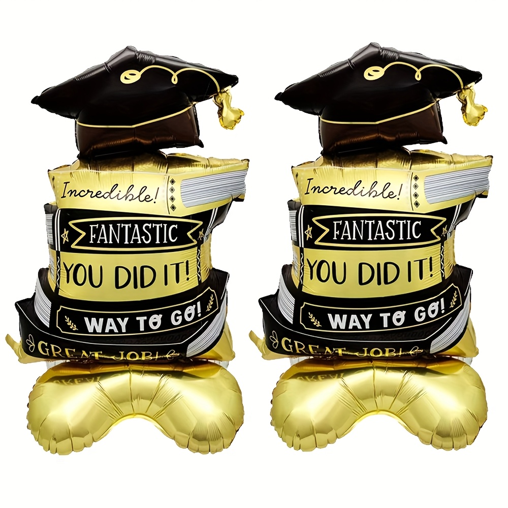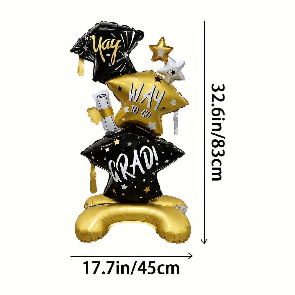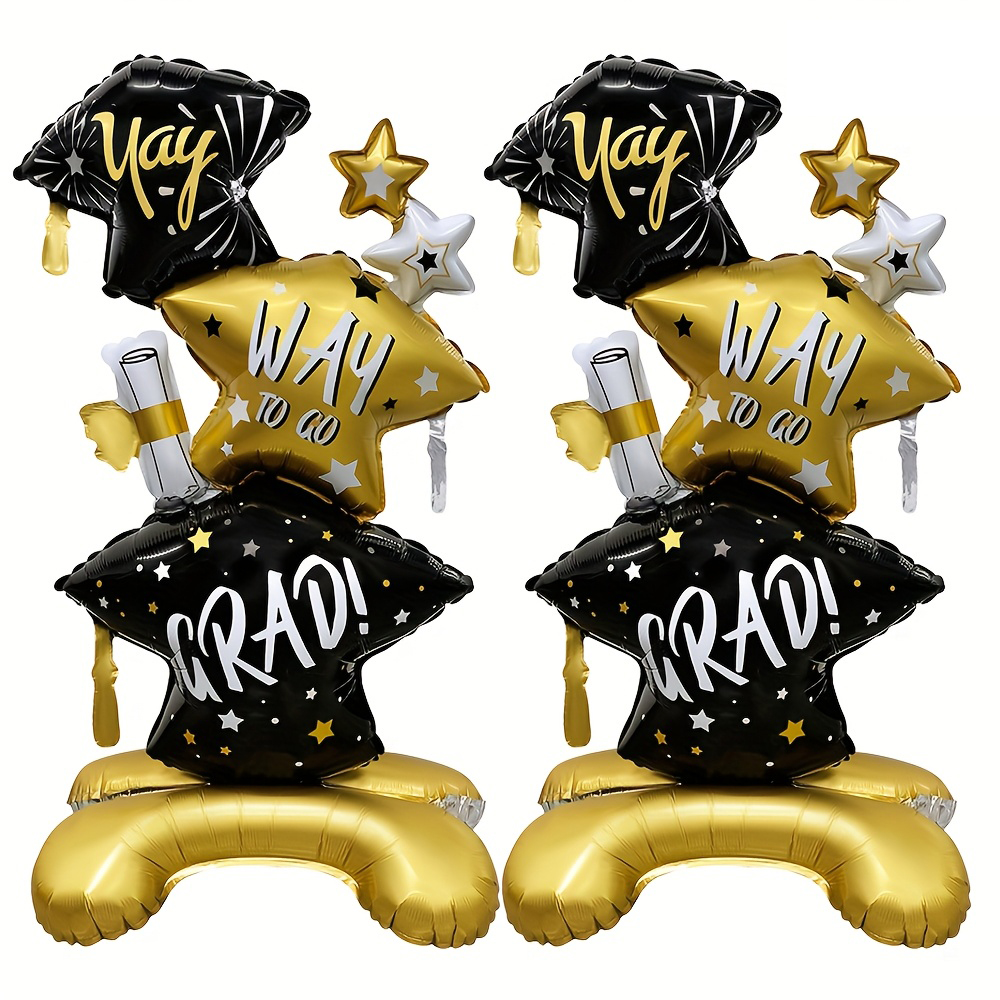 PartyDecorpro Celebration Aluminum Foil Balloon Set – “Yay! Grad!” Hats, Stars, and Diploma Designs