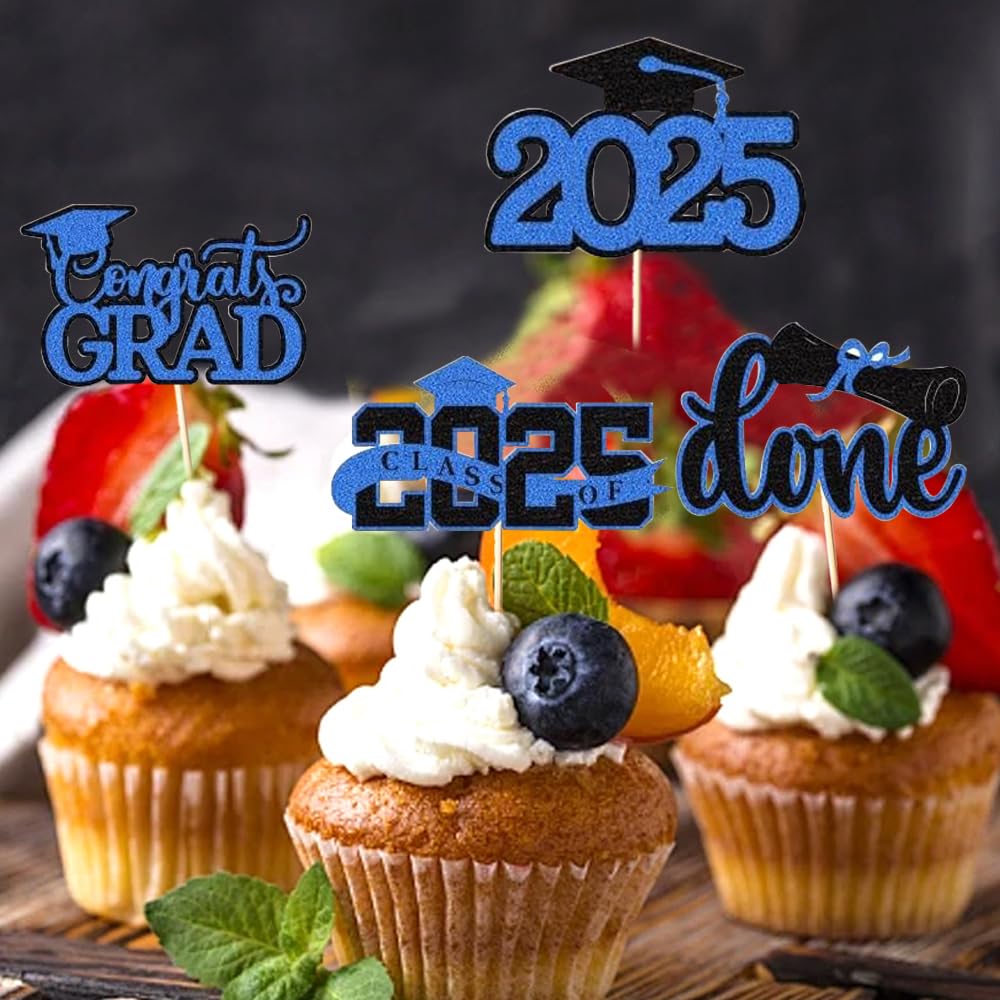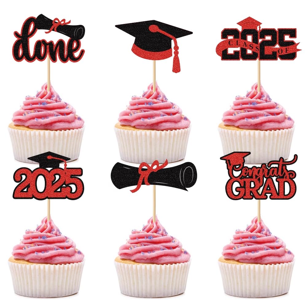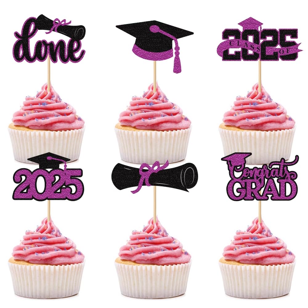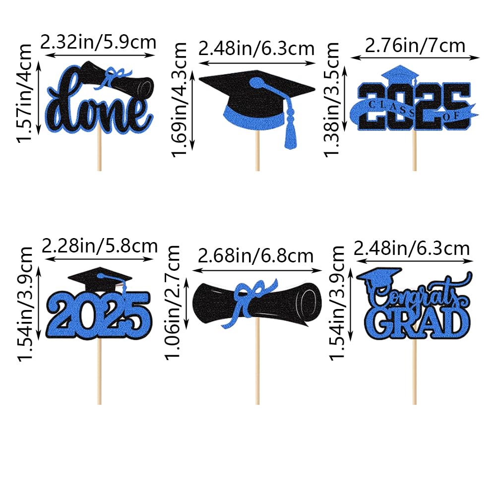 | Package Included | 24 pieces of Graduation Cupcake Toppers in 6 styles (Congrats Grad, Diploma, Cap, Done, etc.), 4 pieces per style. Pre-assembled for immediate use. |