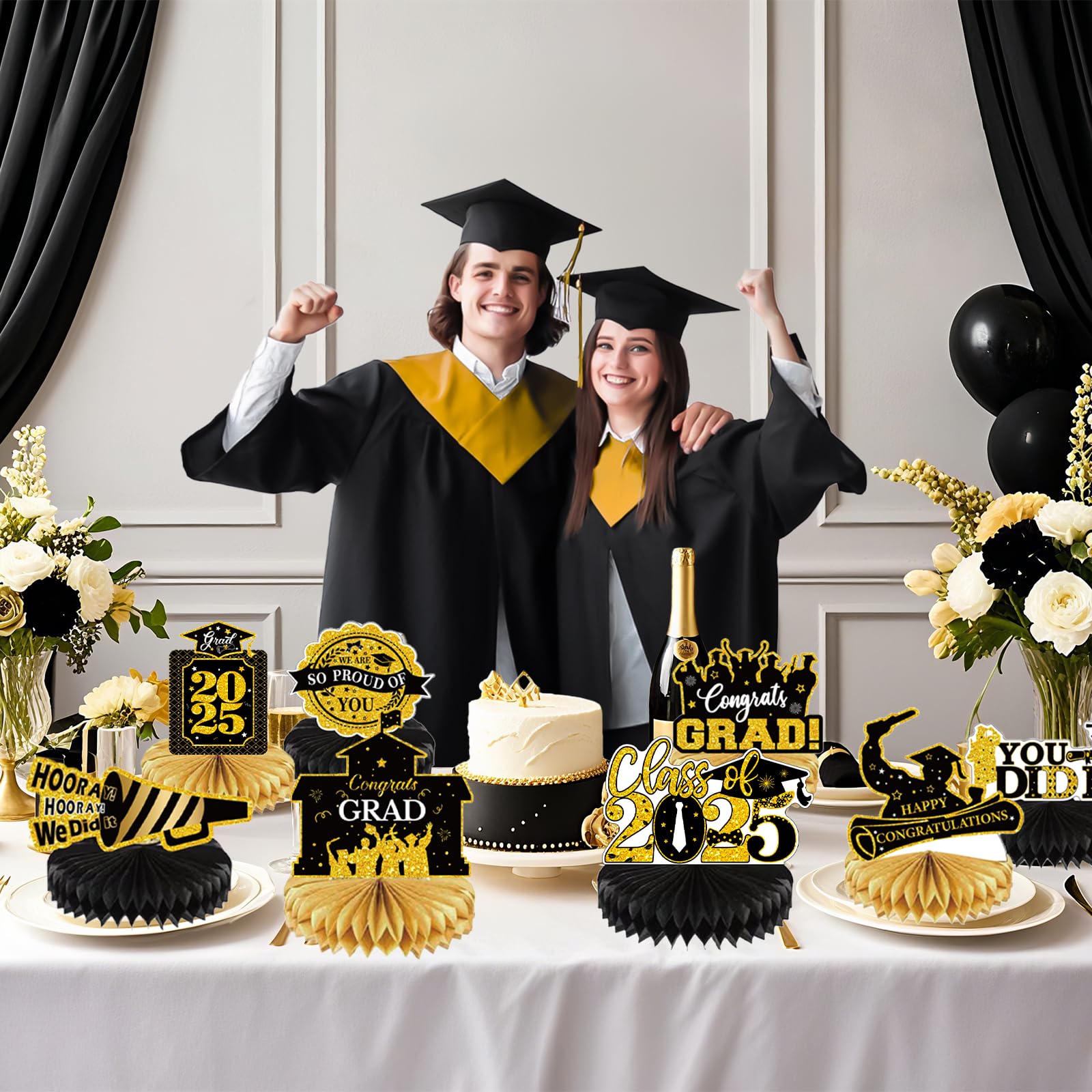 PartyDecorpro is a professional party decoration brand dedicated to high-quality, creative theme solutions for global customers. This set of Graduation Honeycomb Centerpieces is customized for Graduation Party Decorations in Black Gold, Maroon Gold, or Blue Gold themes (customizable: birthday, party, holiday themes, etc.), creating a vibrant atmosphere. Ideal for school ceremonies or family gatherings—perfect for B2B Graduation Decorations Wholesale and Graduation Centerpieces Custom services, with personalized OEM customization.