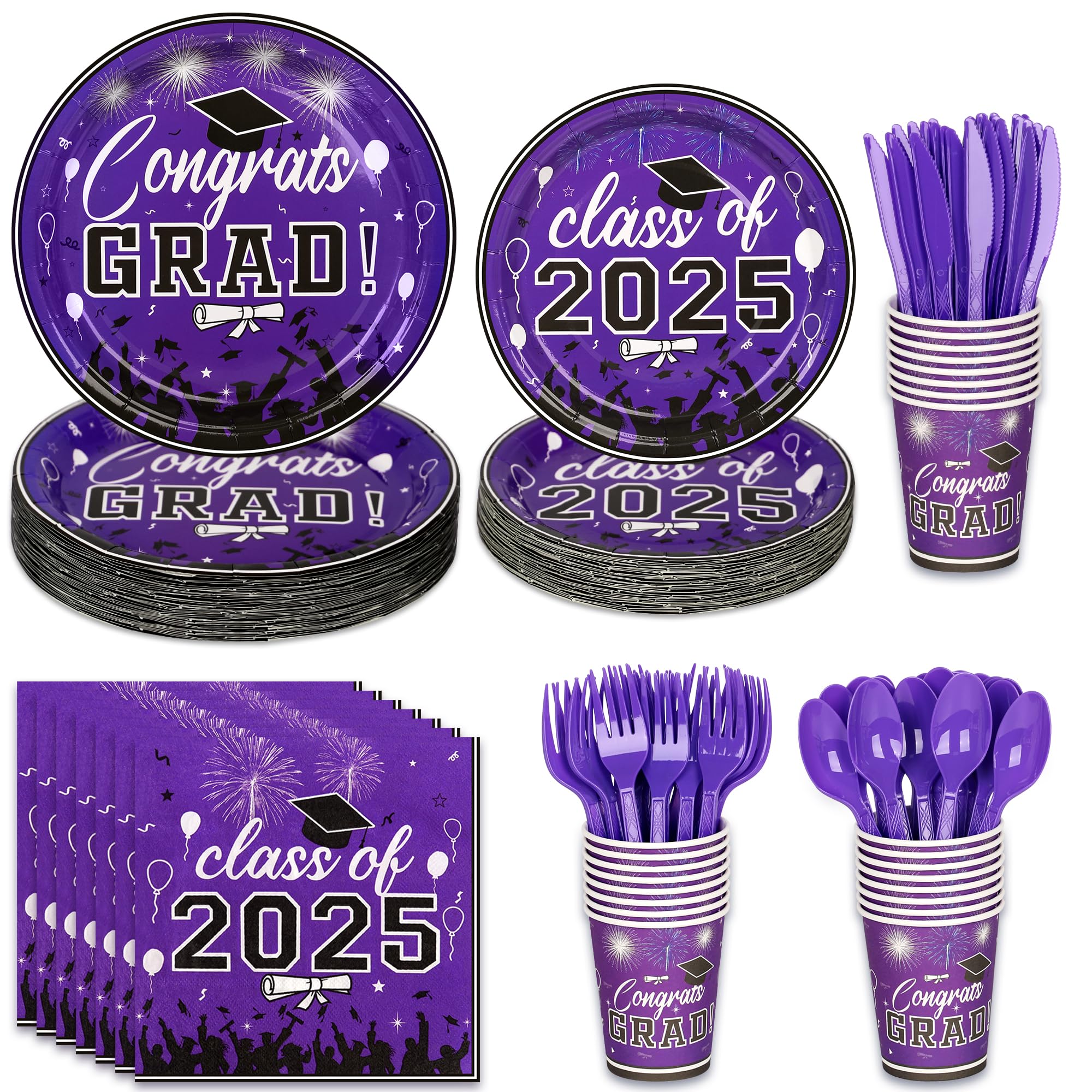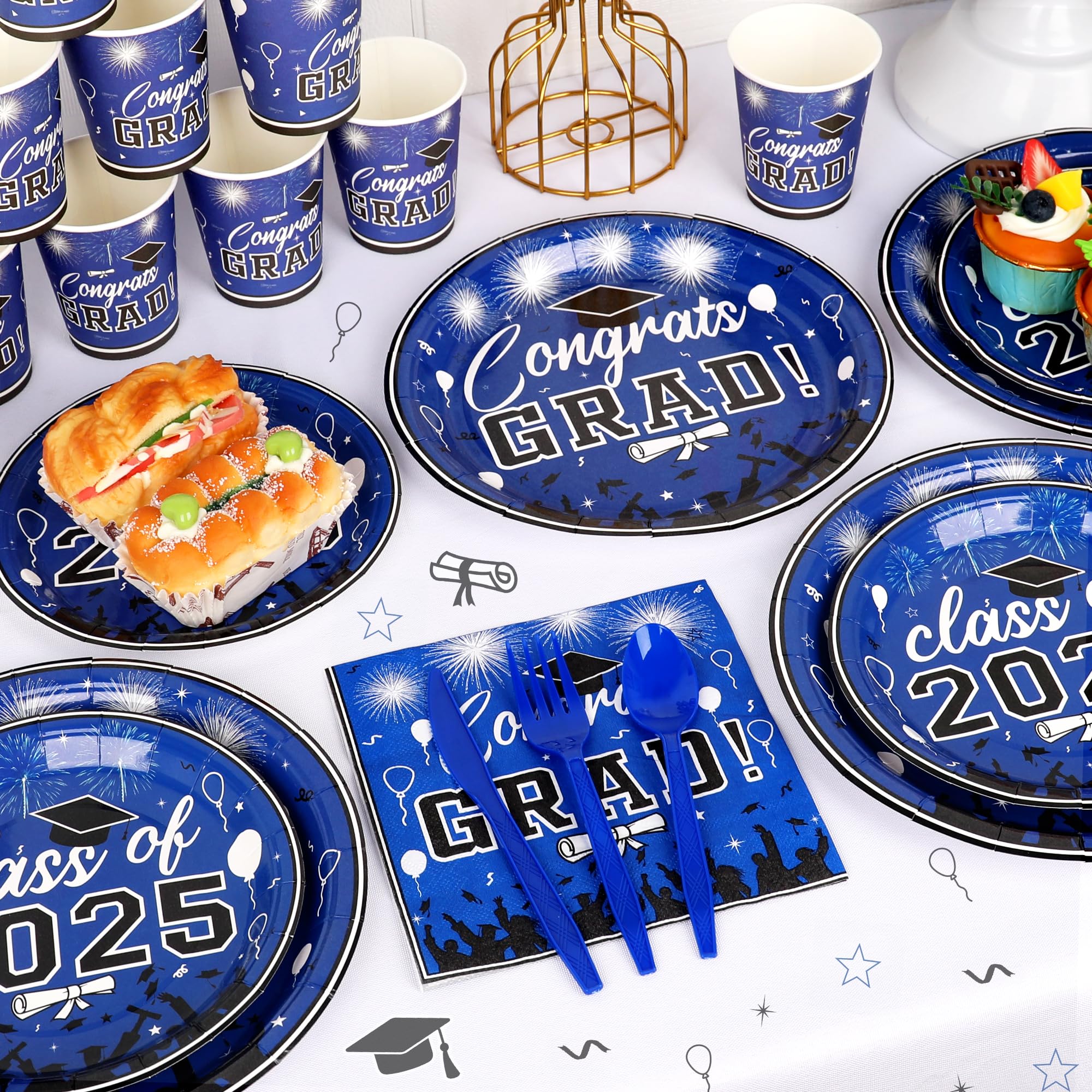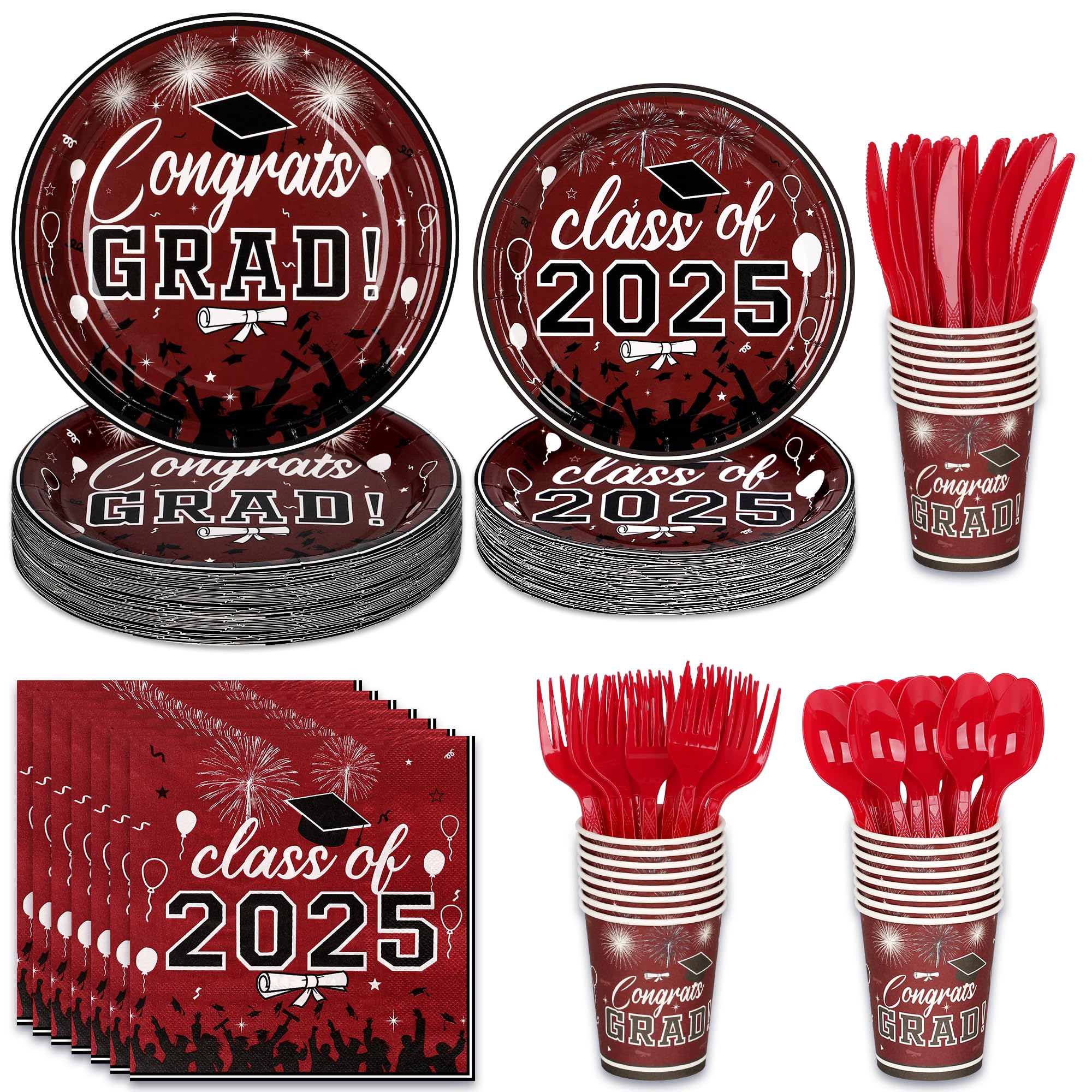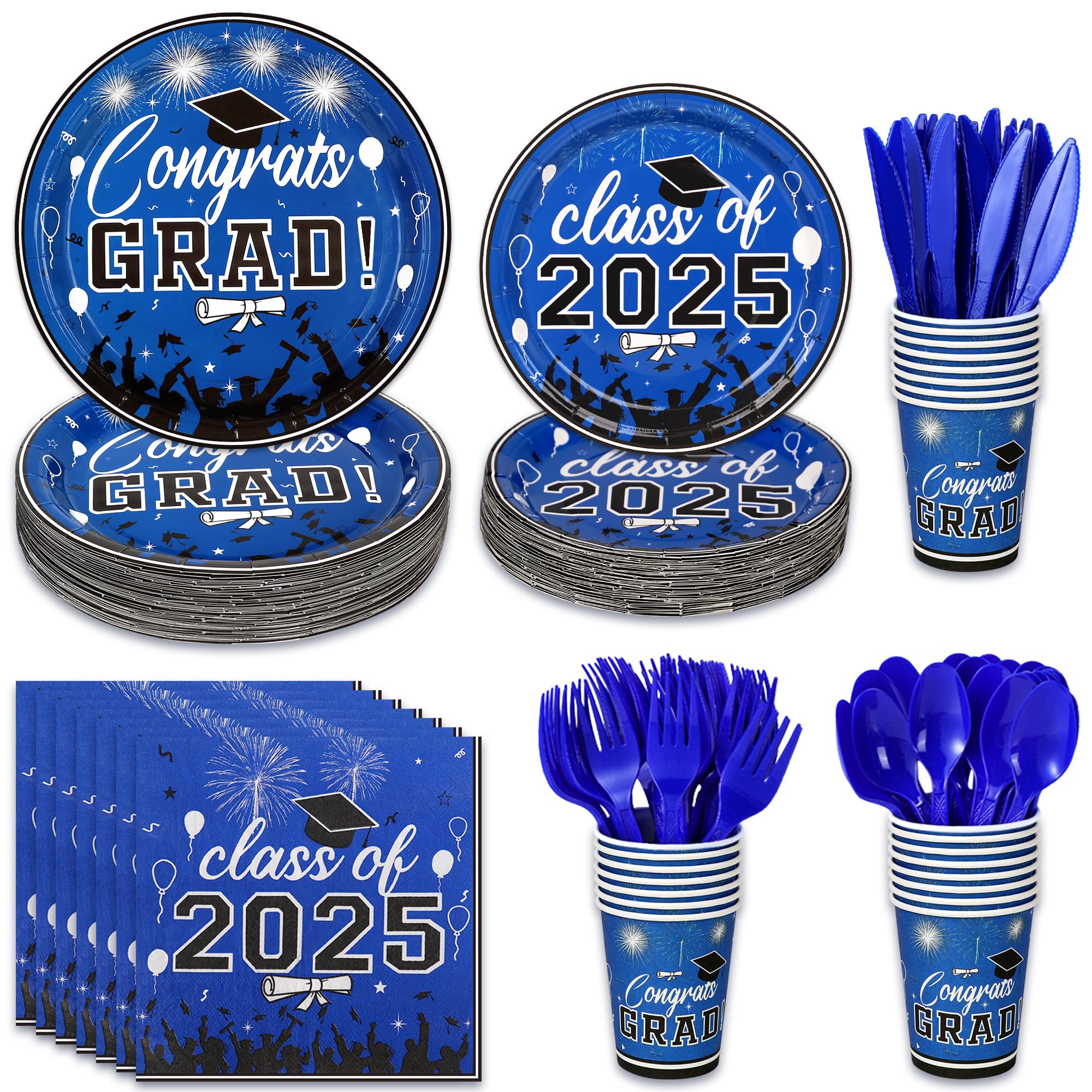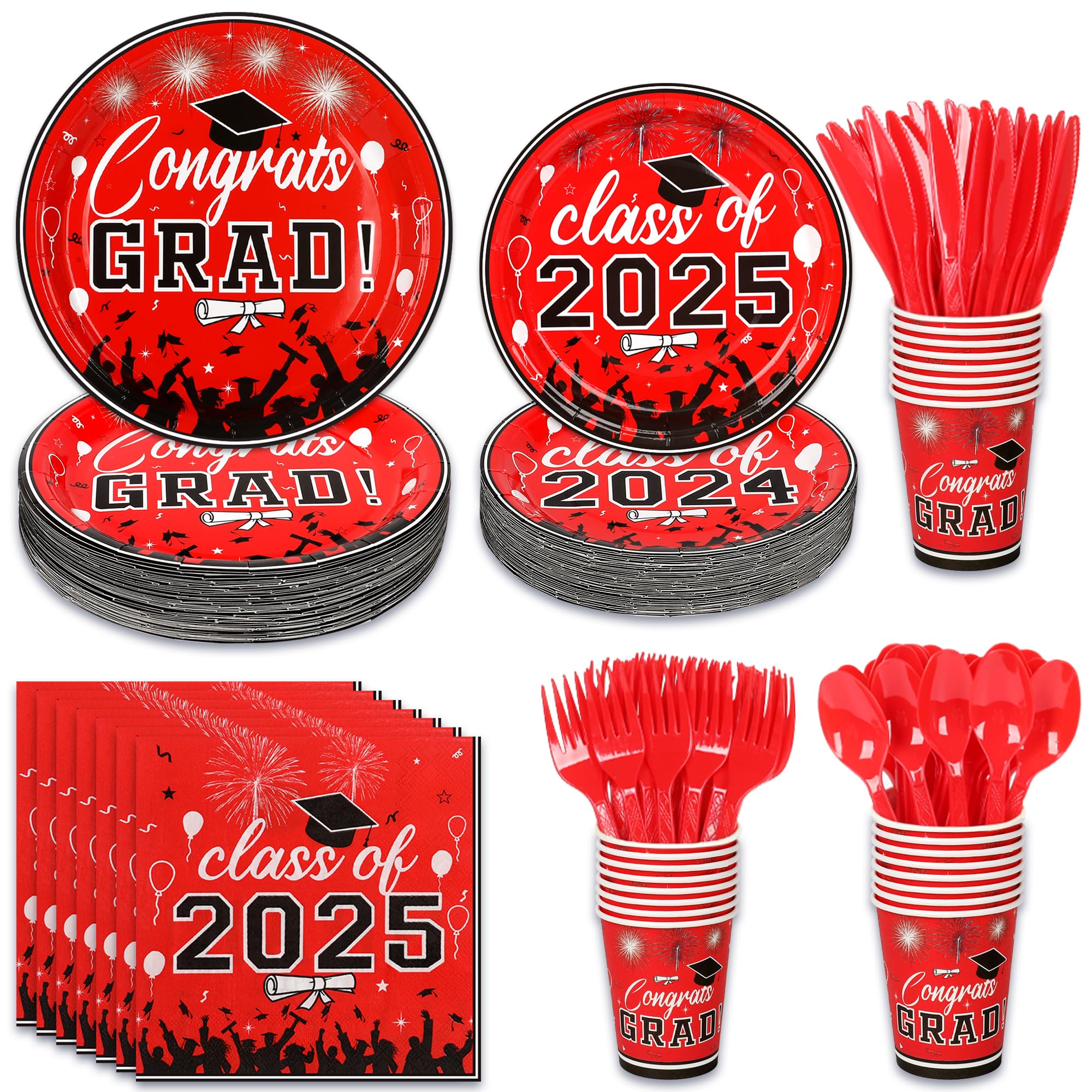 Graduation Party Supplies Tableware Set – Paper Plate Napkin Cup Knife Fork Spoon for Grad Party Decor Serves Guests