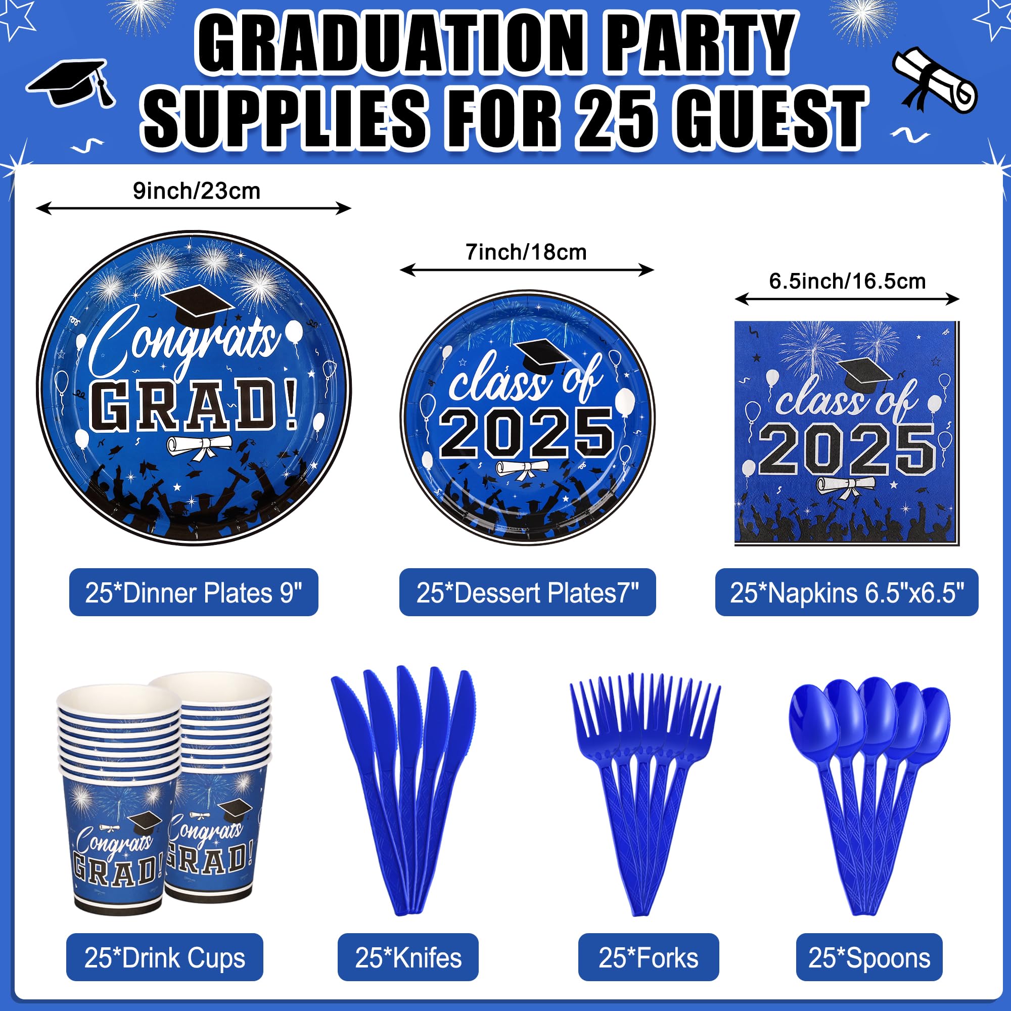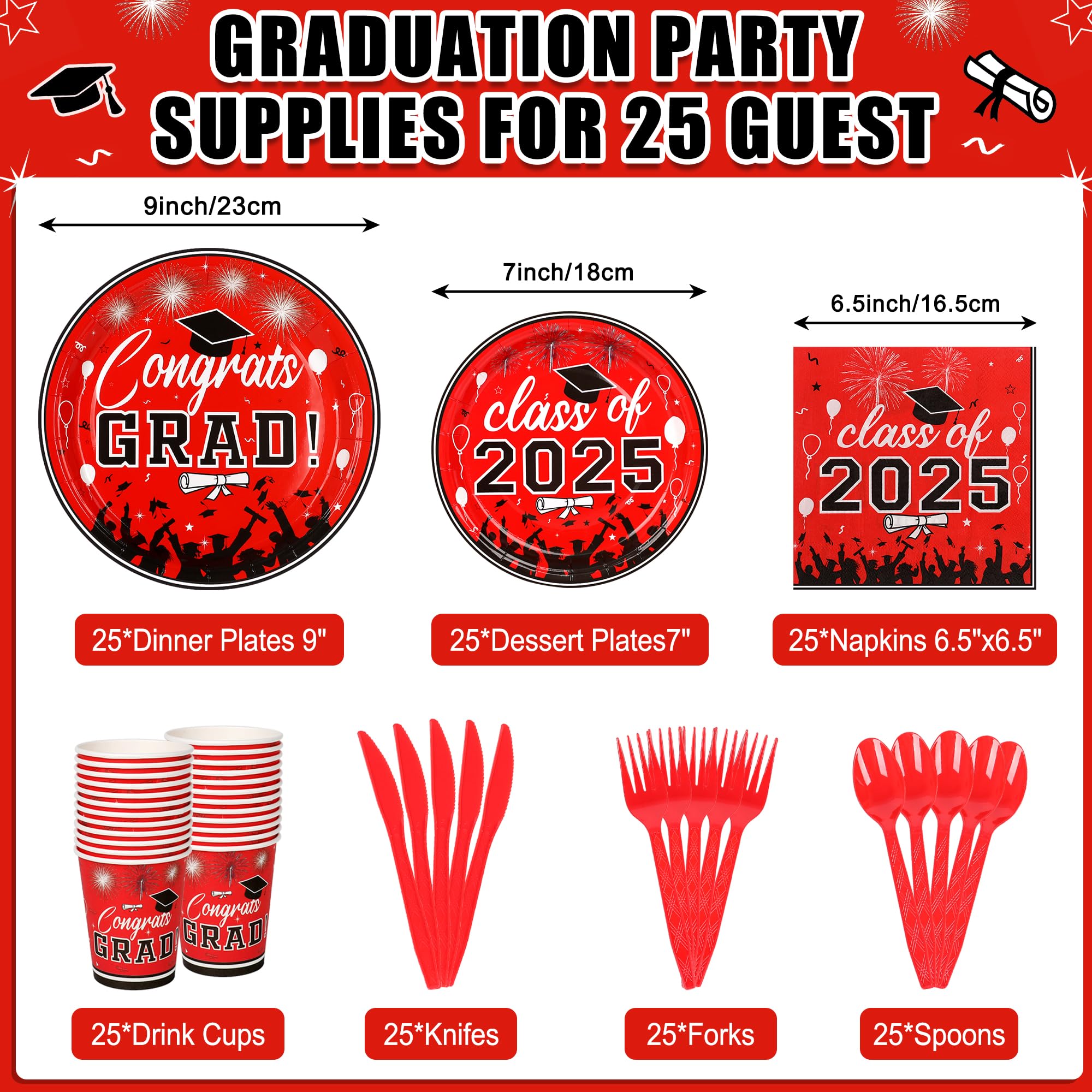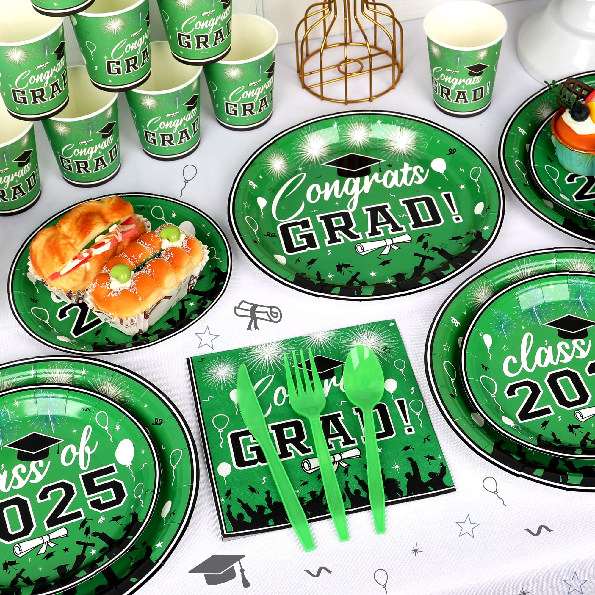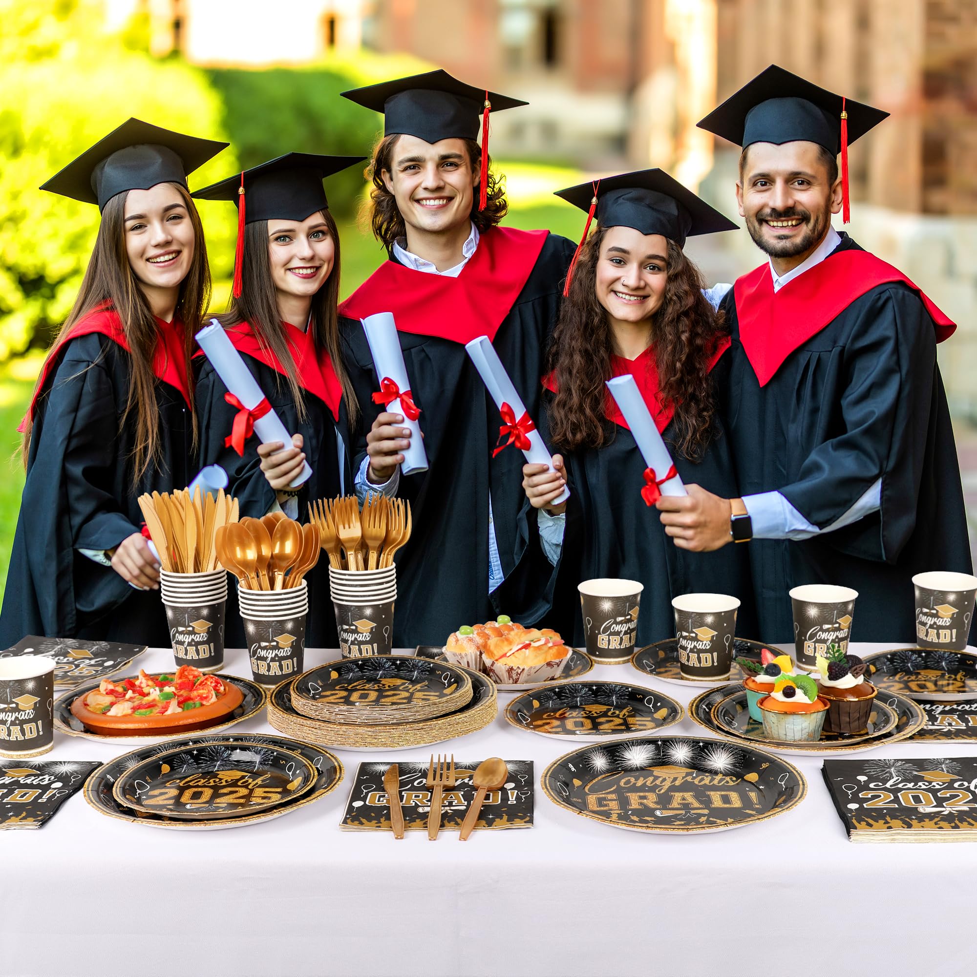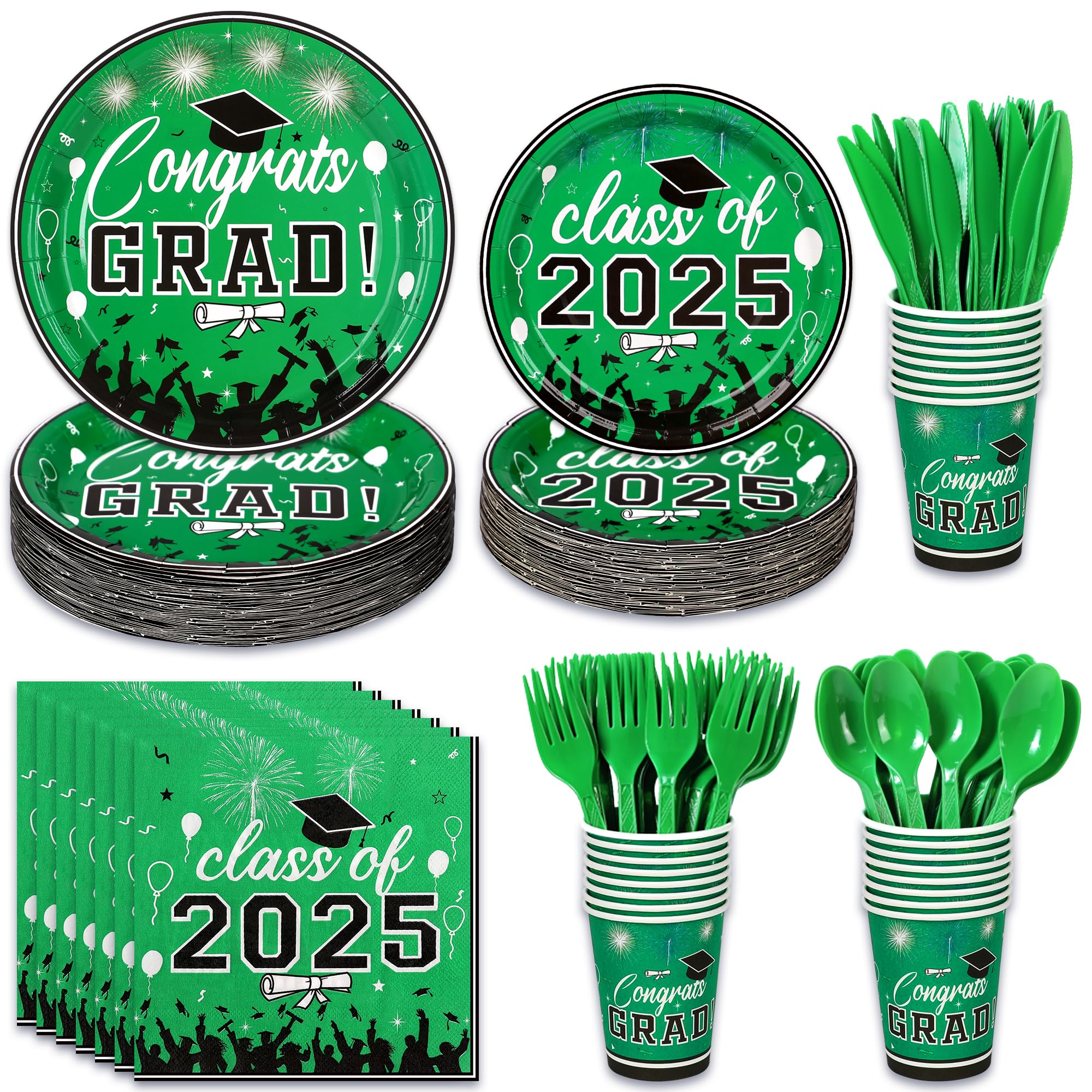 Graduation Party Supplies Tableware Set – Paper Plate Napkin Cup Knife Fork Spoon for Grad Party Decor Serves Guests