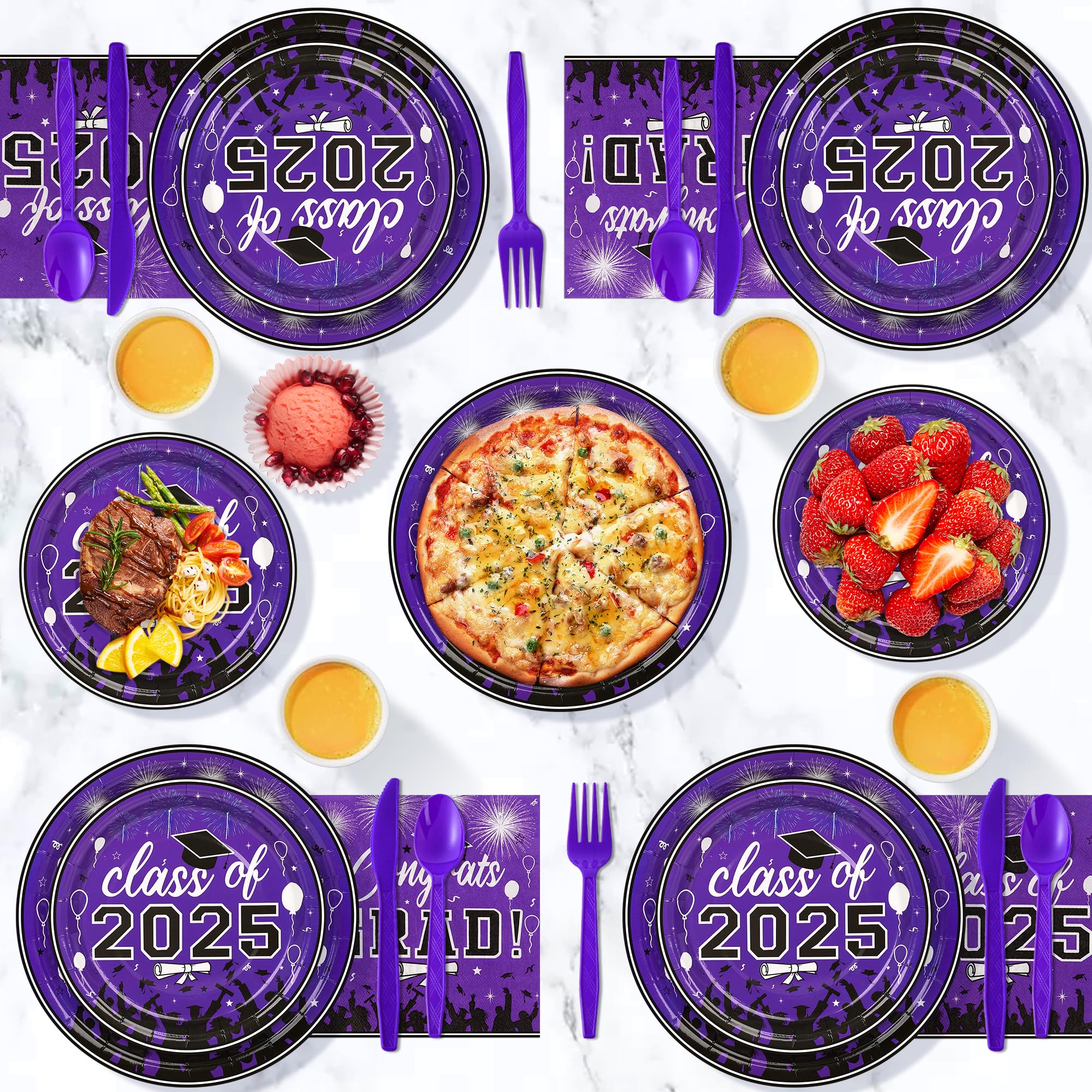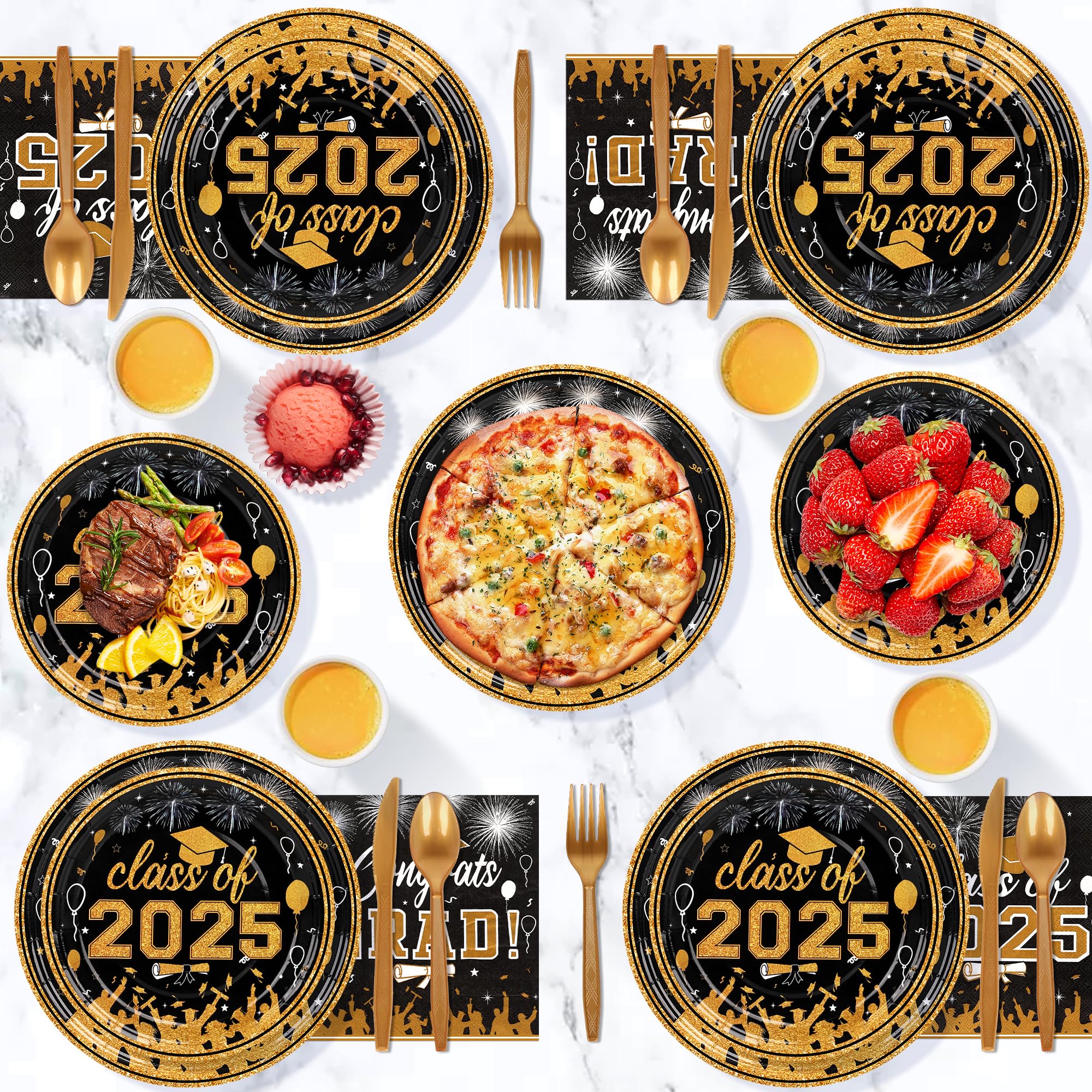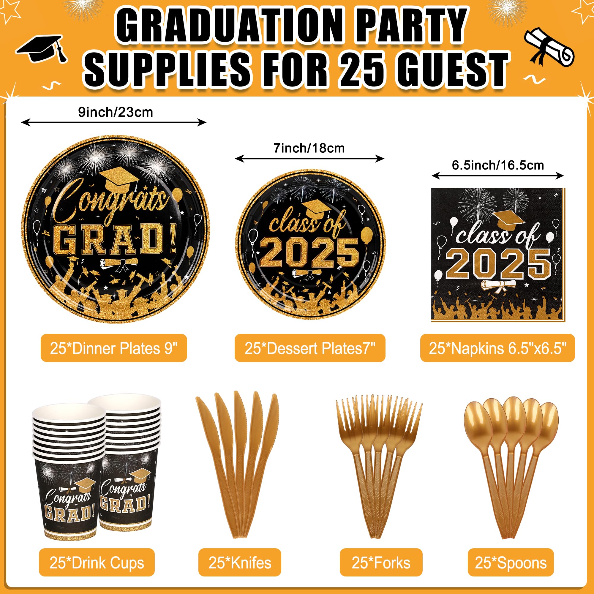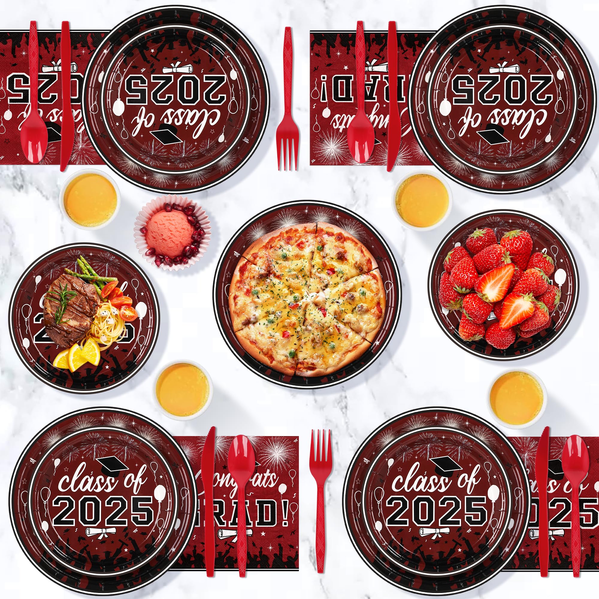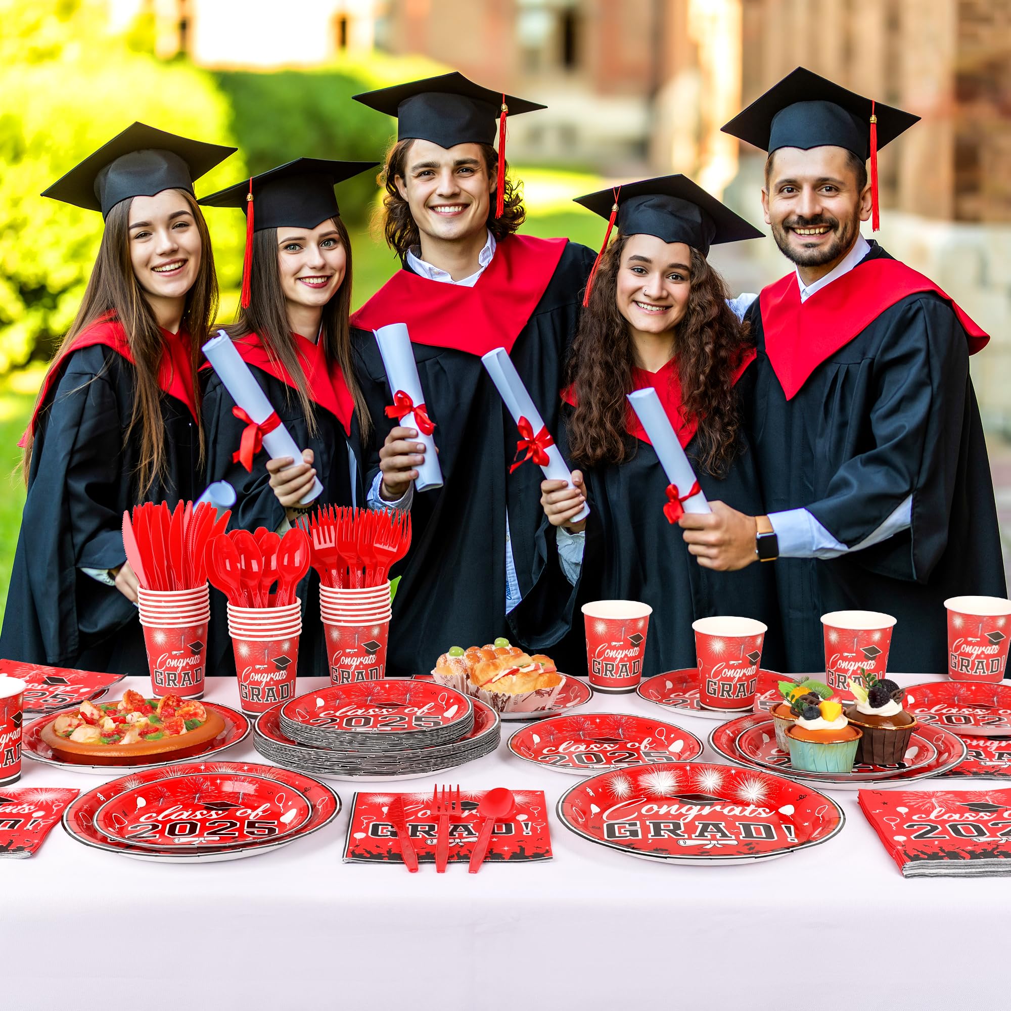 Graduation Party Supplies Tableware Set – Paper Plate Napkin Cup Knife Fork Spoon for Grad Party Decor Serves Guests