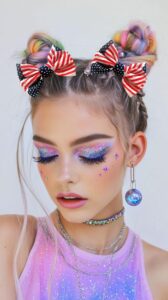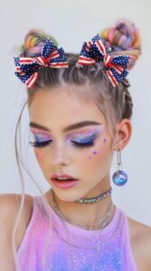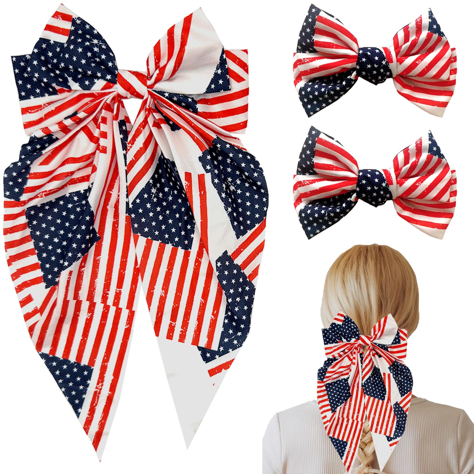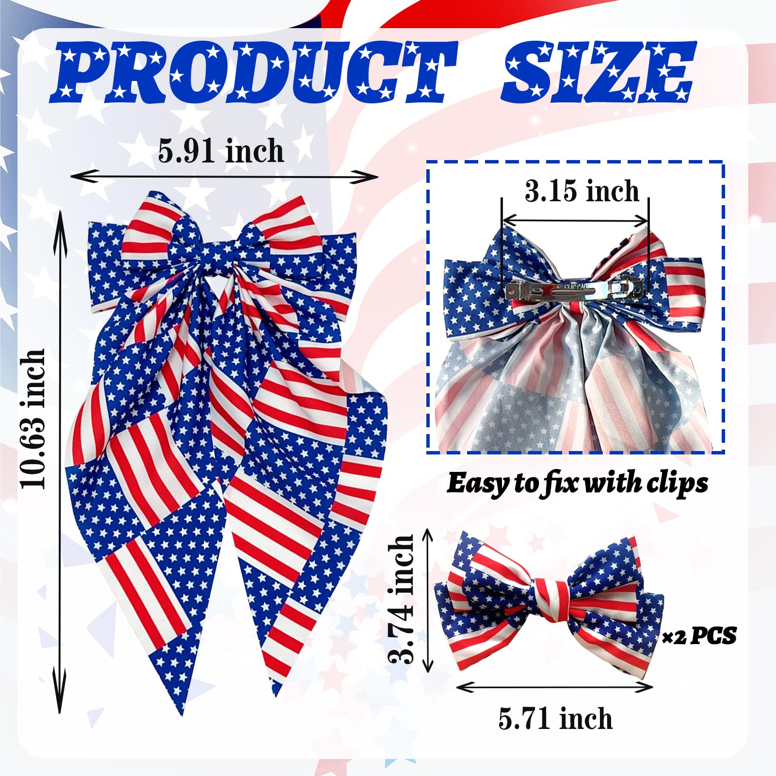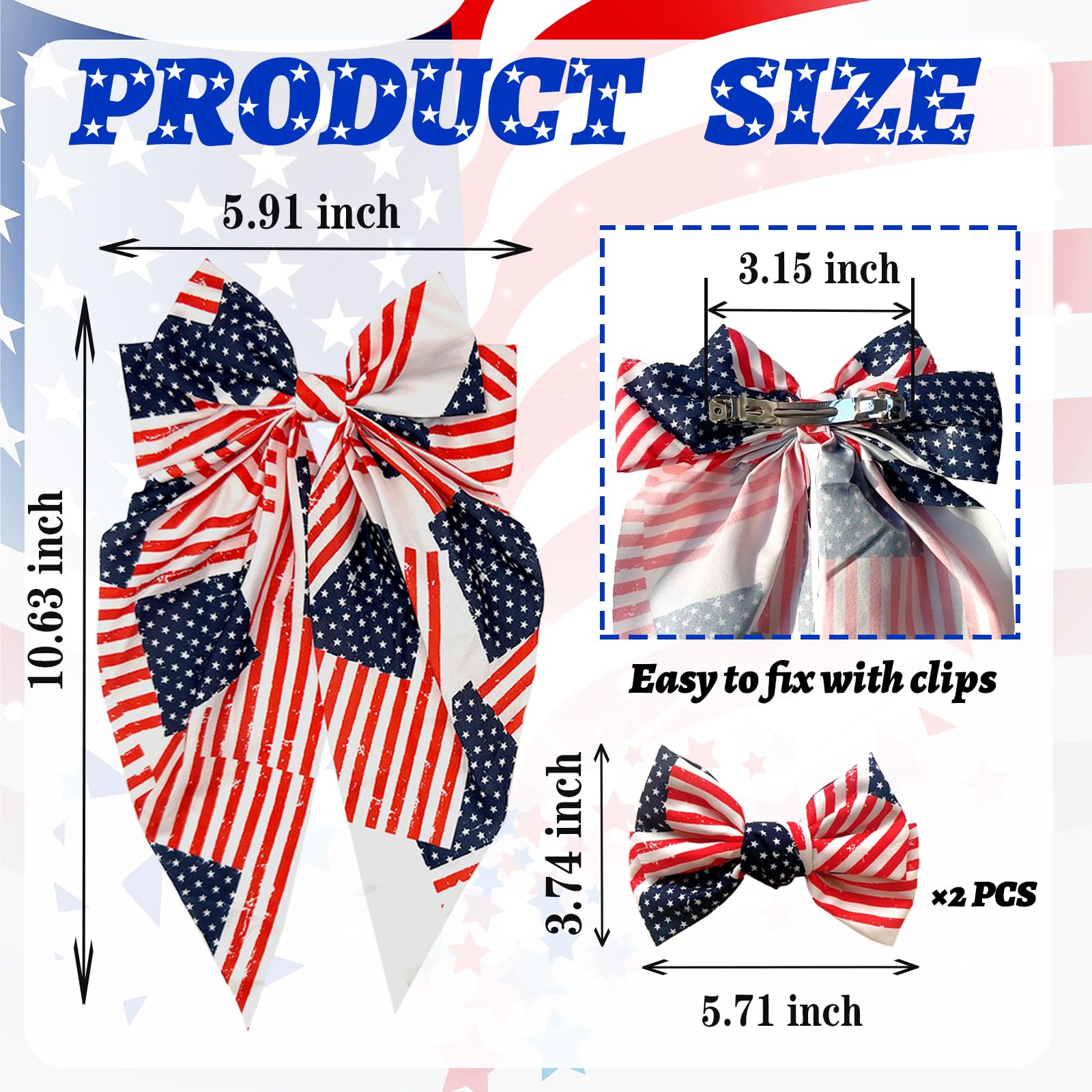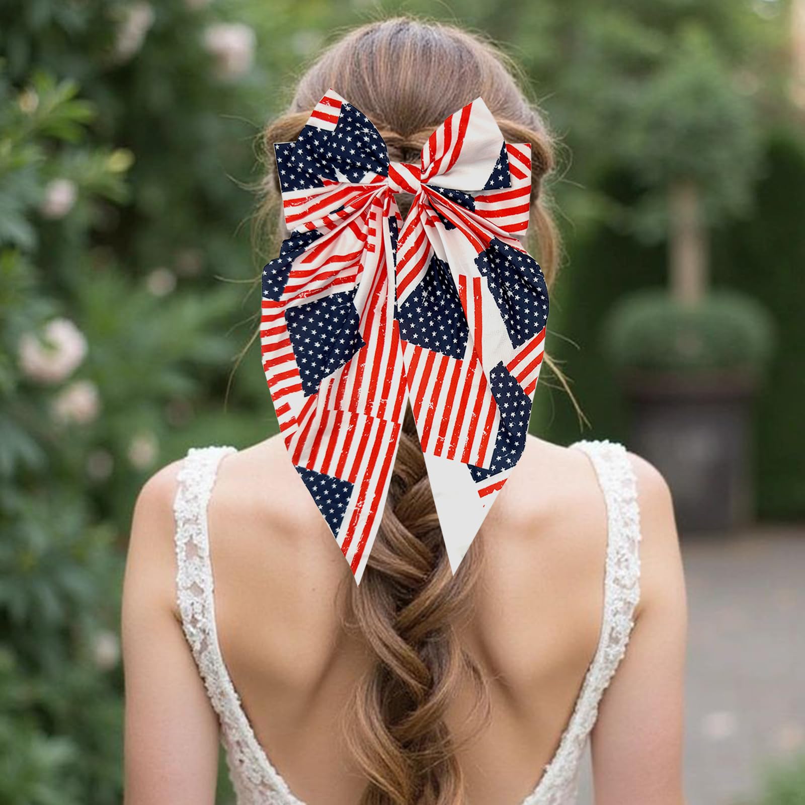 PartyDecorpro Patriotic Hair Bows – American Flag Hair Accessories