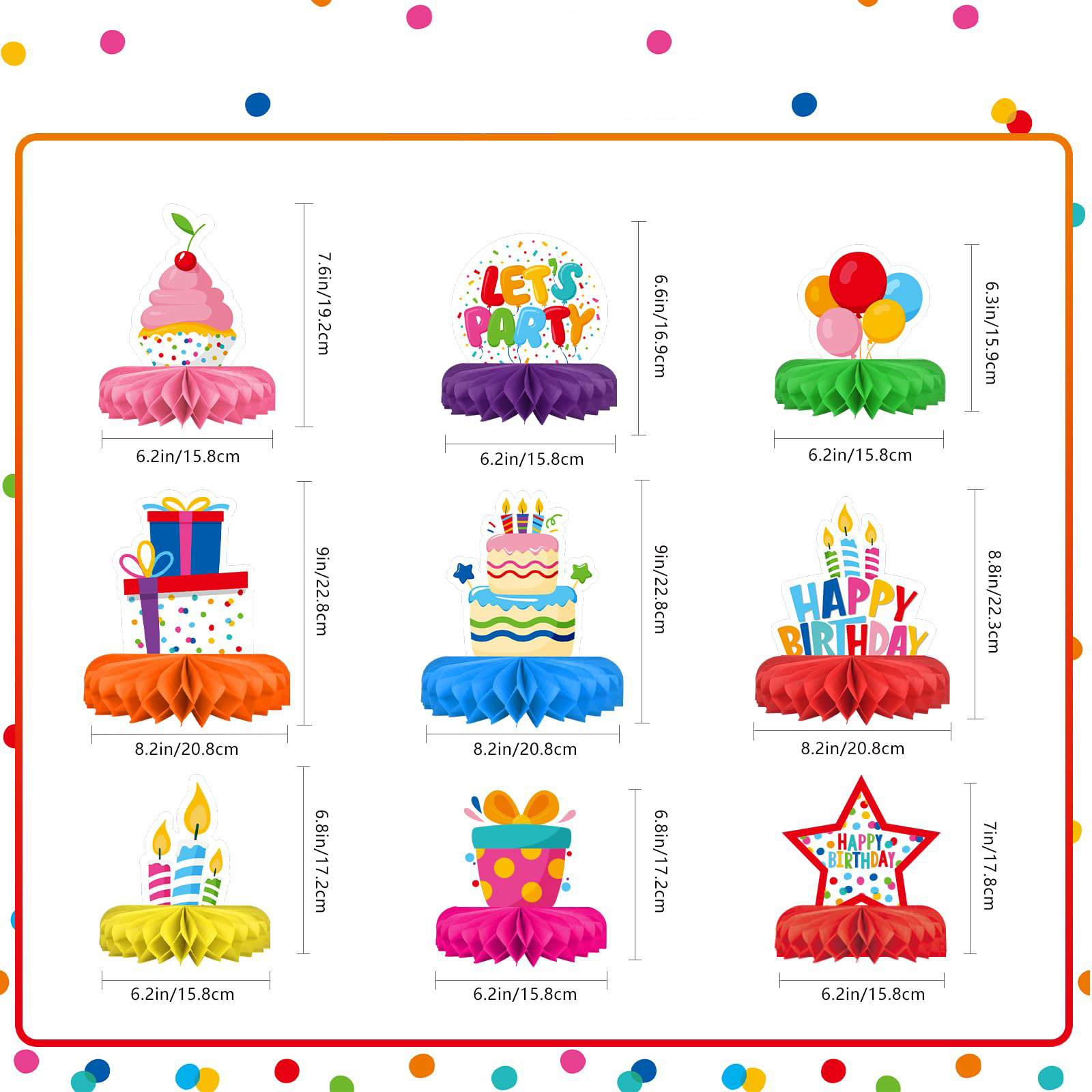 Happy Birthday Honeycomb Centerpiece Set PartyDecorpro: As a professional party decorations manufacturer, we offer high-quality OEM/ODM services worldwide. Our birthday honeycomb centerpieces bring vibrant joy to celebrations. Ideal for honeycomb centerpieces wholesale and supplier needs, with options for custom logo, pattern and style.