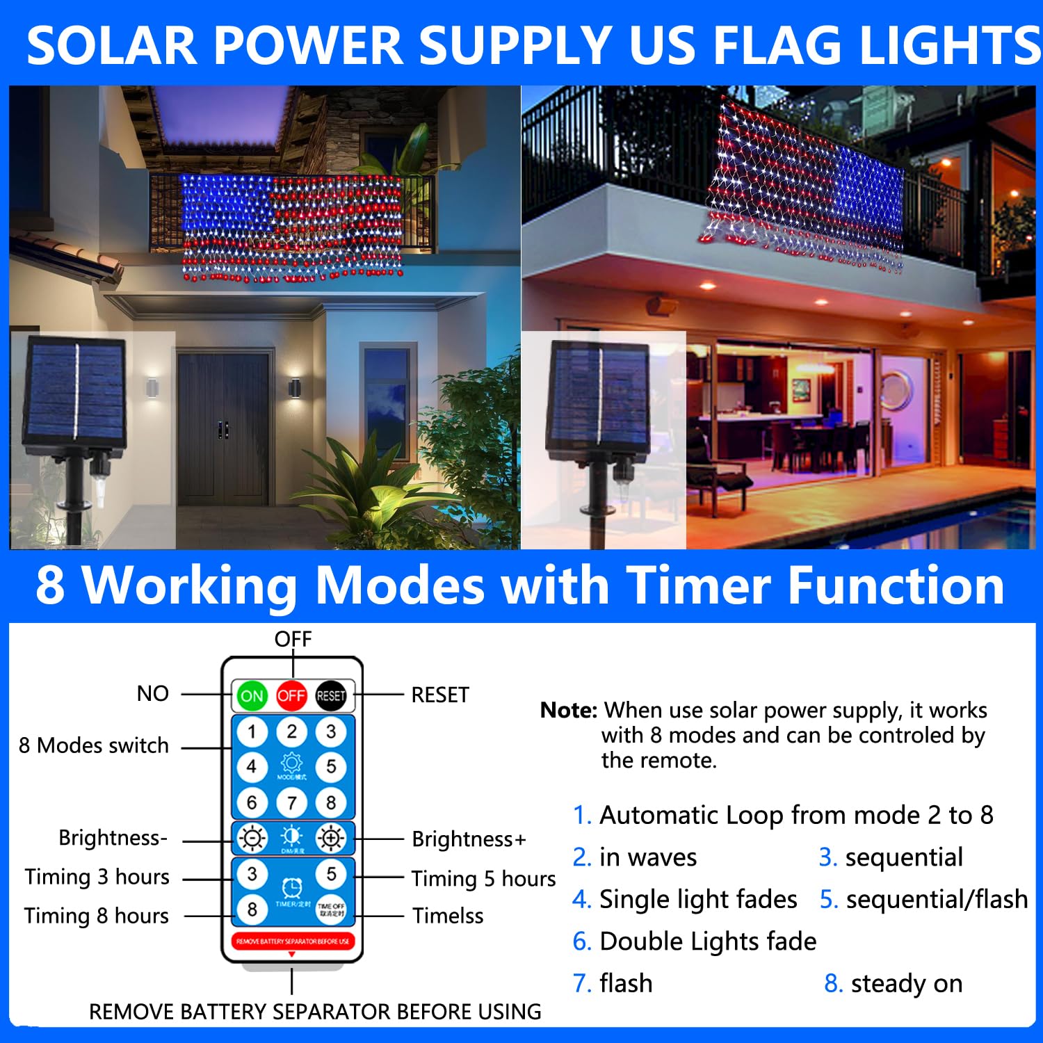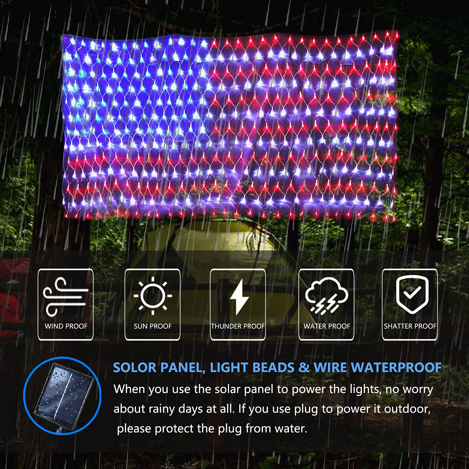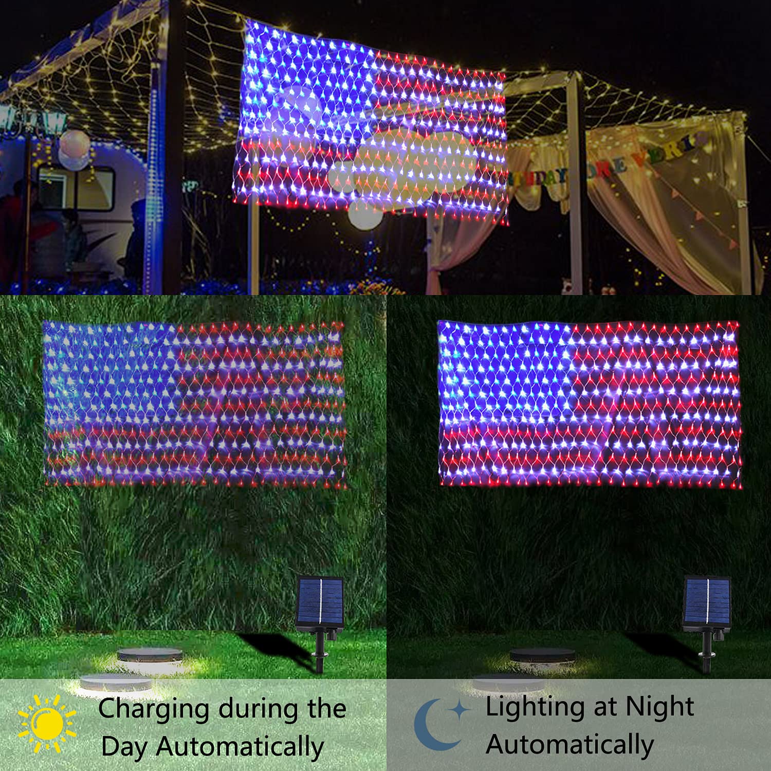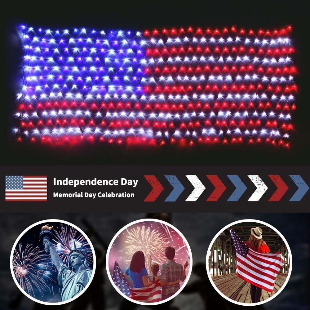 PartyDecorpro American Flag Net Lights:Patriotic LED Decorations