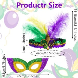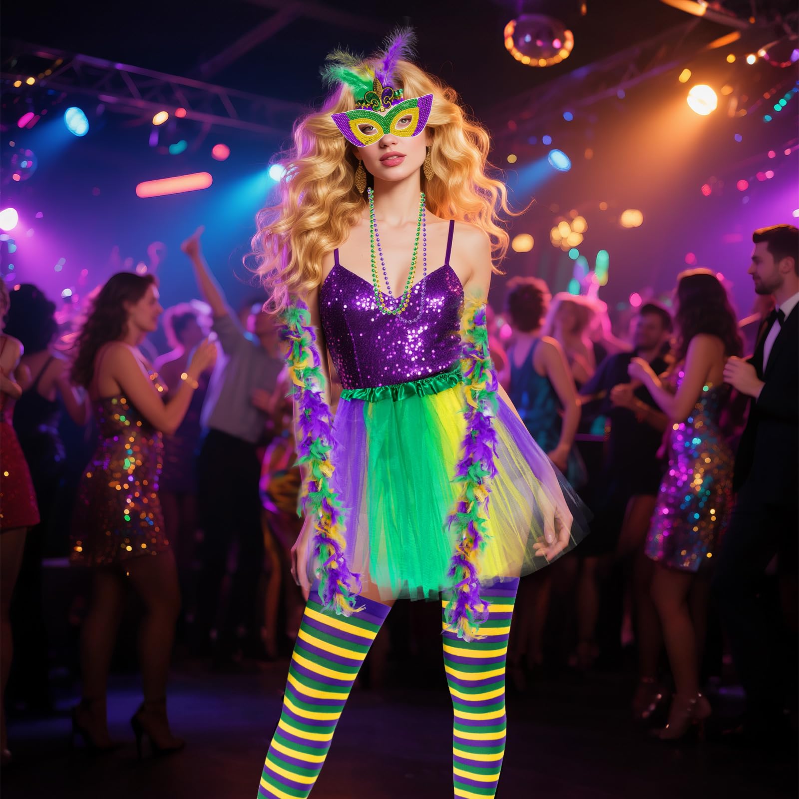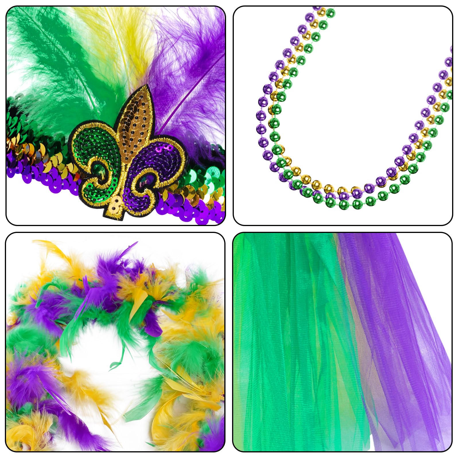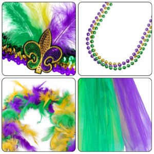 Mardi Gras Costume Accessory Set Tutu Skirt, Faux Feather Headband, Mask, Mardi Gras Beads, Feather Boa, Socks for Women
