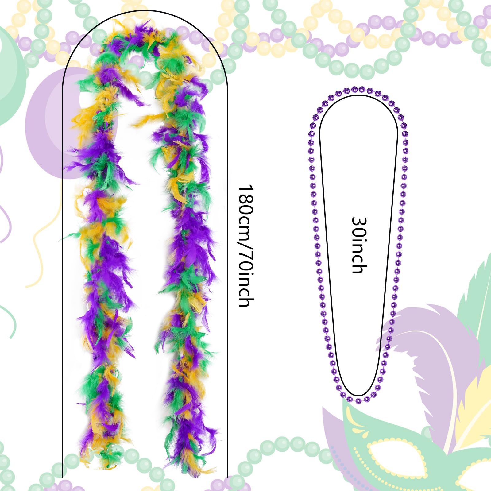 | Package Includes | 1 x Tutu Skirt, 1 x Mask, 1 x Mardi Gras Headband, 1 x Mardi Gras Feather Boa, 3 x Beads Necklaces, 1 x Pair Socks |