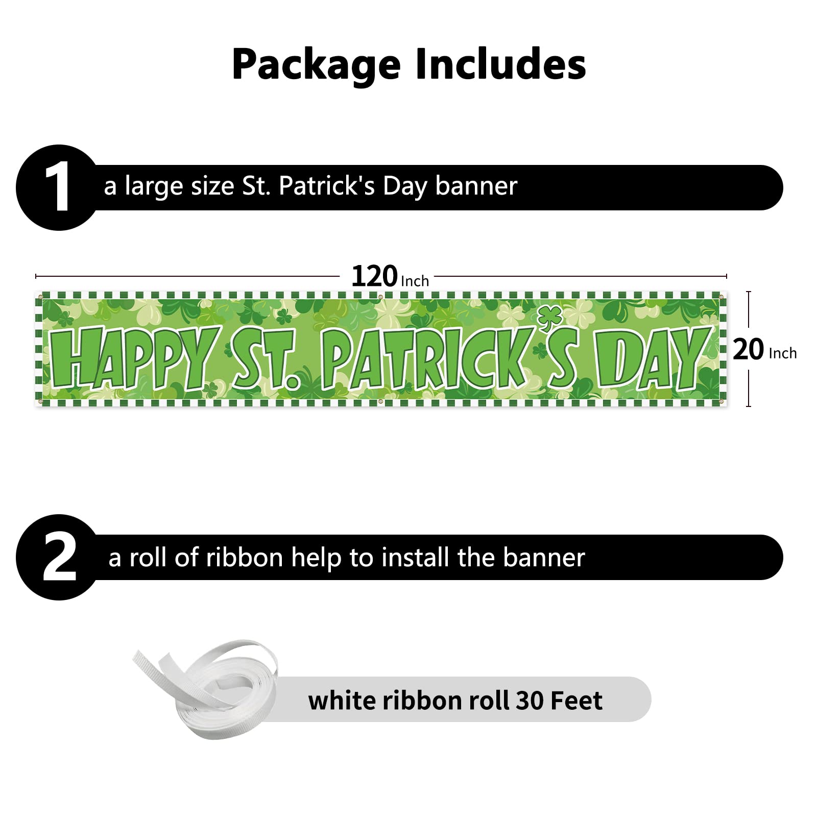 | Quantity | 1 banner + 1 roll of white ribbon (30 feet) |