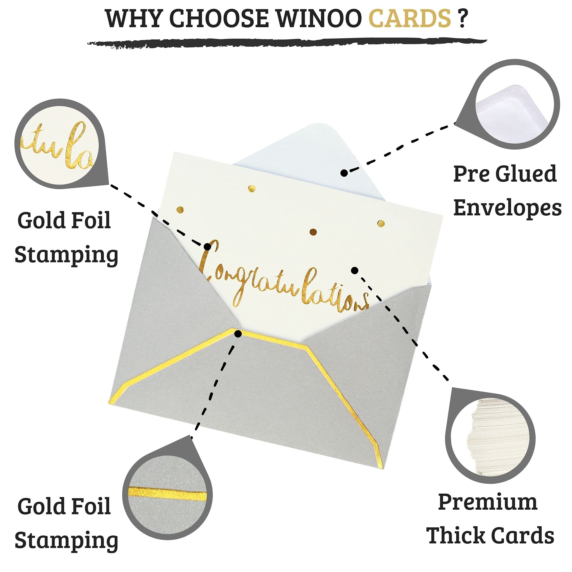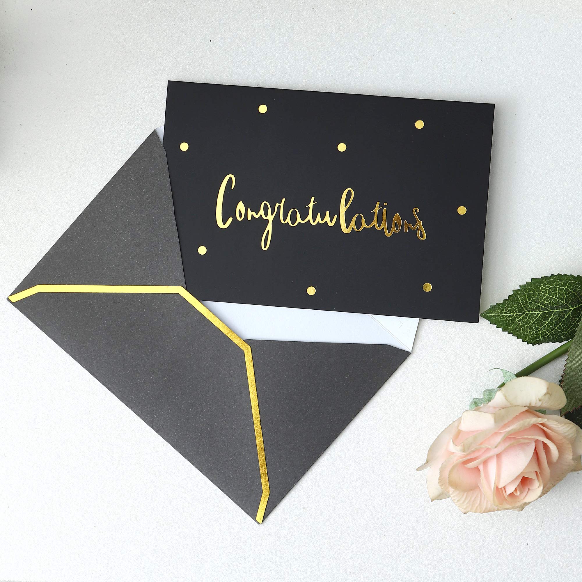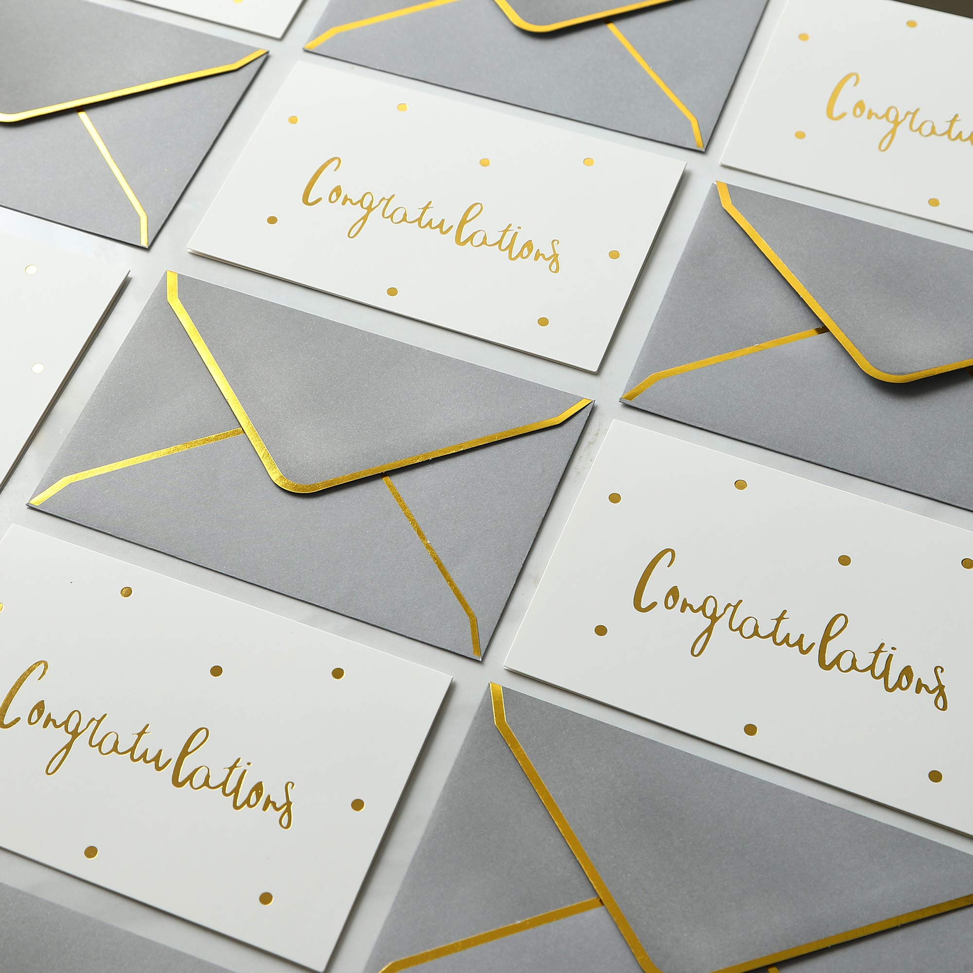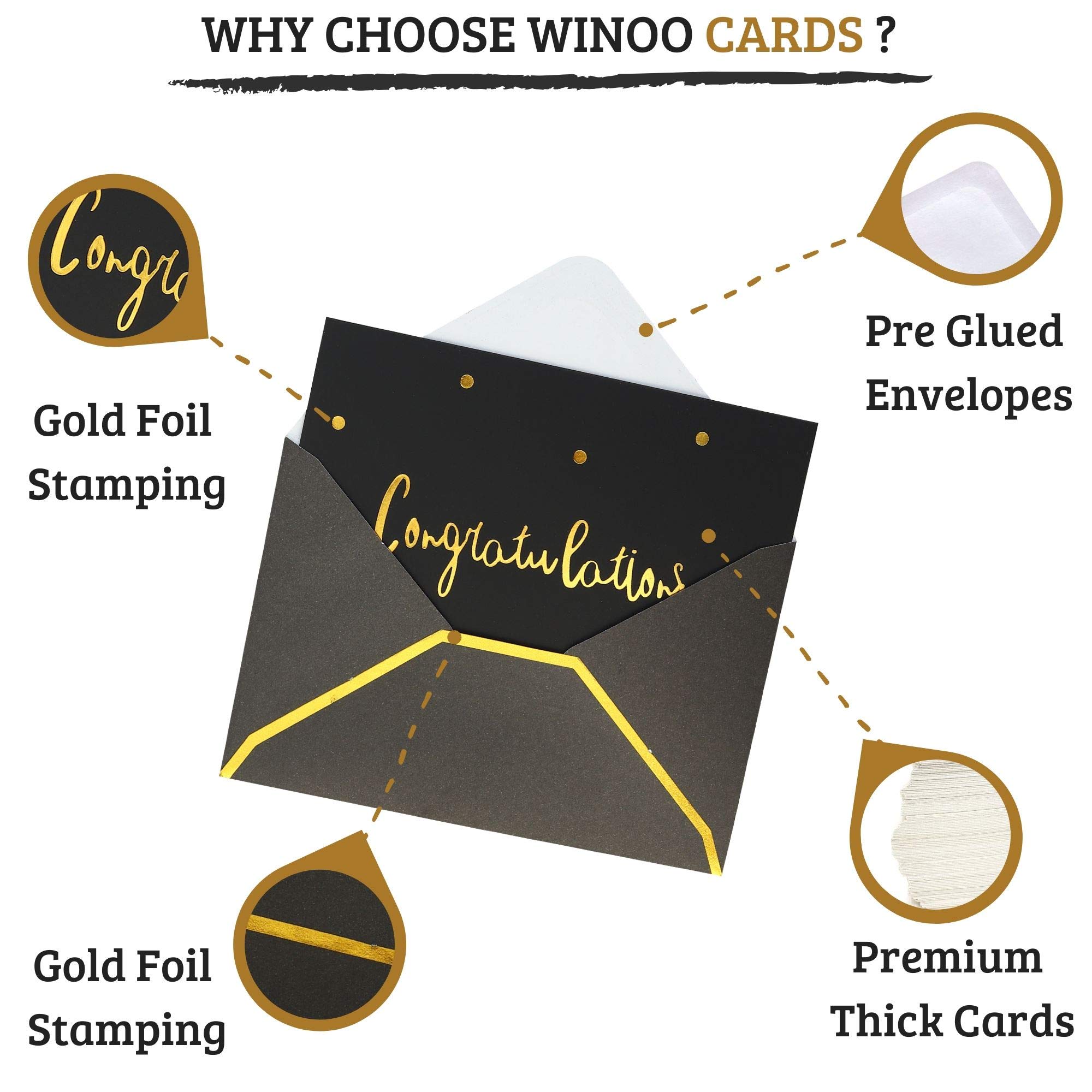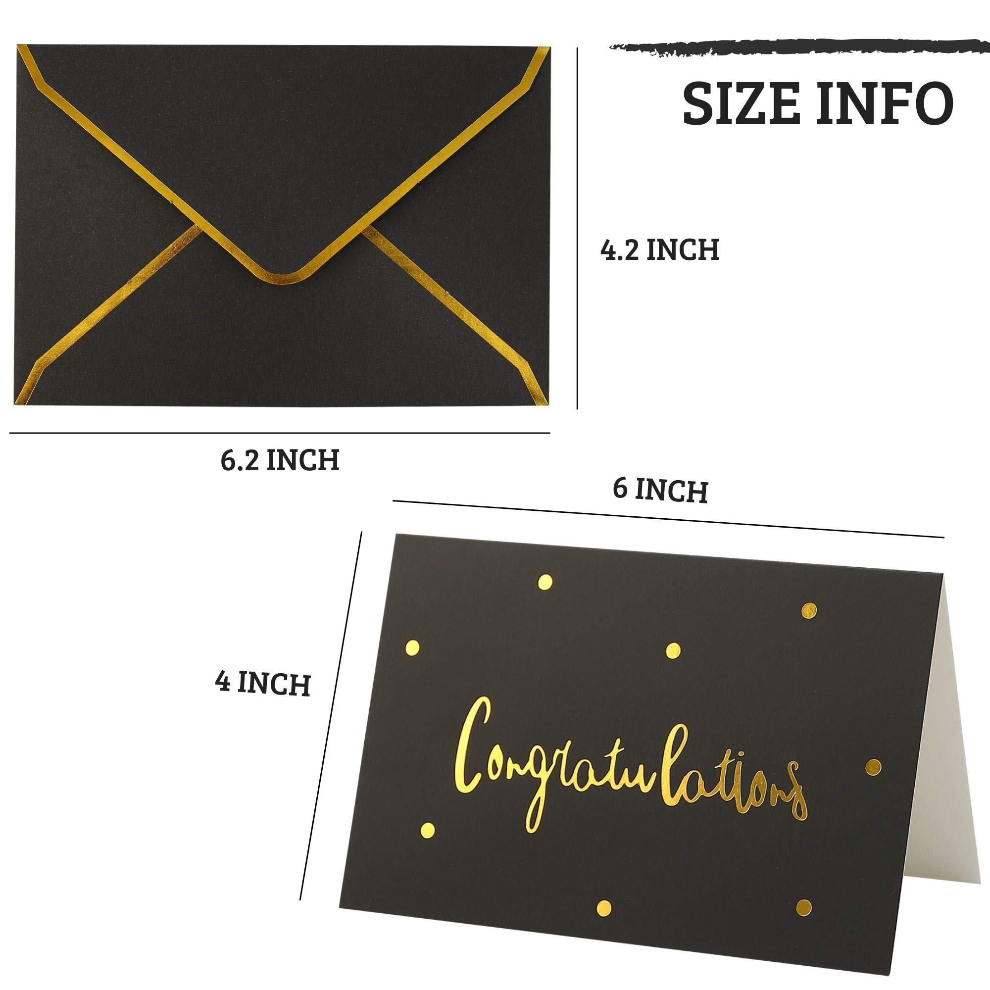 PartyDecorpro presents premium black and gold congratulations cards with envelopes, ideal for graduation cards, engagement, new home, and various celebrations. These elegant foil-stamped congratulations cards offer a classy design for heartfelt gratitude. As a factory specializing in B2B and OEM services, we support custom congratulations cards and OEM greeting cards to meet your specific requirements.