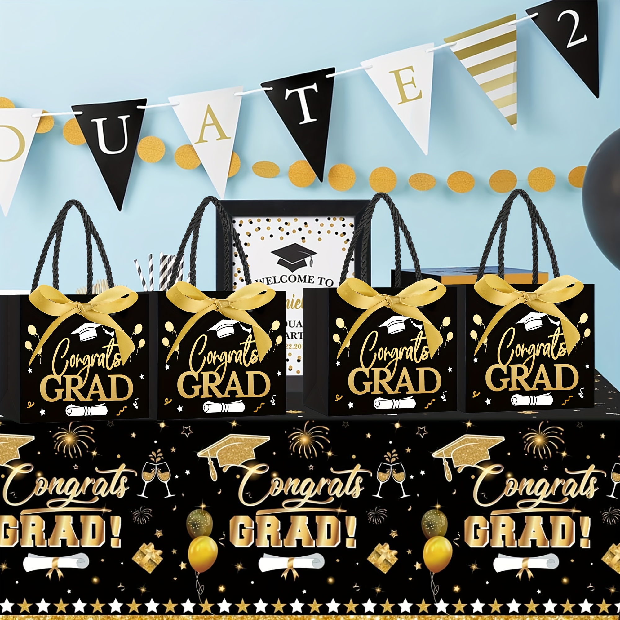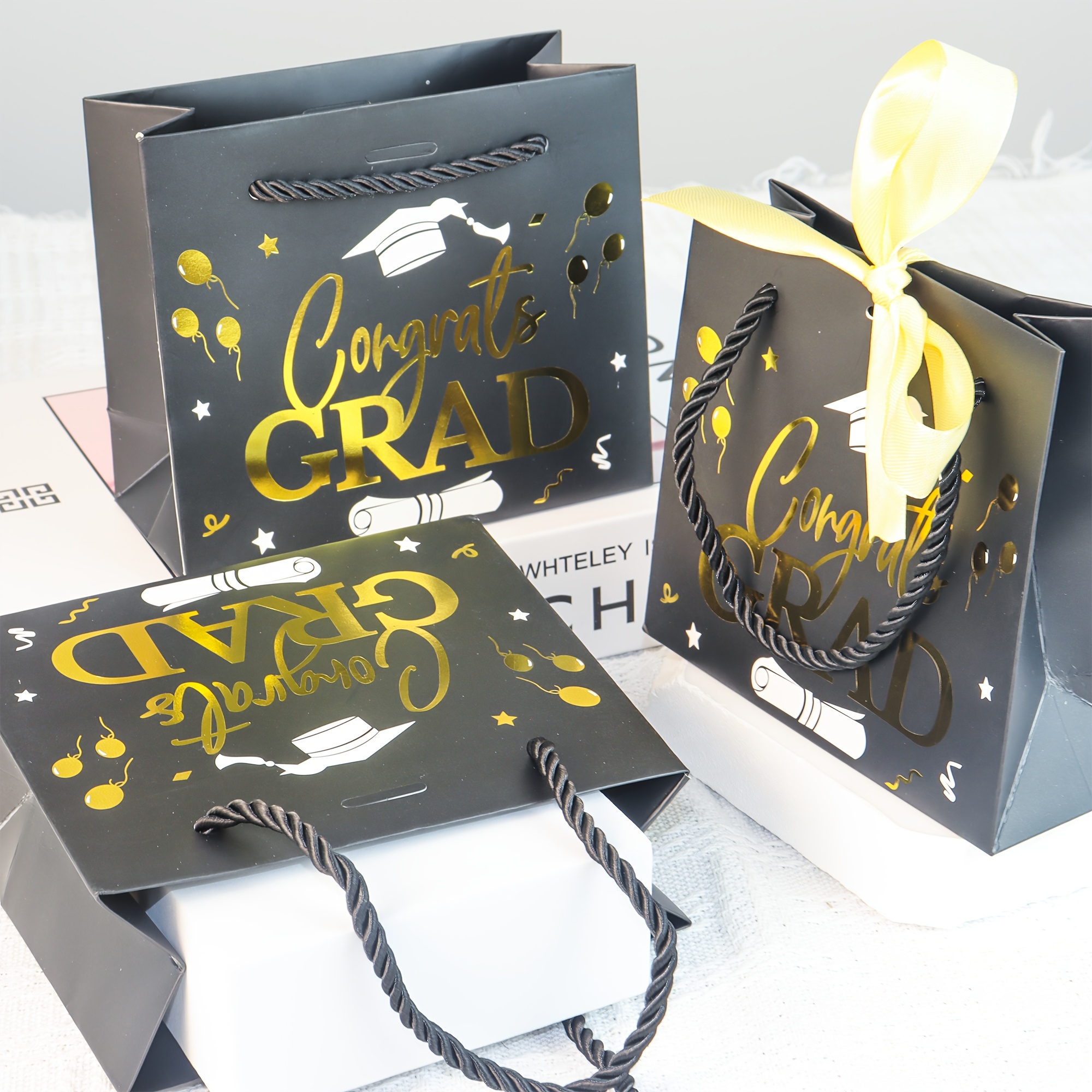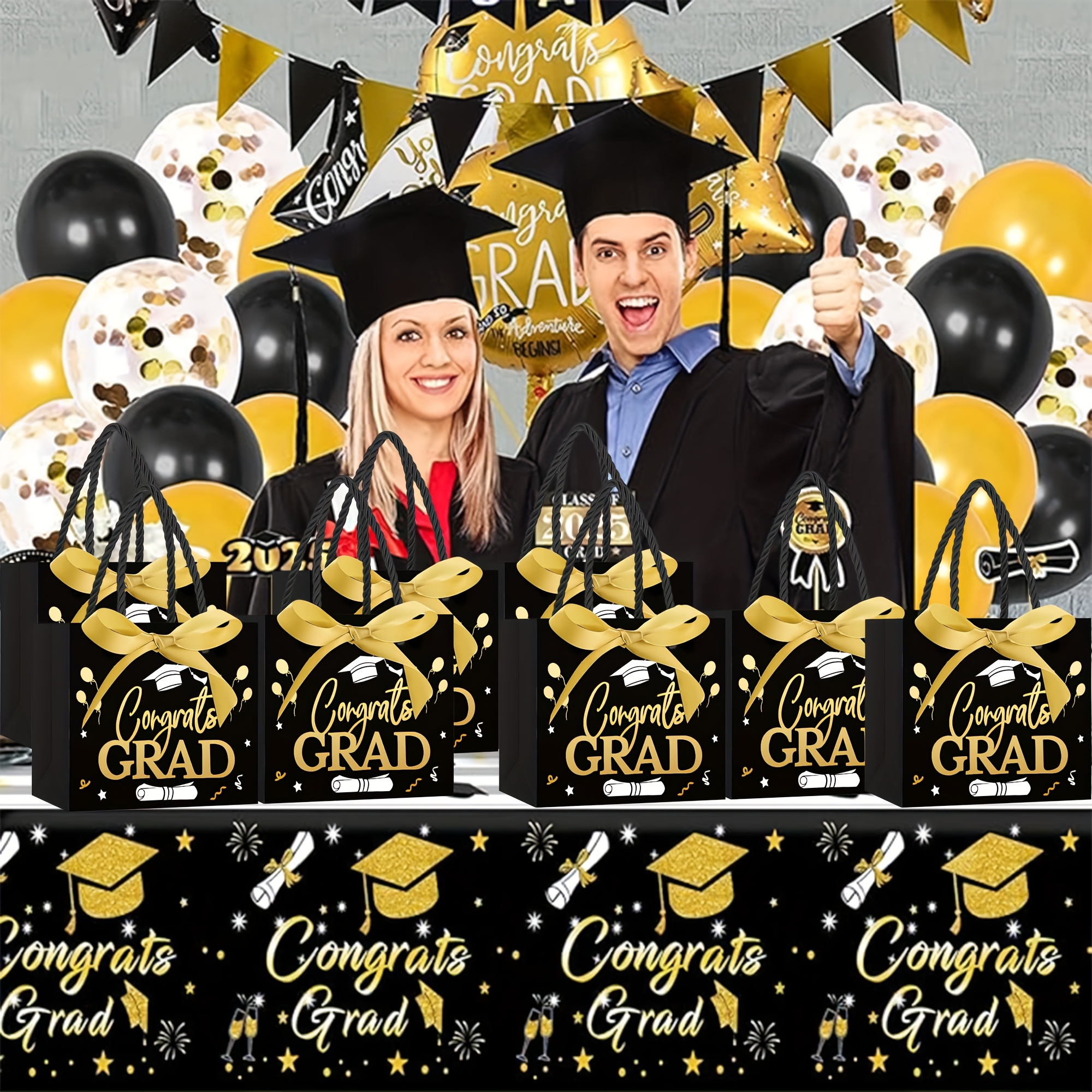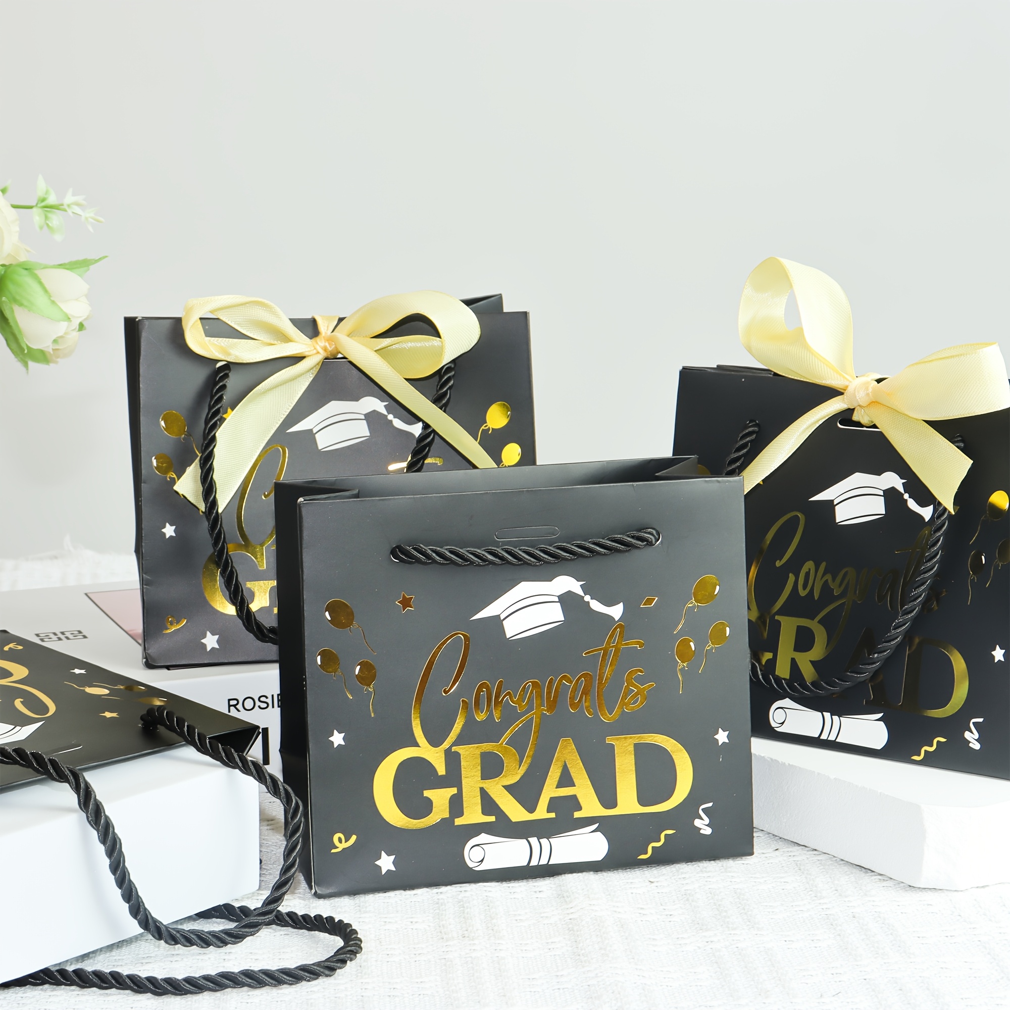 PartyDecorpro provides premium paper graduation gift bags featuring black-gold “Congrats GRAD” design, ribbon accents, and sturdy handles. Ideal as congrats grad gift bags for graduation ceremonies. (Customizable themes available for birthdays, weddings, holiday parties, and more) Supports B2B wholesale and OEM for custom graduation gift bags oem from a trusted graduation bags manufacturer. Durable, eco-friendly for gift packing.