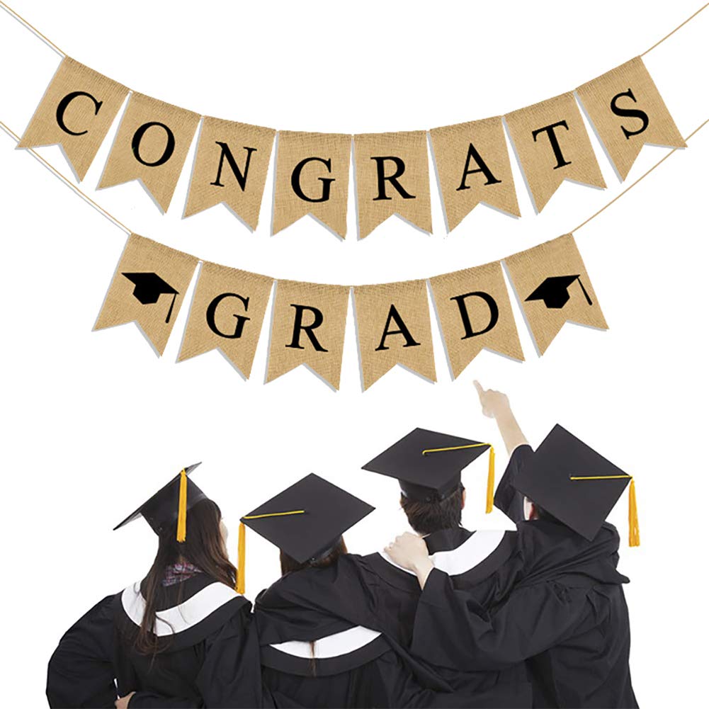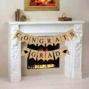 Congrats Grad Graduation Banner by PartyDecorpro – the ideal no-assembly graduation decoration banner for college, high school, or home parties. This durable, reusable pre-strung garland features “CONGRATS GRAD” in black with graduation hats, perfect for wholesale graduation banners and oem custom graduation banner personalization to suit your needs.