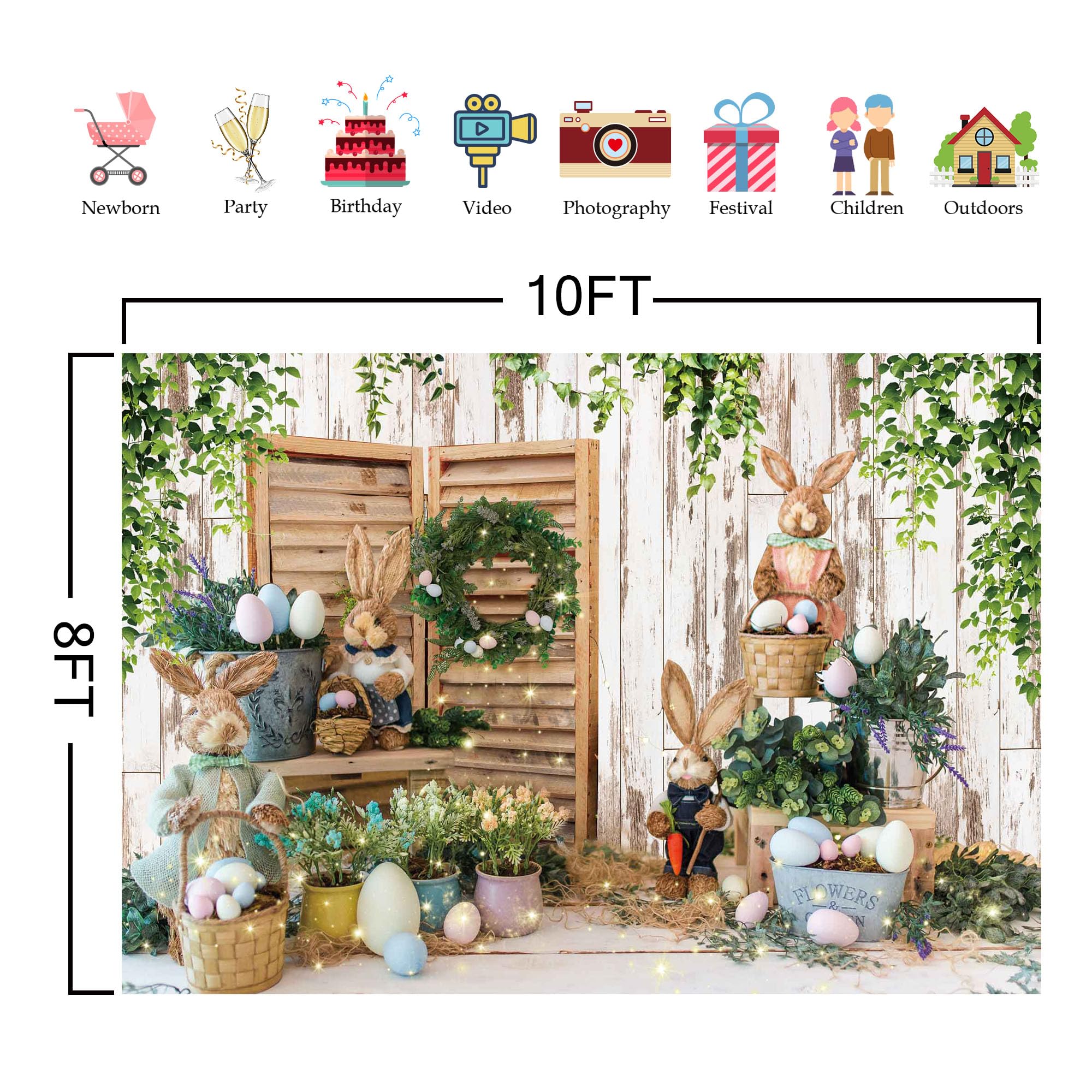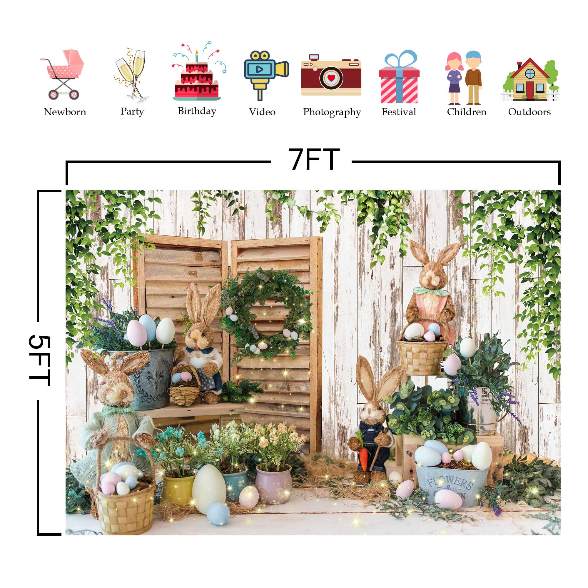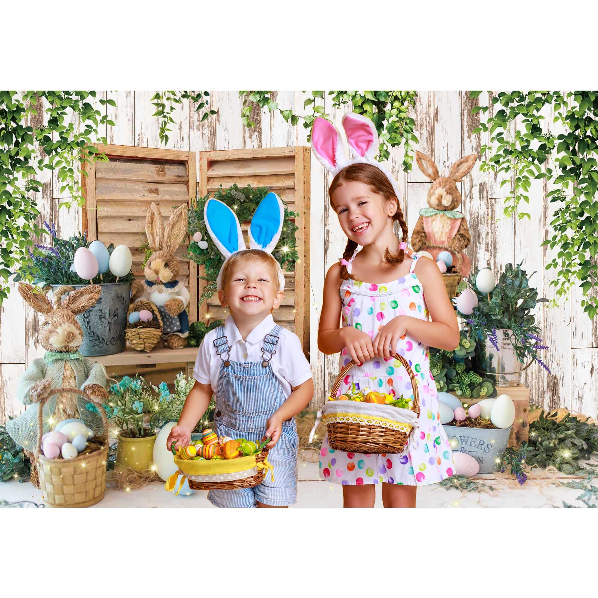 Easter Photography Backdrop: Rustic Wooden Rabbit Eggs Spring