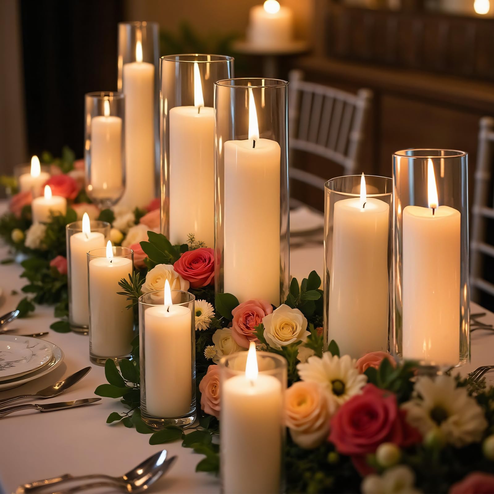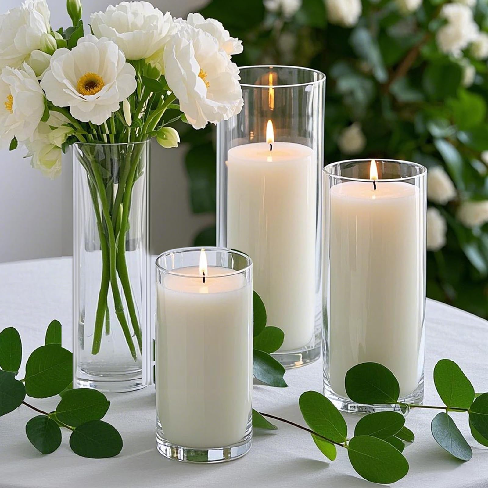 Clear Glass Hurricane Candle Holders with White Pillar Candles