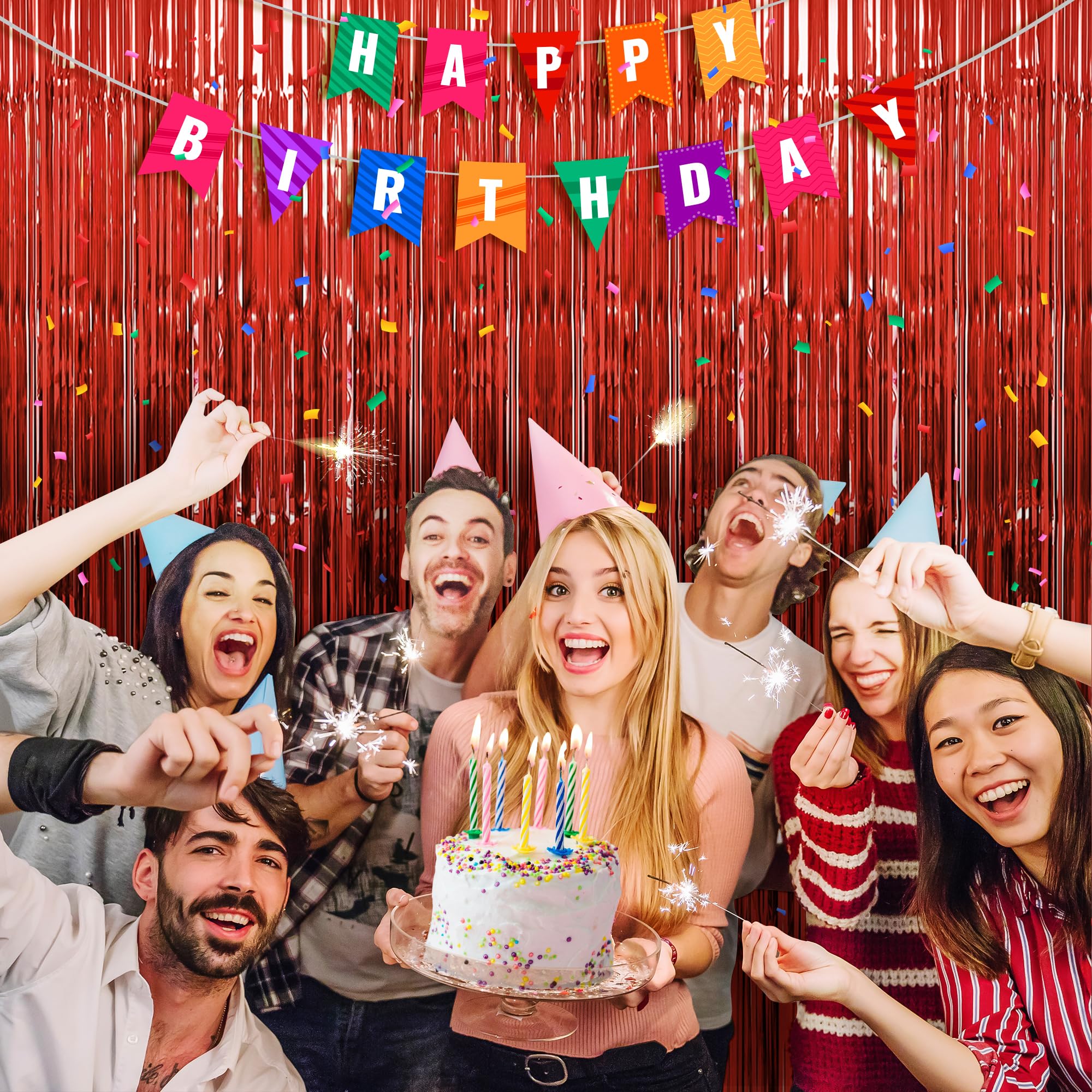 - Superior reflectivity from the metallic foil in the red fringe curtain interacts with available lighting to produce visual effects suitable for parties and events. The smooth foil strips are arranged to hang consistently, supporting uniform appearance across installations. This characteristic helps businesses differentiate their offerings in competitive markets and assists retail customers in creating appealing displays that attract consumer interest, while delivering the desired decorative outcome for those organizing gatherings.