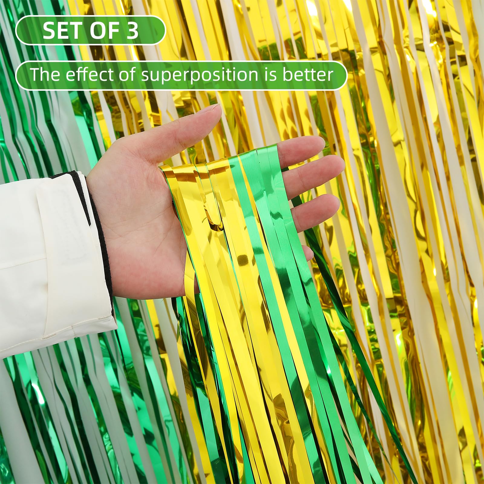 - Event rental companies deploy layered green foil fringe curtain panels for Irish-themed weddings or corporate parties, extending rental cycles through reusability.
