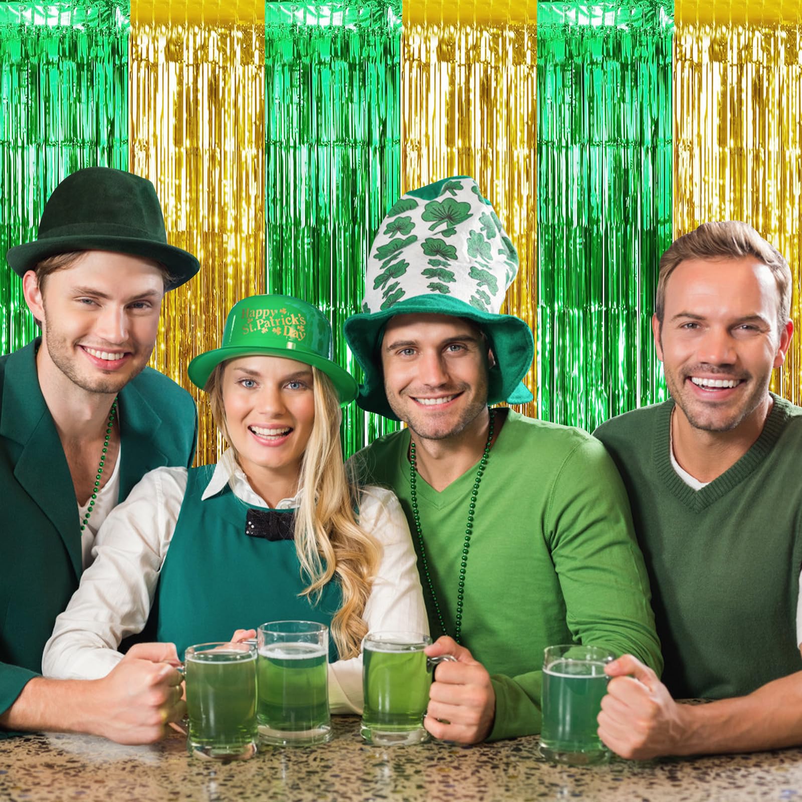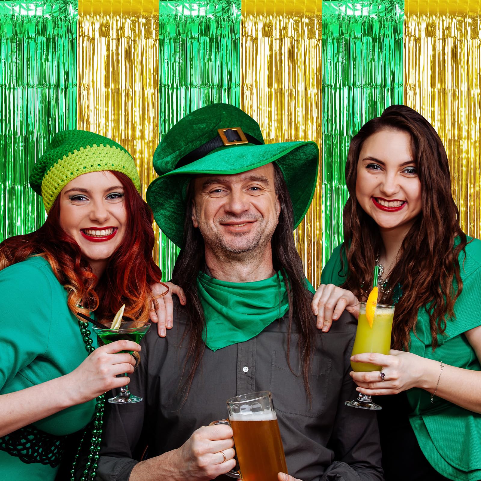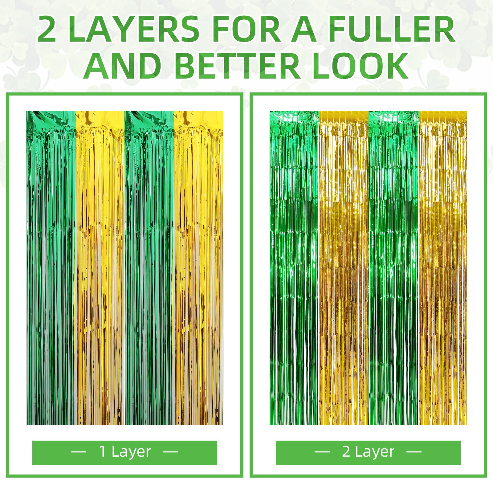St Patricks Day Foil Fringe Curtains consist of three units of metallic fringe curtains tailored for holiday event backdrops, walls, doors, and photo booths. These curtains serve wholesalers, e-commerce sellers, party supply retailers, and event organizers by providing coverage for large areas with a green and gold color scheme that aligns with Irish-themed celebrations. Their lightweight design and reusability support cost-effective inventory stocking, while quick setup enhances display appeal and drives seasonal sales volume.