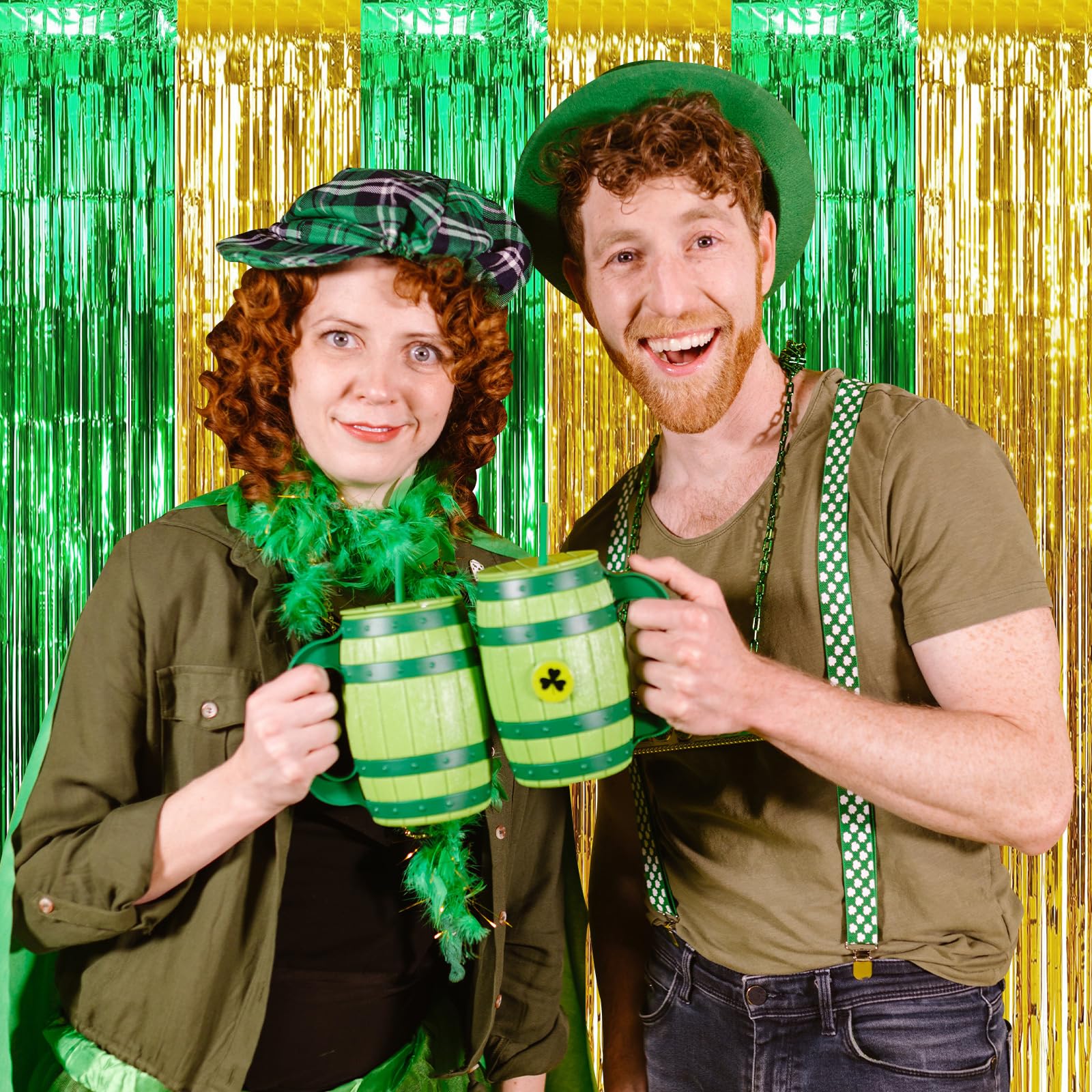 Our vibrant shamrock foil fringe curtains create stunning photo backdrops for St. Patrick’s Day. Shown in pure green, three-leaf clover, and green-gold combos—fully customizable in theme patterns, colors, sizes, and designs to match your event perfectly!