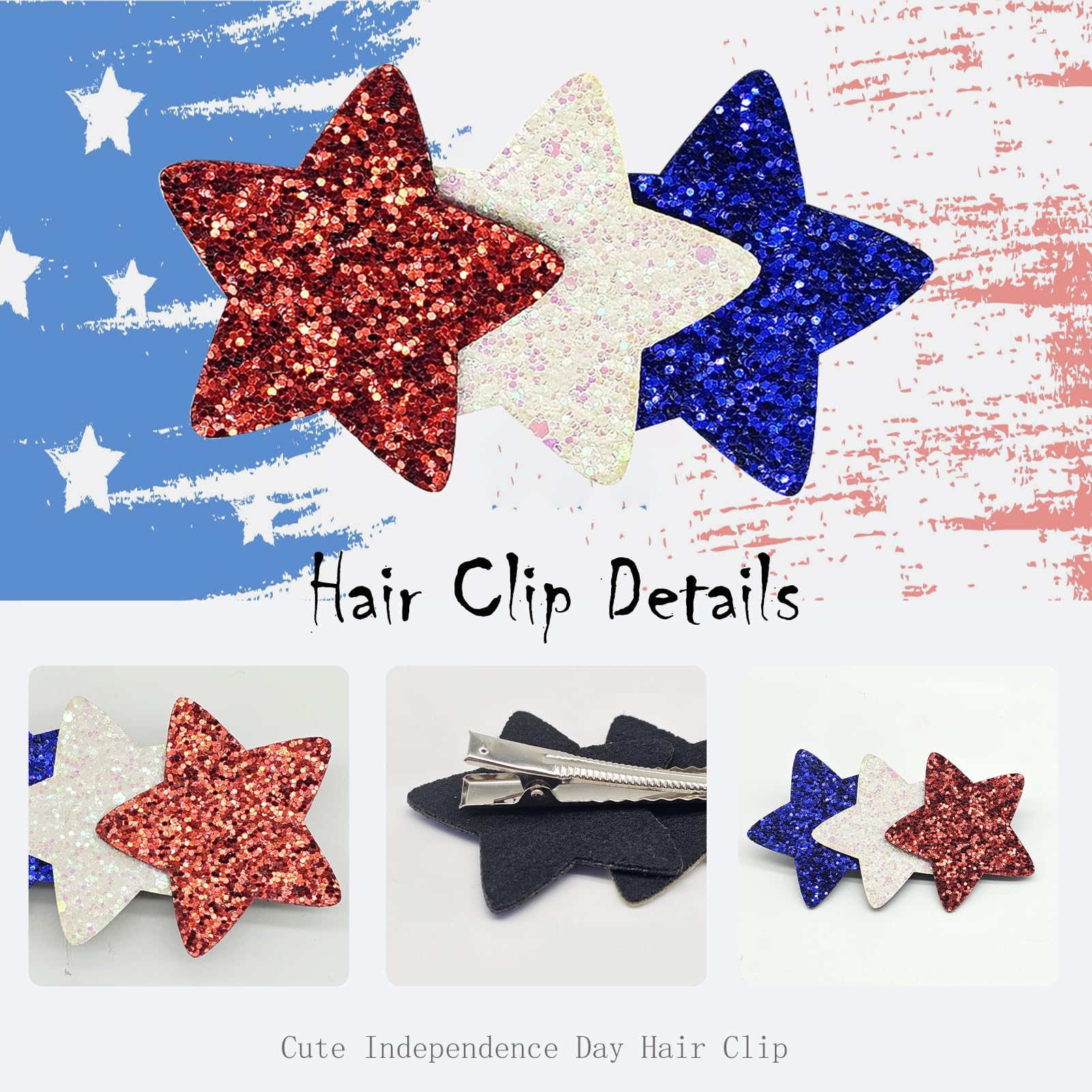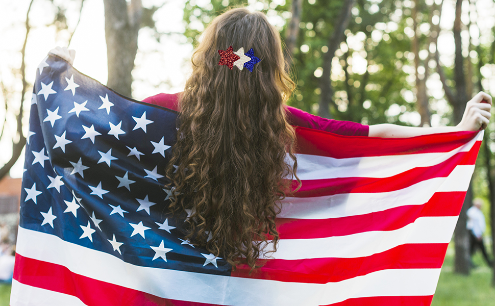PartyDecorpro is a professional star hair clip manufacturer and supplier, offering custom star hair clip solutions with OEM services worldwide. This 4th of July hair clip in shiny lightweight glitter fabric adds patriotic sparkle. Perfect party hair accessories wholesale for Independence Day events and B2B bulk orders.