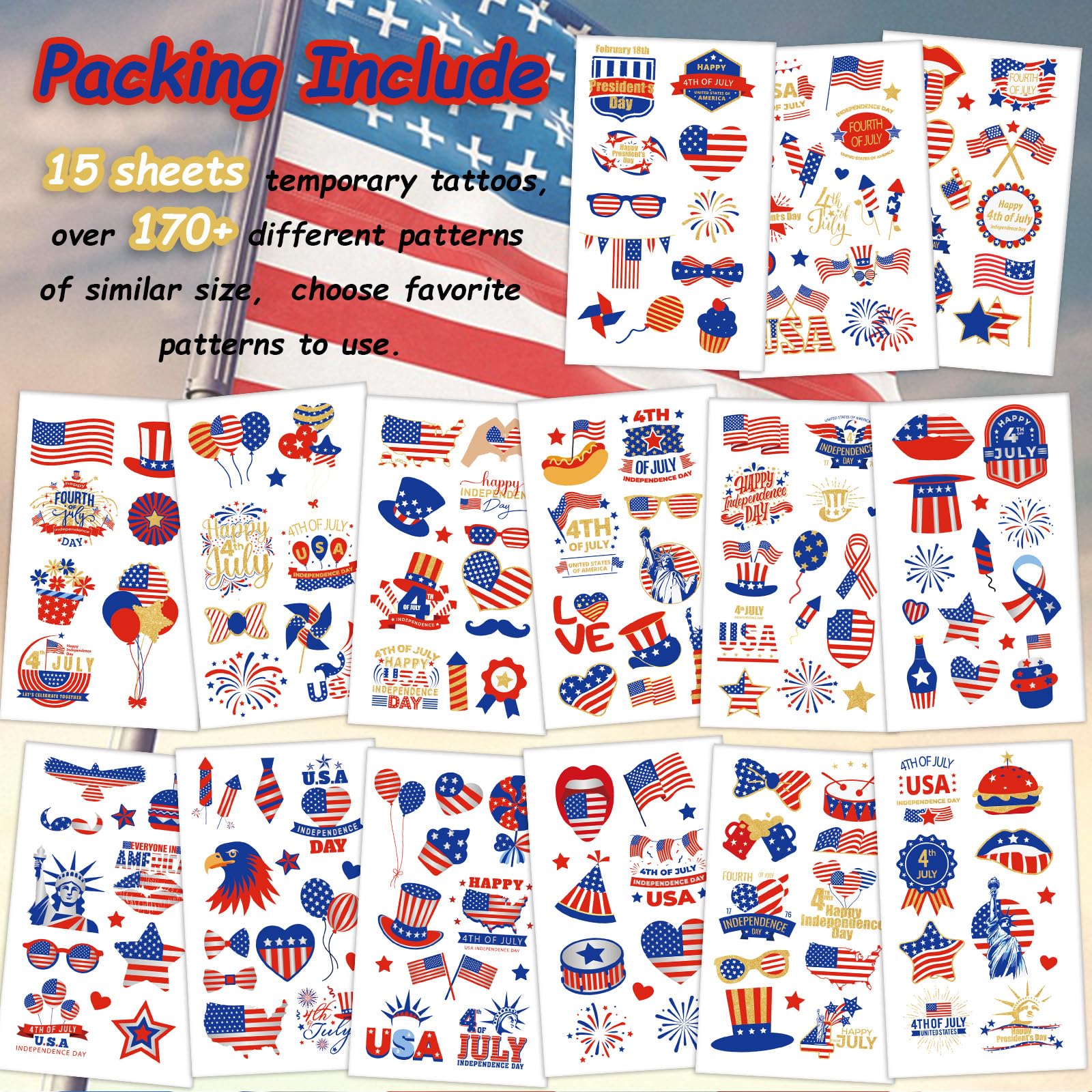 PartyDecorpro 4th of July Temporary Tattoos: Patriotic Stickers