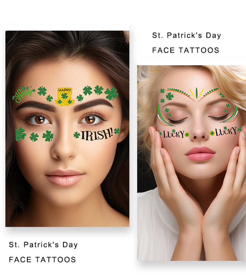 PartyDecorpro: As a professional temporary tattoos manufacturer, we offer high-quality OEM/ODM services worldwide. Our St. Patrick’s Day temporary tattoos create vibrant festive looks. Ideal for temporary tattoos wholesale and st. patrick’s day temporary tattoos supplier needs, with flexible MOQ for custom logo, pattern, style, color and packaging.
