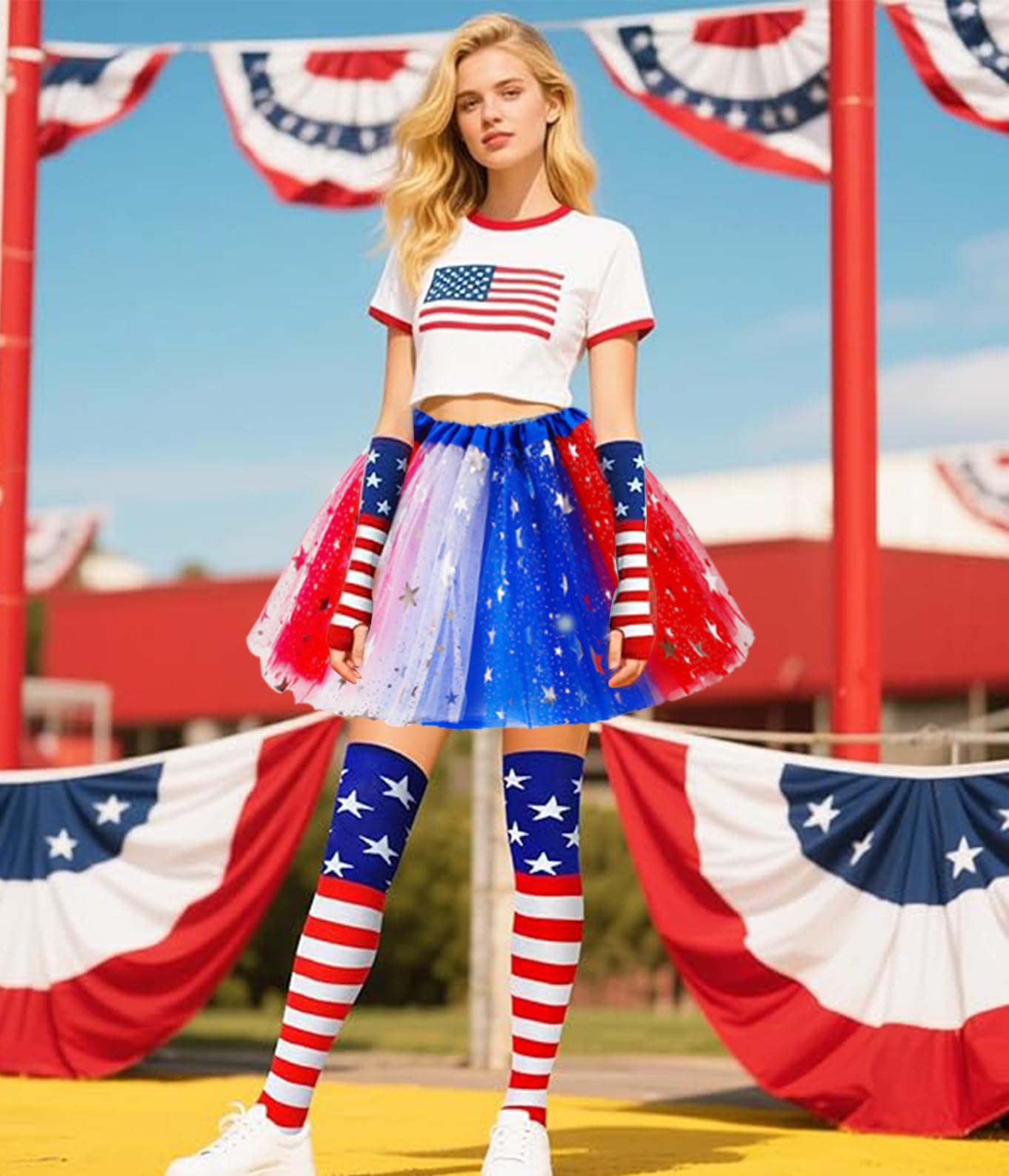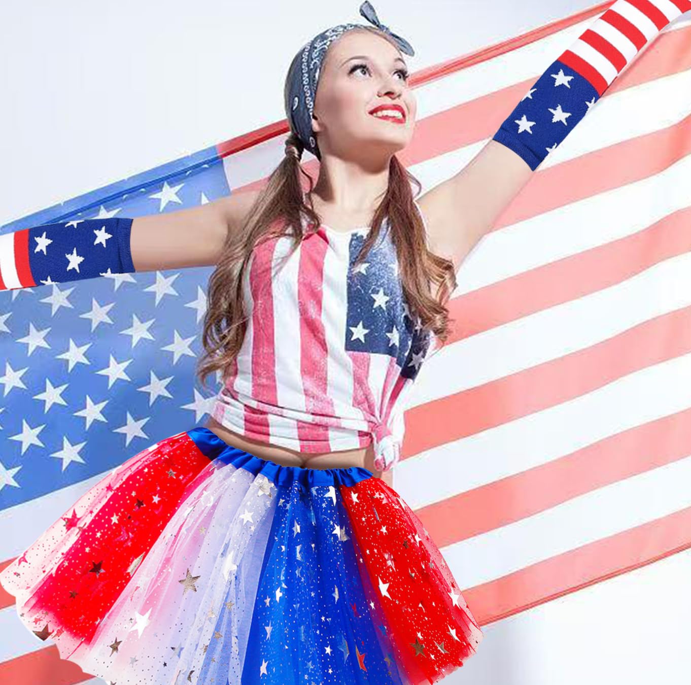 Leading tutu skirt manufacturer offers custom tutu skirt patriotic sets with sparkling tulle skirt, flag socks & gloves. Perfect 4th of july tutu and independence day costume accessories for wholesale & OEM orders.