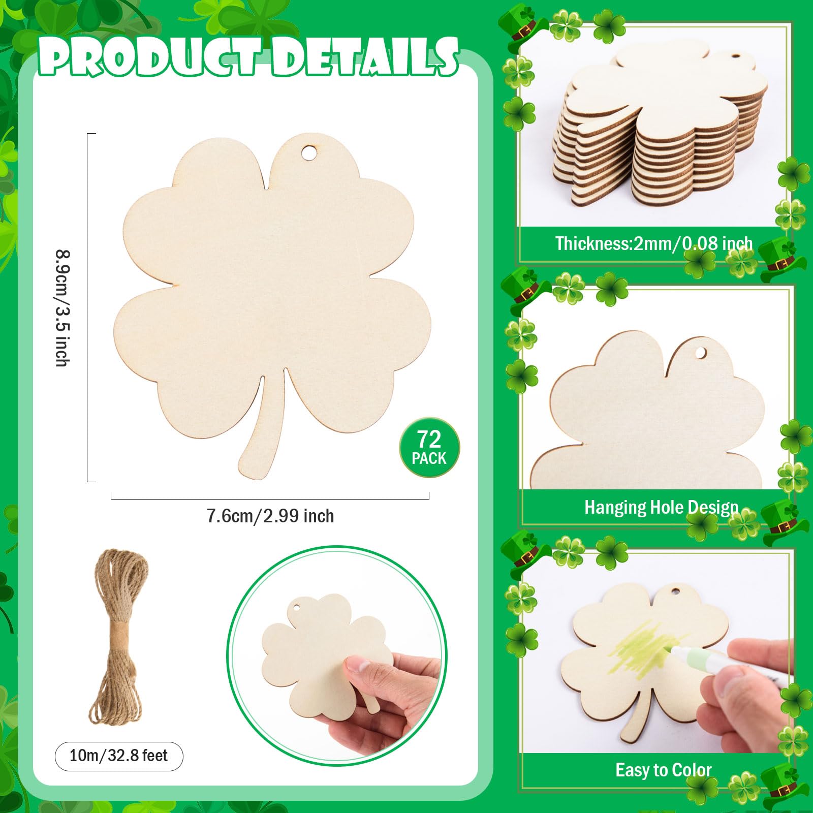 PartyDecorpro: As a leading wooden ornaments manufacturer, we offer premium OEM/ODM services worldwide. Our unfinished wooden shamrock cutouts provide excellent blank surfaces for DIY projects. Perfect for holiday crafts and custom needs, with wholesale options for flexible MOQ, custom logo, pattern, style, color, packaging, and size.