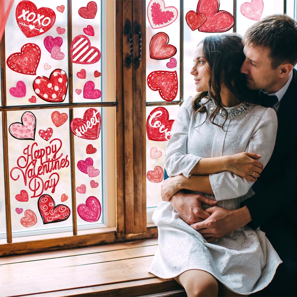 Valentine’s Day Window Clings with Love Hearts