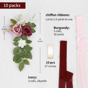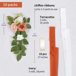 Wedding chair decor wholesale supplier offers artificial pew flowers with chiffon ribbons for wedding ceremony aisle decor. Factory direct, full OEM customization of style, size & logo. MOQ flexible.