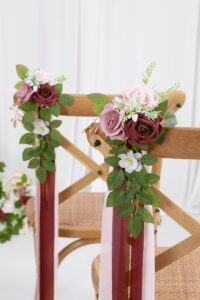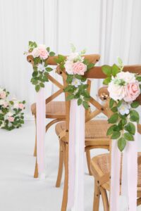 PartyDecorpro: As a professional wedding chair decor wholesale manufacturer, we offer OEM/ODM services worldwide. Our wedding chair flowers with flowing chiffon ribbons enhance wedding ceremony aisle decor. Ideal for artificial pew flowers supplier needs, with flexible MOQ and full customization of style, size, logo and packaging.