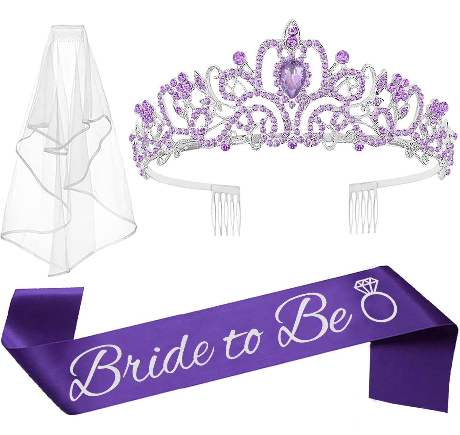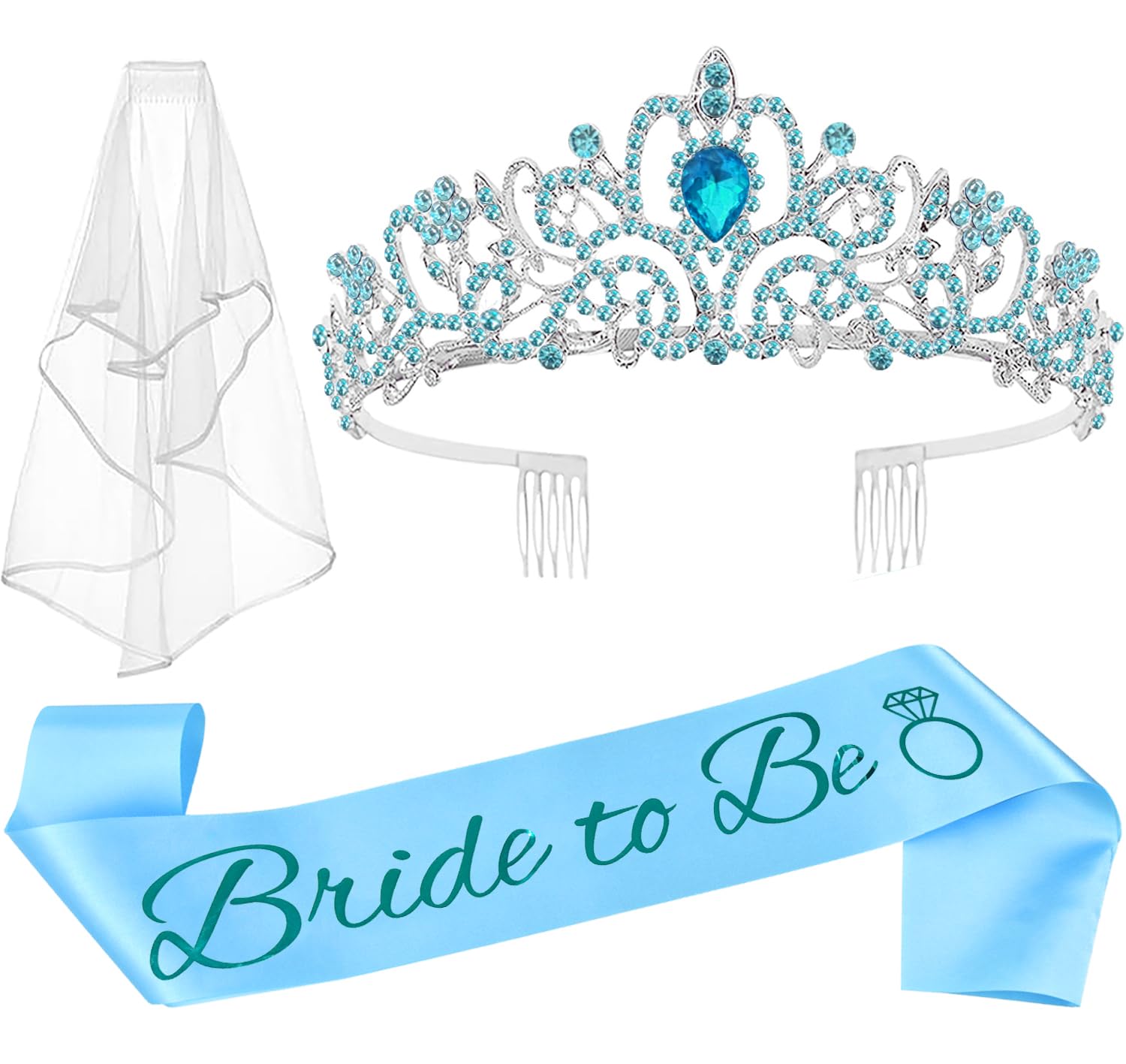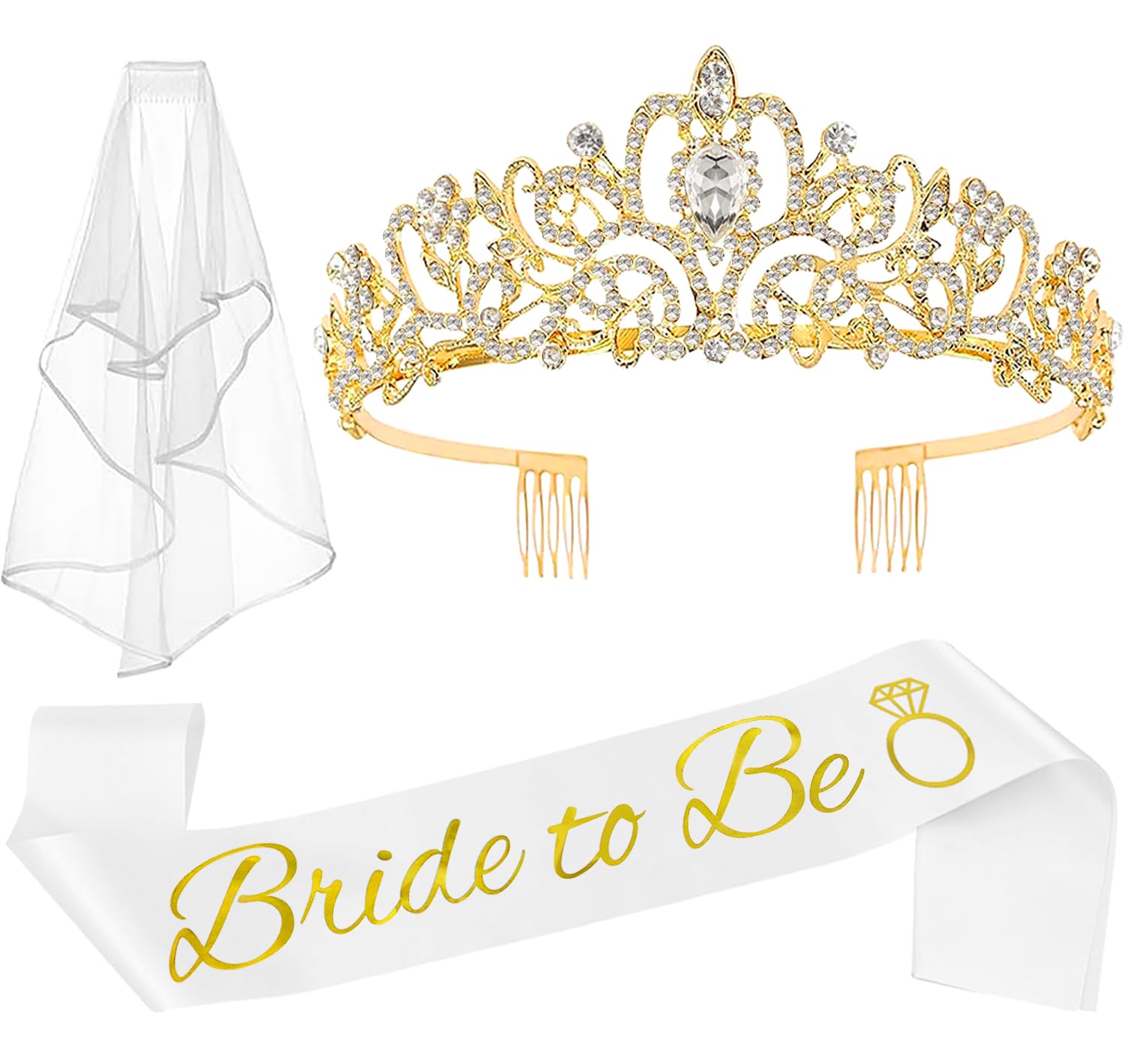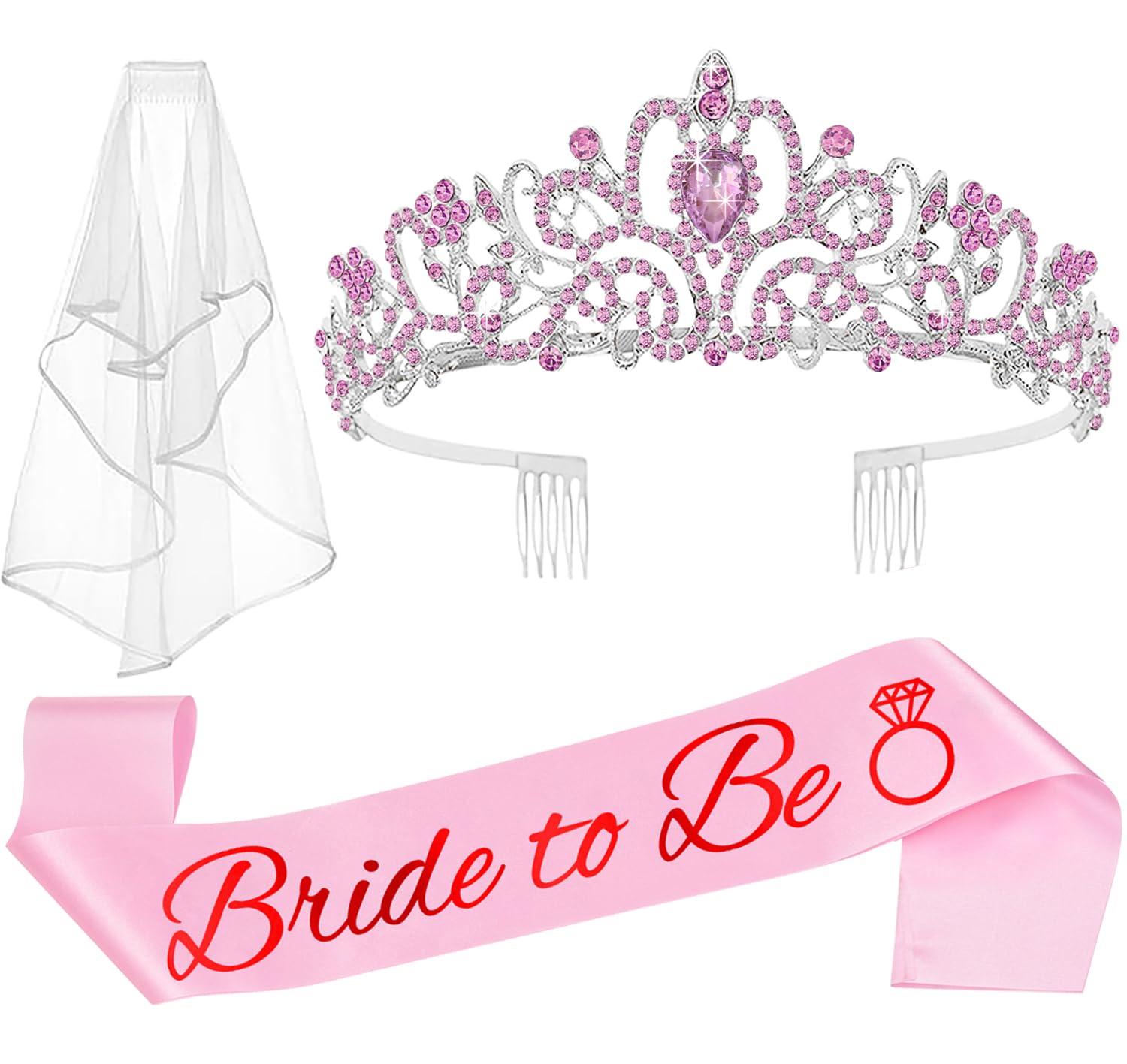 Bride to Be Tiara, Sash & Veil Set (3-Piece Kit)