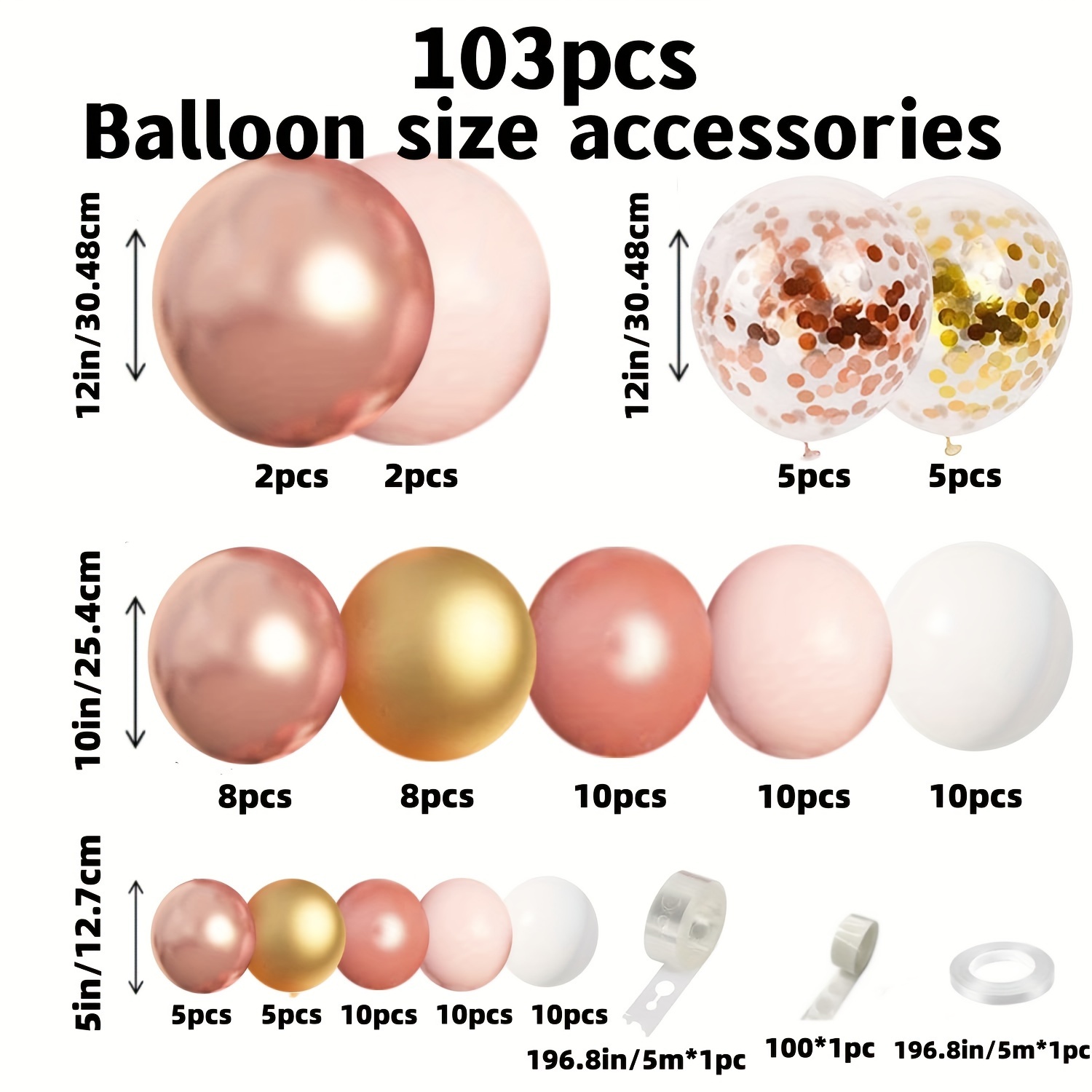 | Quantity | 103pcs total including confetti balloons, ribbon, glue dots, strip |