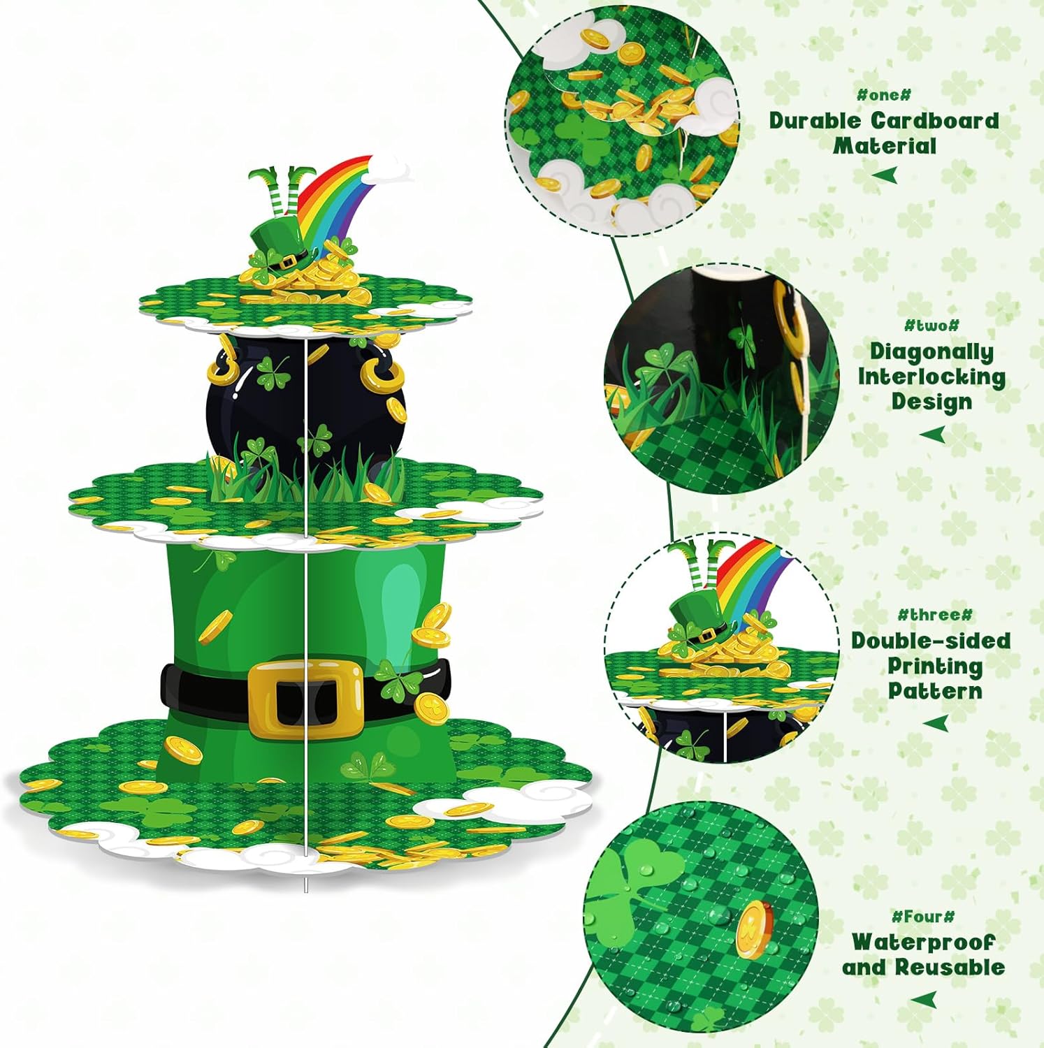 PartyDecorpro: As a professional cupcake stand manufacturer, we offer high-quality OEM/ODM services worldwide. Our st patrick’s day cupcake stand delivers festive Irish charm as a durable party dessert stand. Perfect for custom cupcake stand wholesale needs with flexible MOQ, logo, pattern, and size customization.