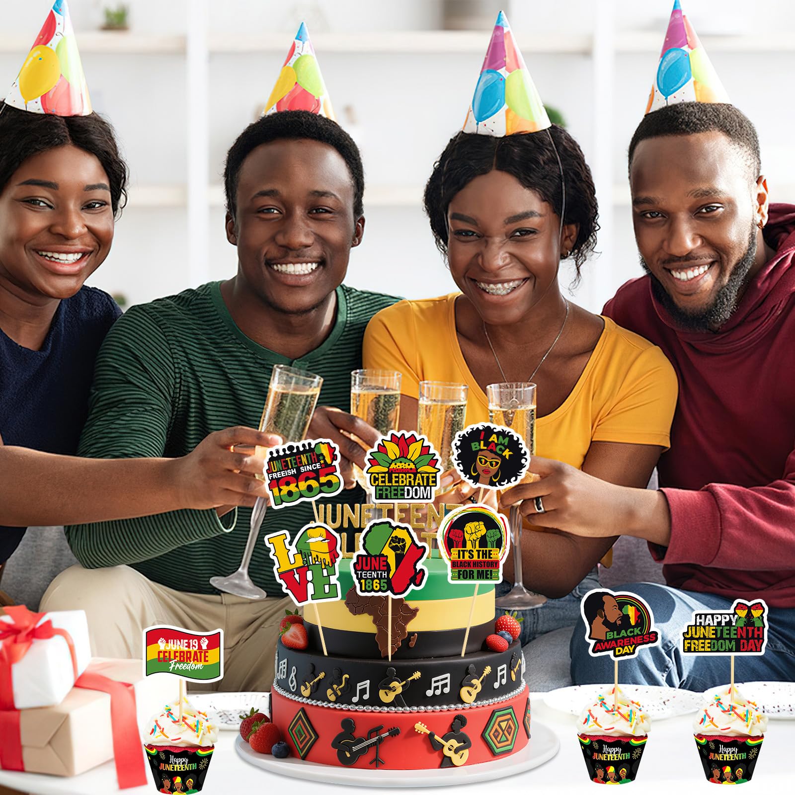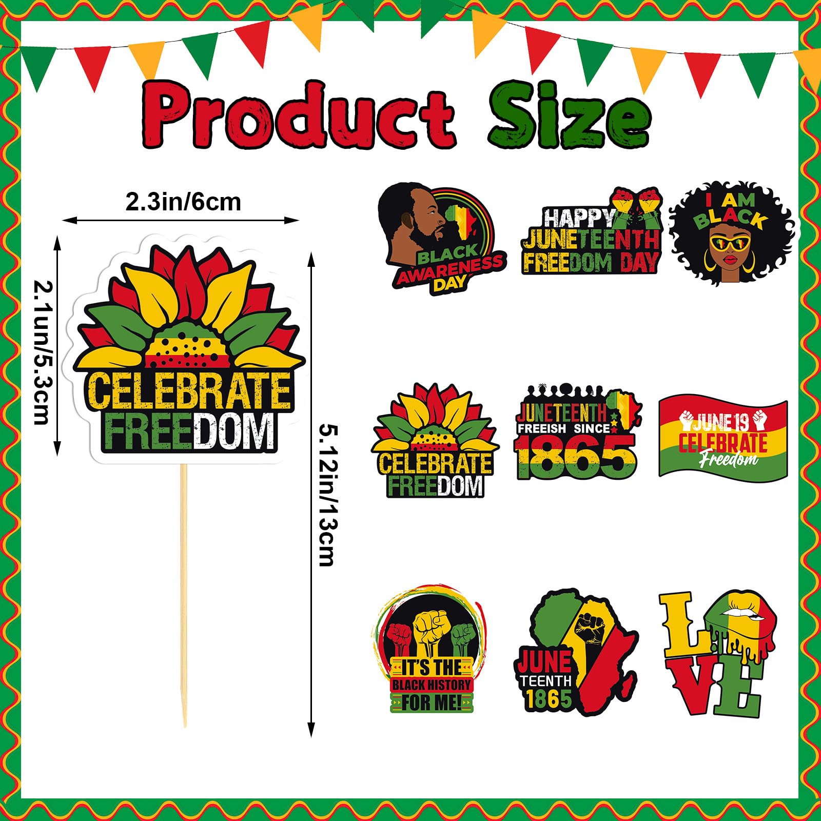 PartyDecorpro: As a professional manufacturer, we offer high-quality OEM/ODM services worldwide. Our Juneteenth cupcake toppers celebrate freedom with vibrant designs. Ideal for wholesale cupcake toppers and cake toppers supplier needs, with custom logo, pattern and style options.