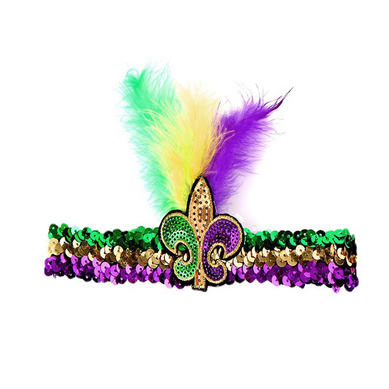 Mardi Gras Feather Headband, Sequin Headband for New Orleans Masquerade Mask Party