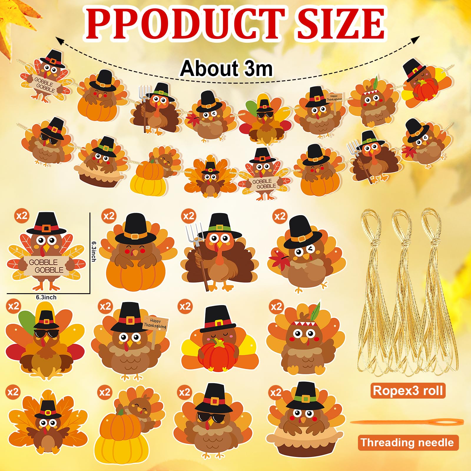 | Quantity | 3 packs, total 24 pcs (12 unique turkey designs, 2 pcs each) |