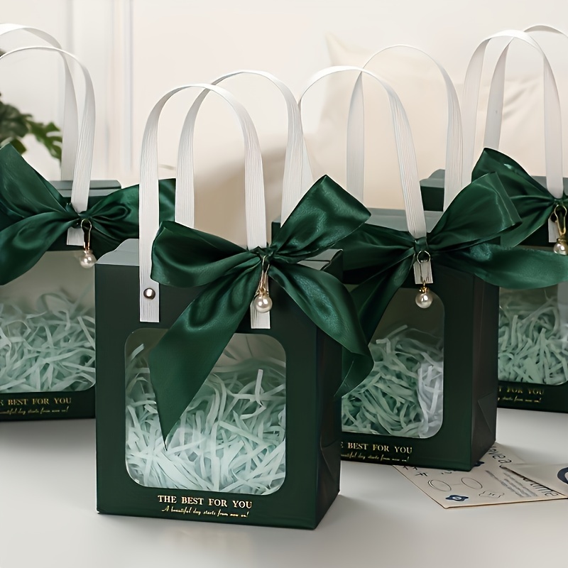 | Feature | Transparent window display, portable handle, pre-tied ribbon bow with pearl pendant |