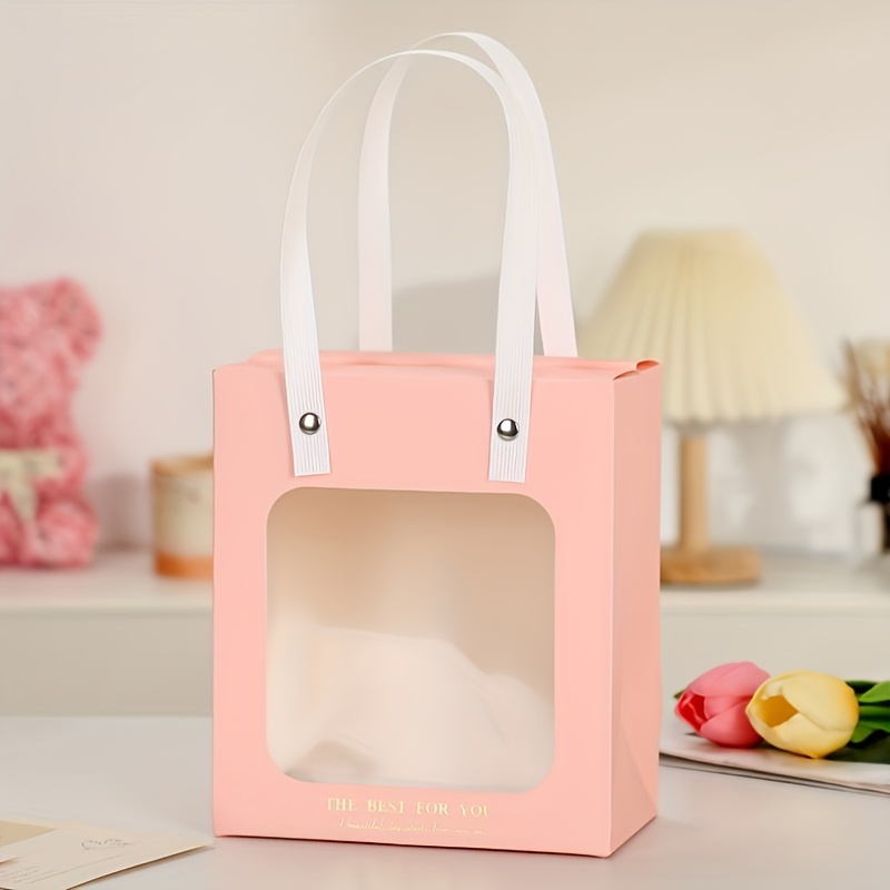 Handheld Transparent Window Gift Bag with Ribbon Bow