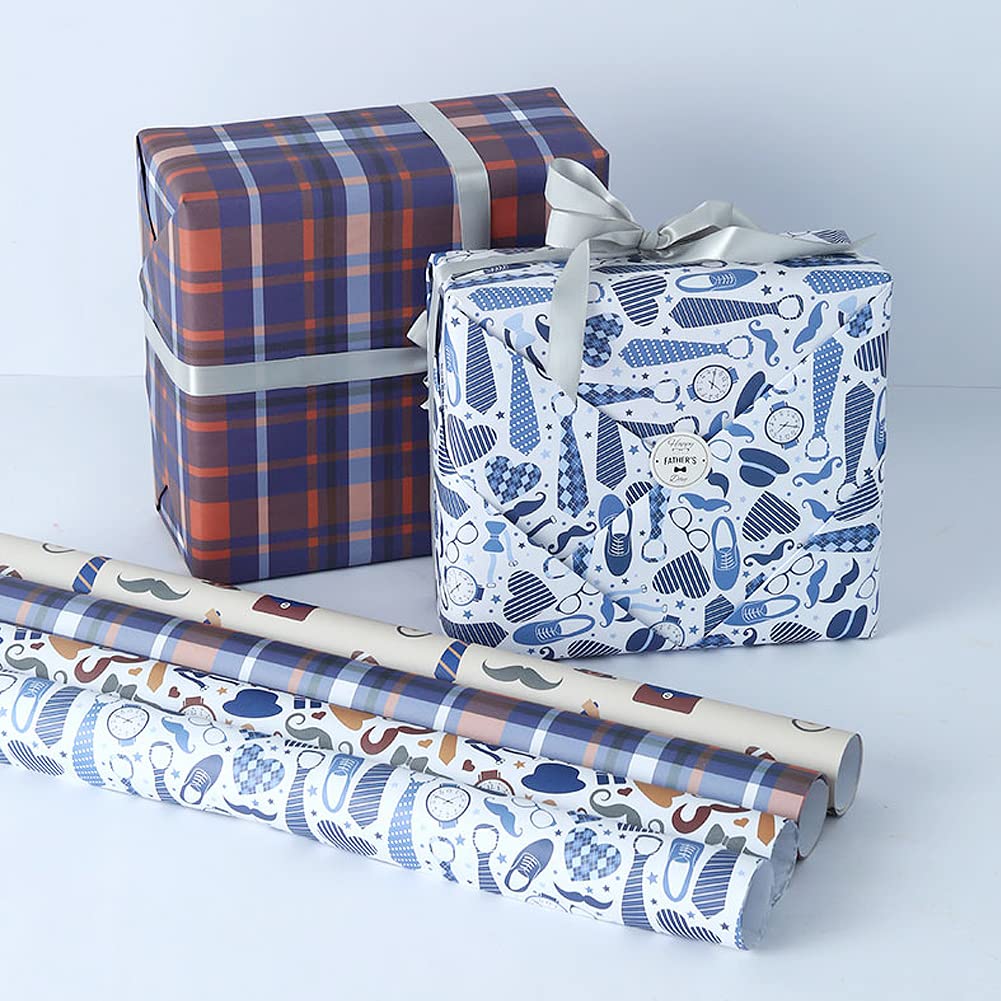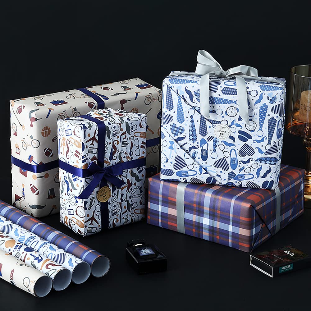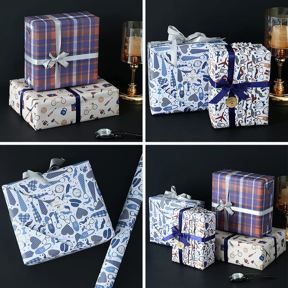 PartyDecorpro Father’s Day Wrapping Paper: Men’s Retro Theme Gift Wrap Set