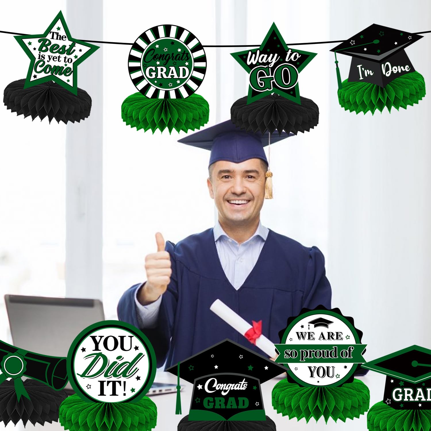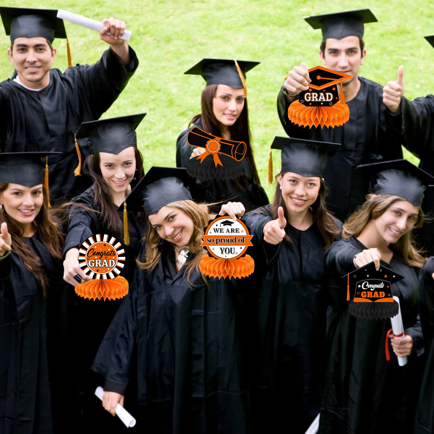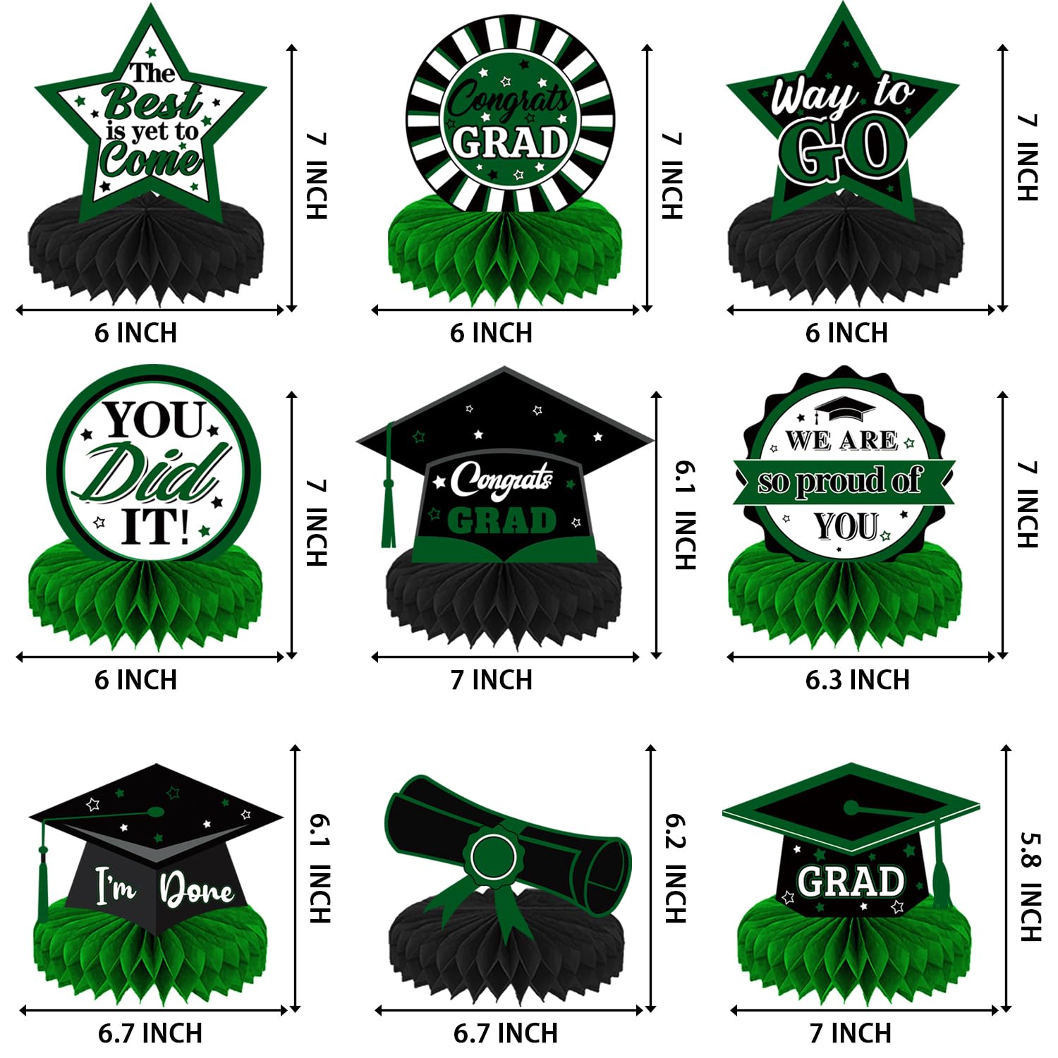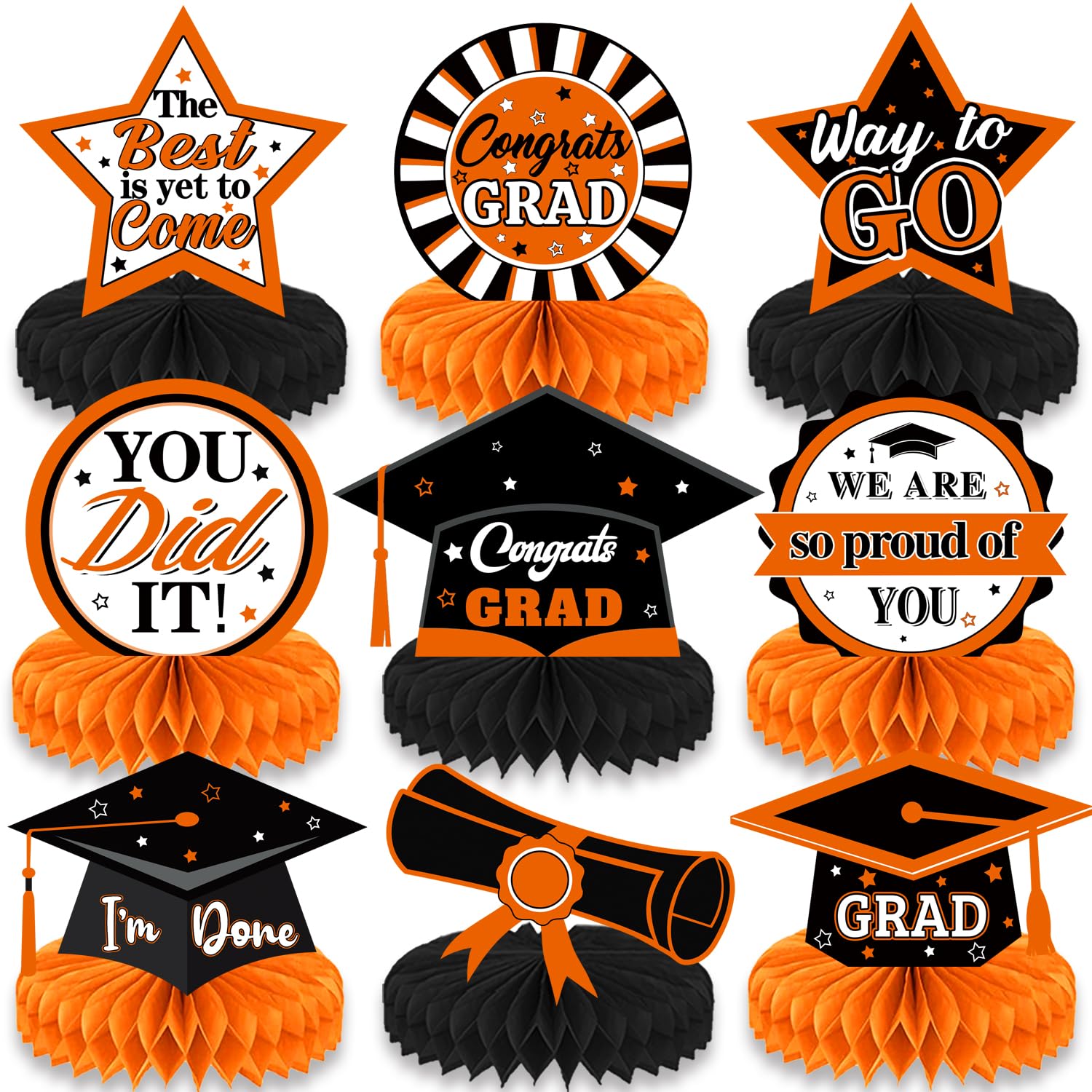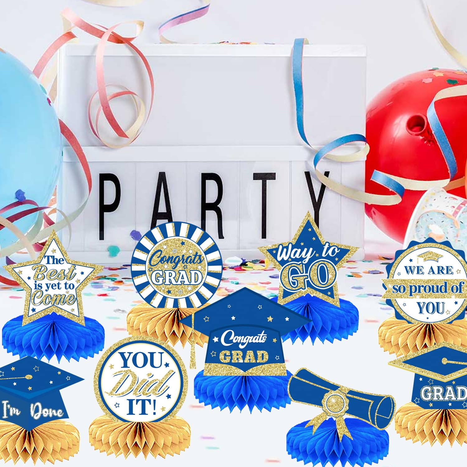 PartyDecorpro is a professional party decoration supplier of high-quality creative supplies. This Graduation Honeycomb Centerpieces set features “Congrats Graduate” patterns, adding vibrant color to graduation ceremonies. We support B2B bulk purchasing and Wholesale Graduation Centerpieces; as Graduation Decor OEM Manufacturer, we offer full customization to grow your business.