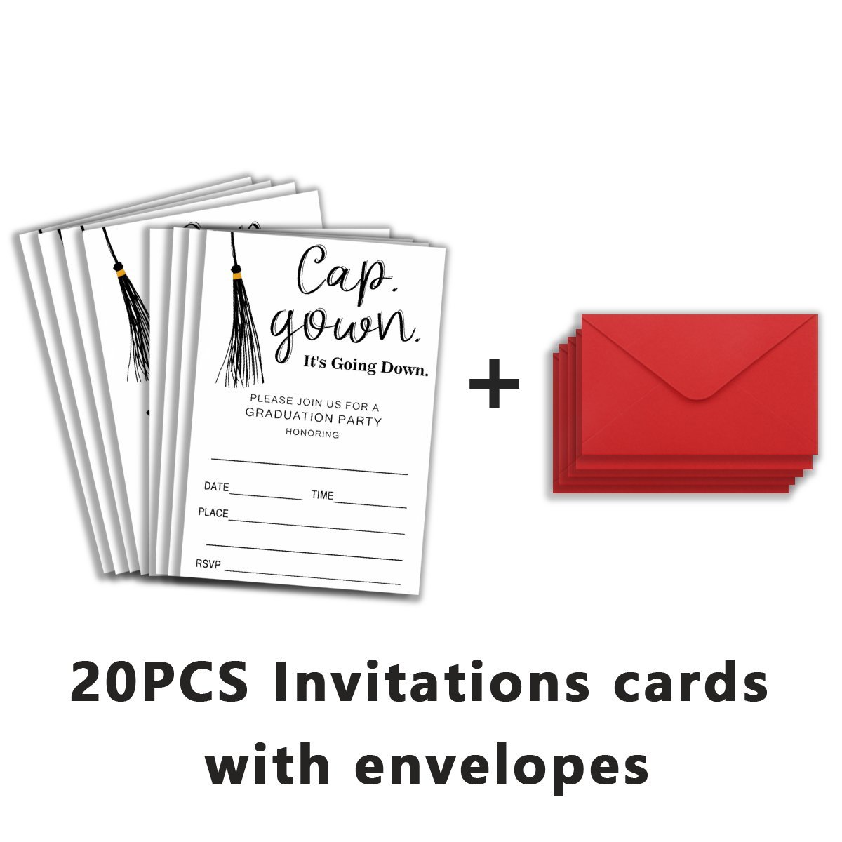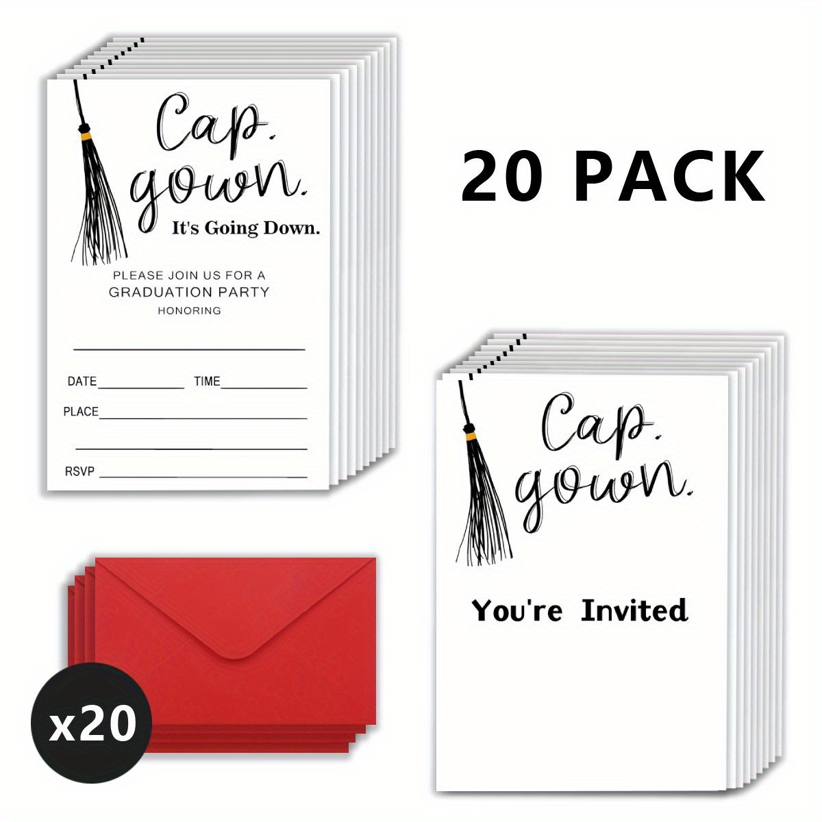 Wholesale Graduation Party Invitations – 20-Pack Elegant Cap & Gown Fill-In Cards with Envelopes