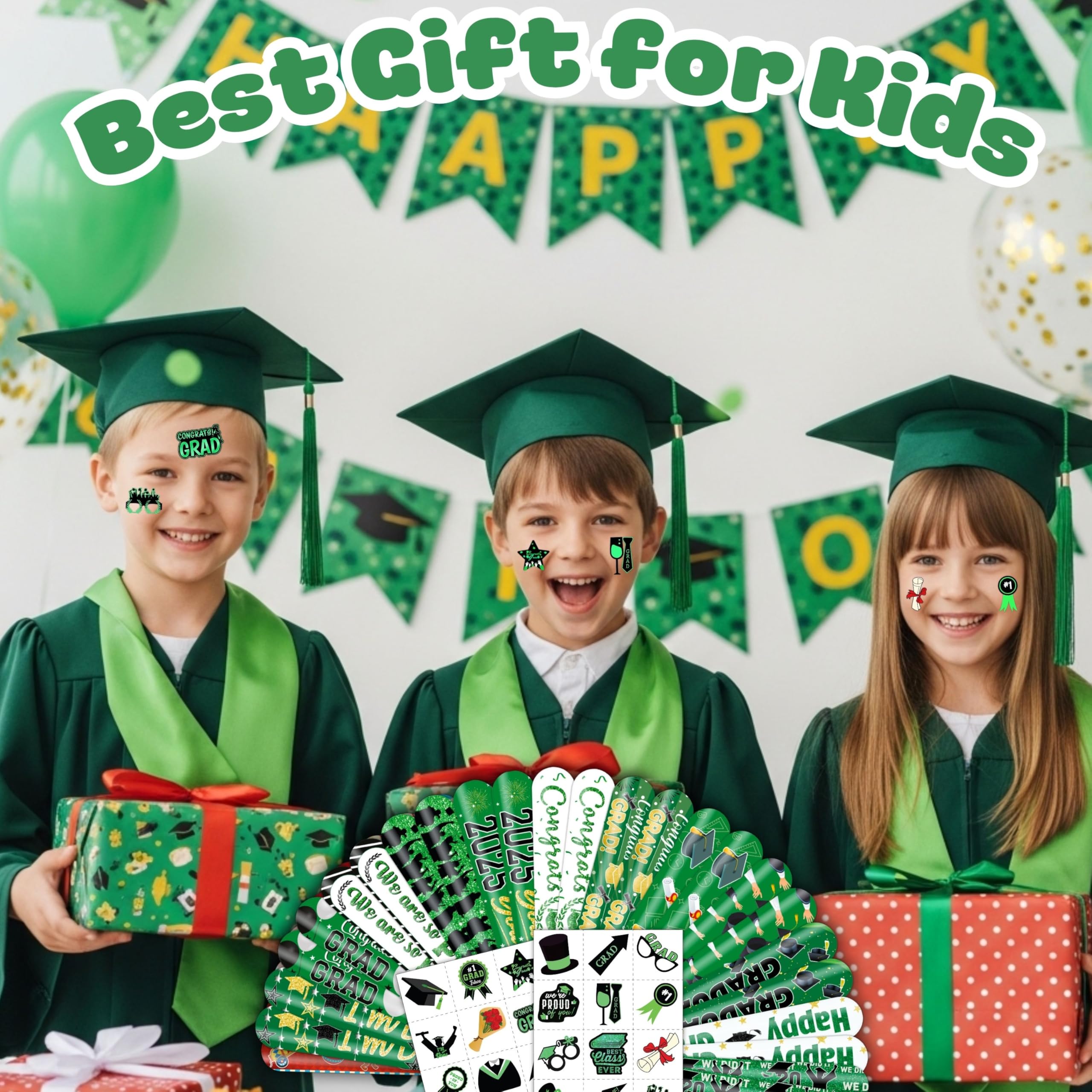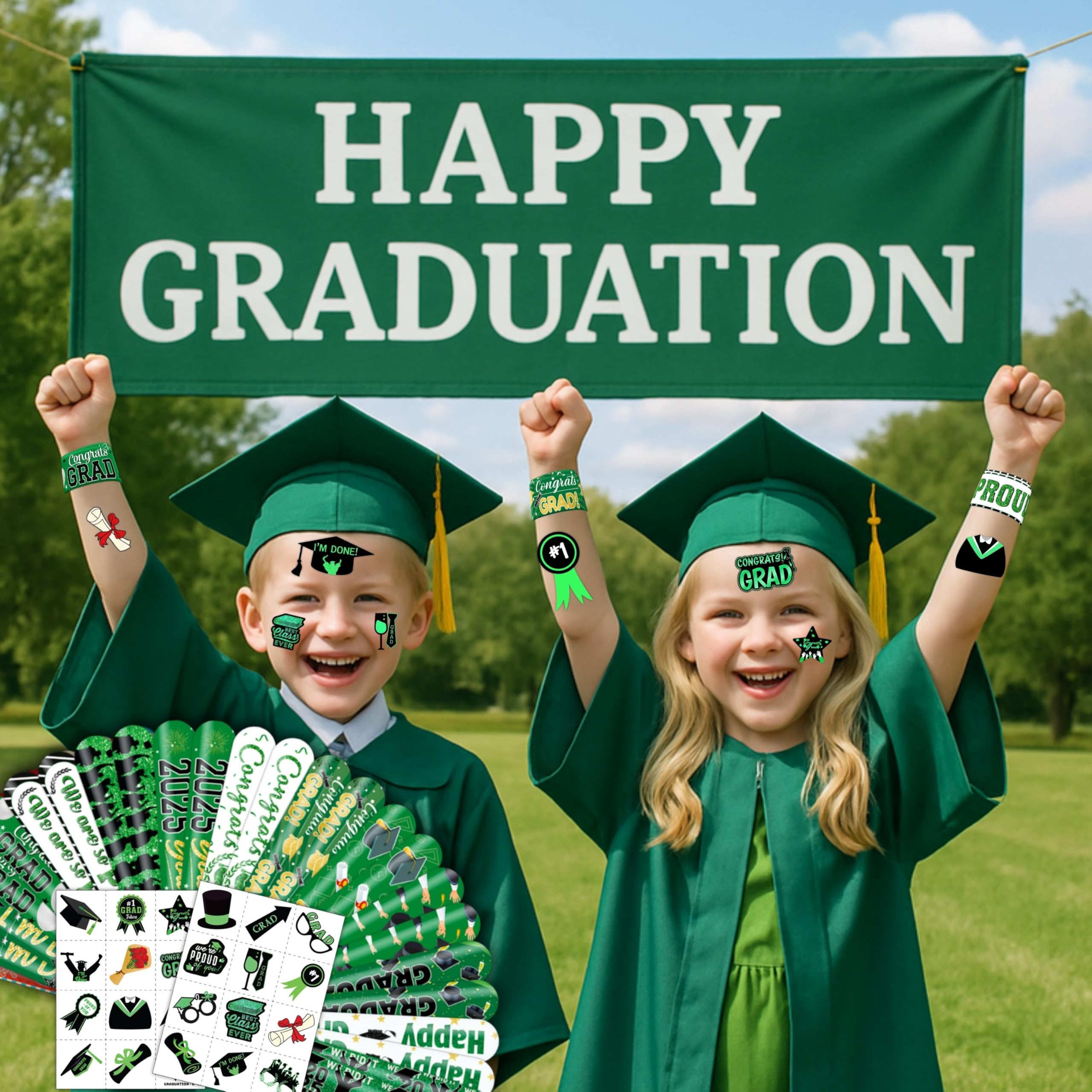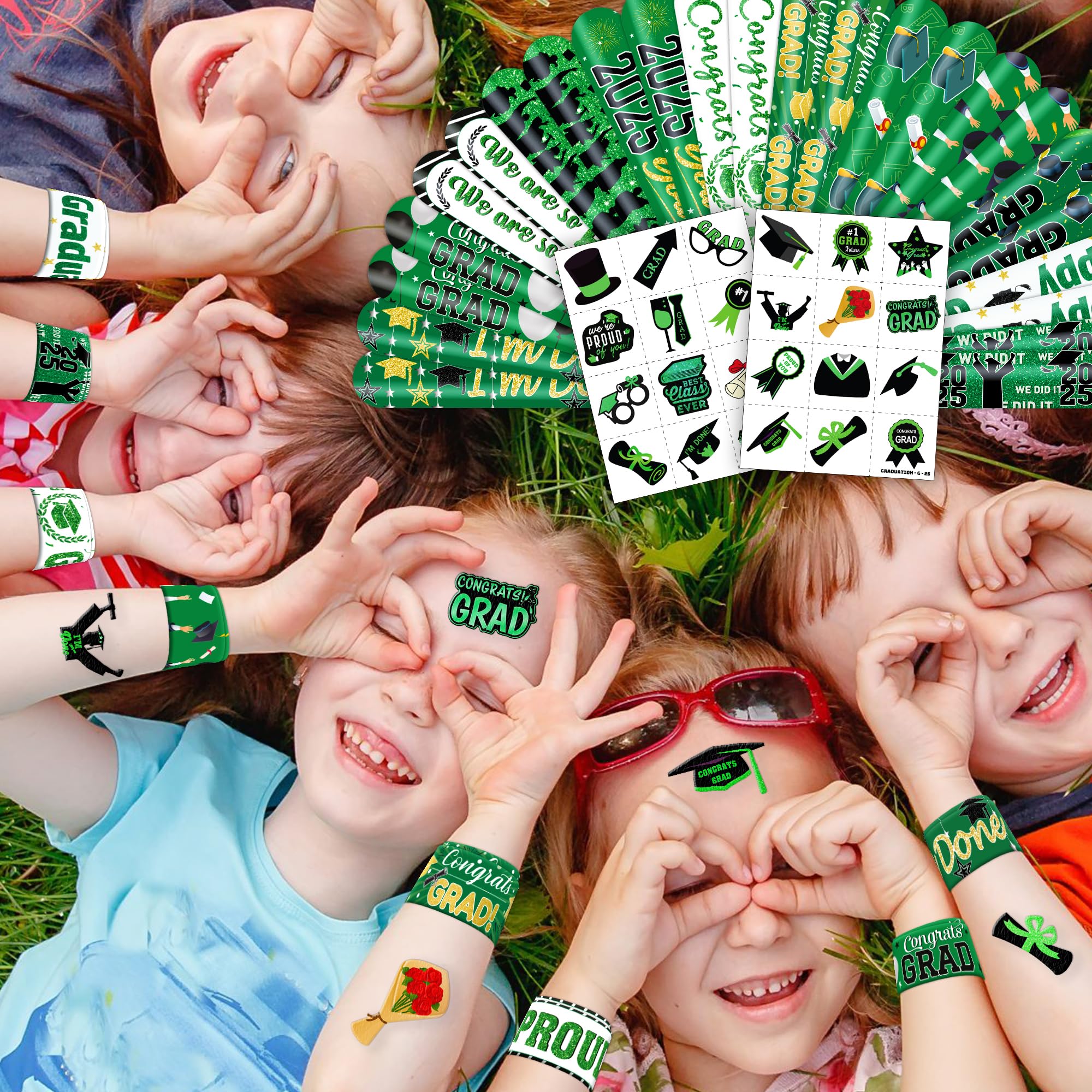 PartyDecorpro Graduation Slap Bracelets & Temporary Tattoos Set
