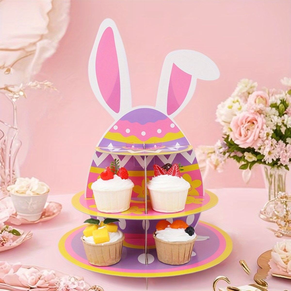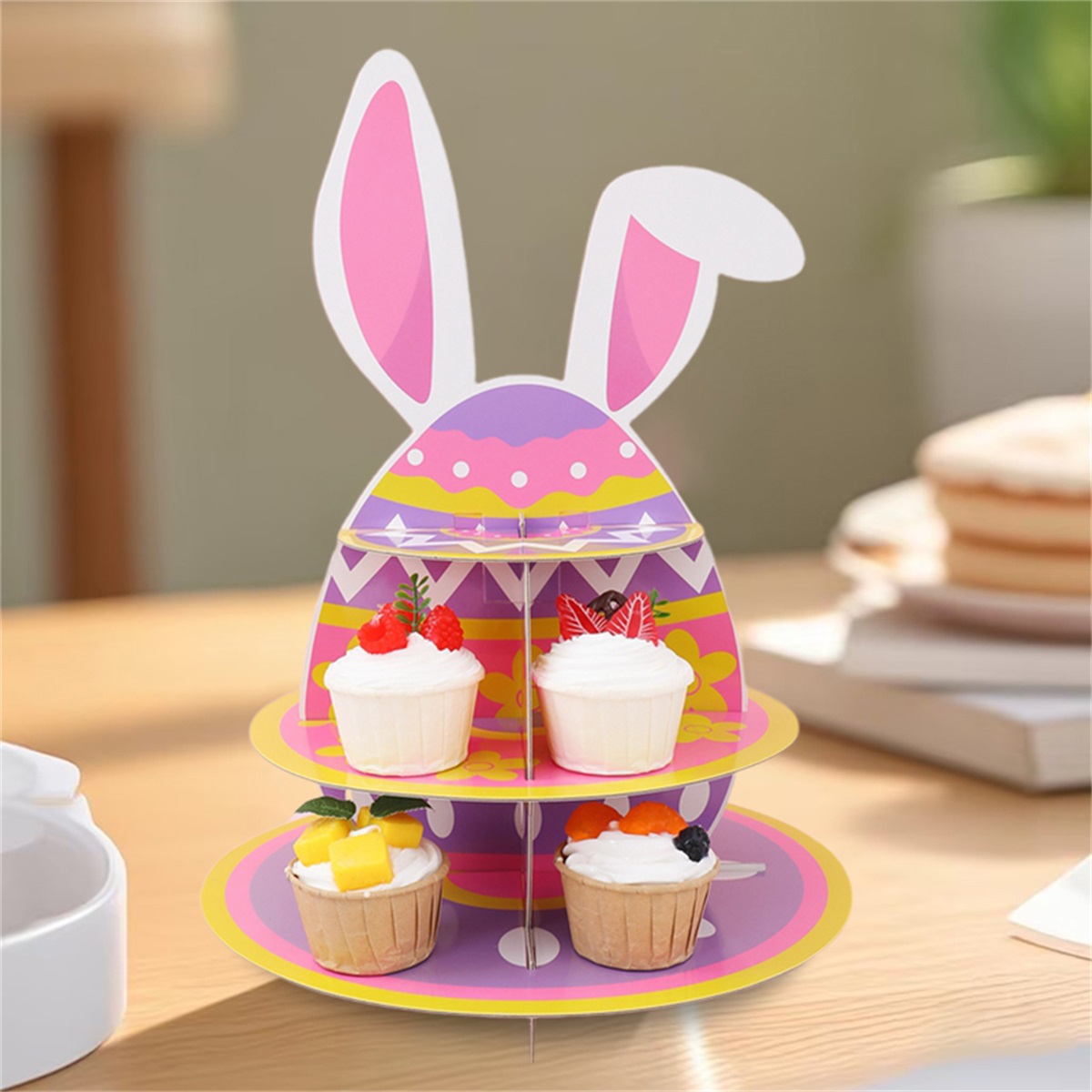 PartyDecorpro: Professional OEM dessert display manufacturer offering factory-direct wholesale paper cupcake stand solutions. This sturdy Easter cupcake holder with bunny ears is lightweight and easy to assemble. Perfect for custom designs, logo printing, patterns and sizes worldwide.