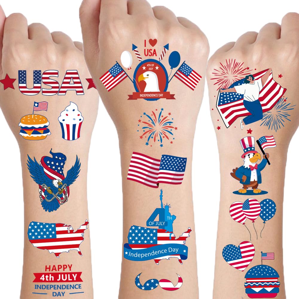 PartyDecorpro 4th of July Temporary Tattoos PartyDecorpro: Professional party supplies manufacturer offering high-quality services, custom temporary tattoos factory solutions and OEM temporary tattoos customization for global buyers. Vibrant Independence Day temporary tattoos, waterproof, easy apply/remove. Perfect for patriotic events and wholesale party supplies OEM orders.