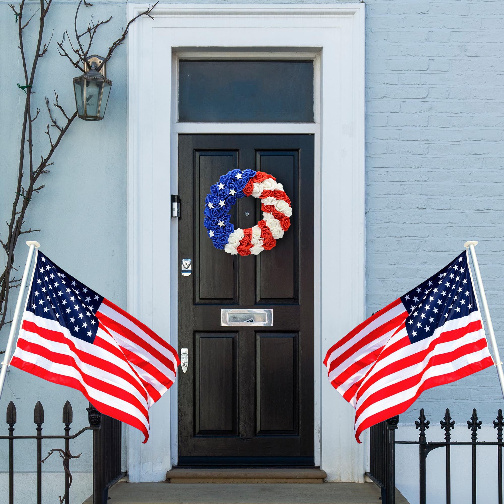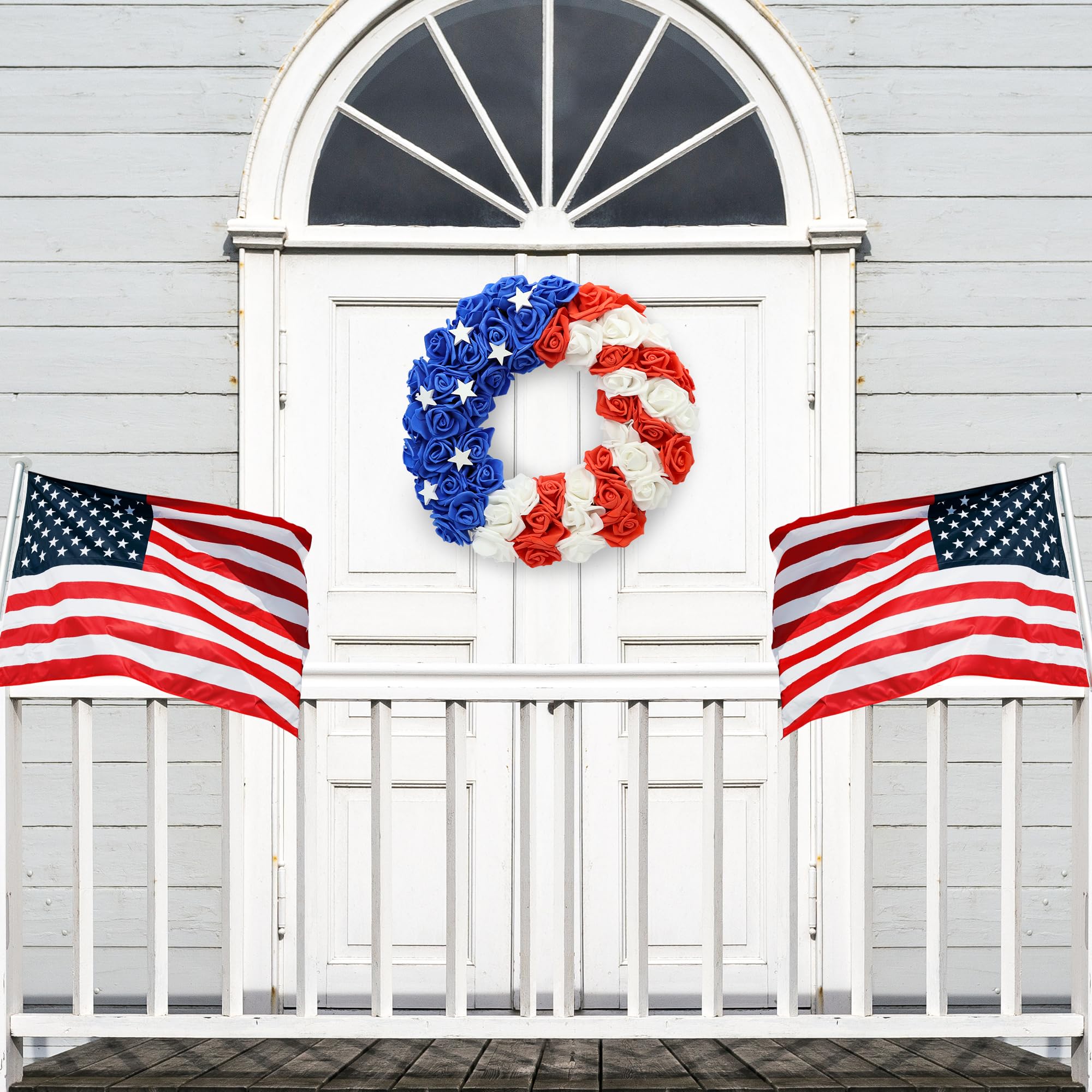 PartyDecorpro 4th of July Wreath with Handmade Wooden Stars