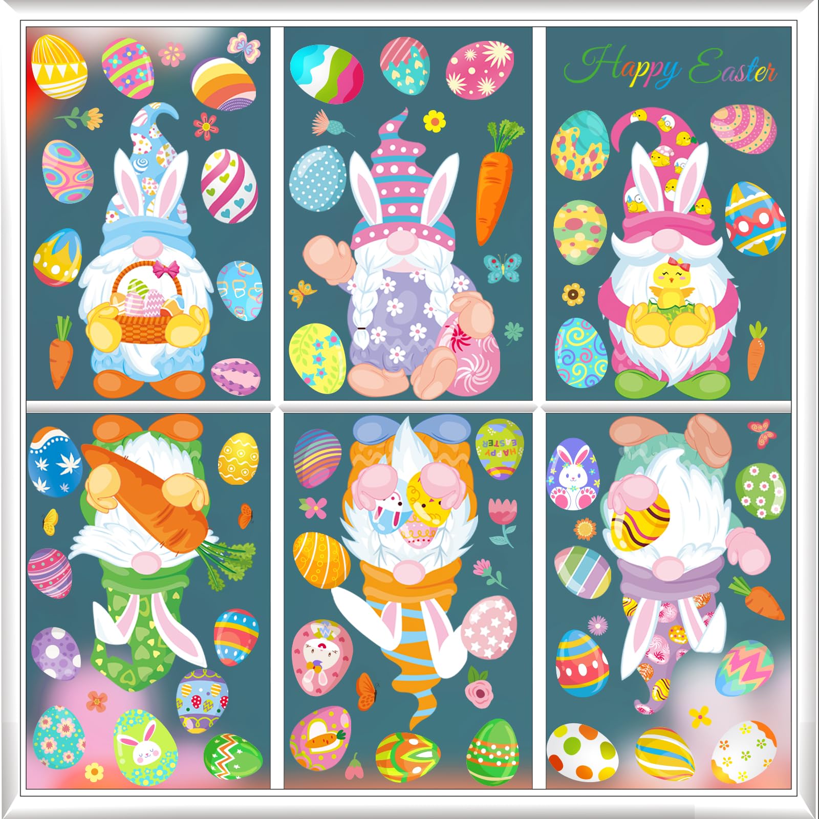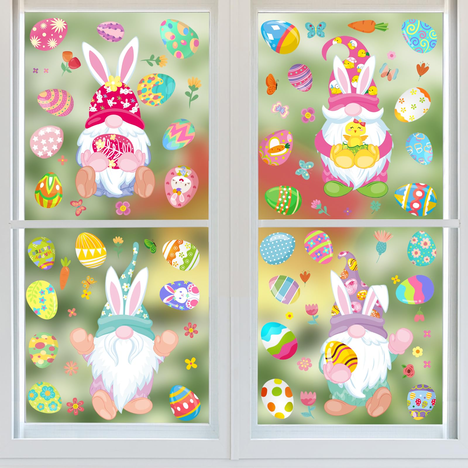 Easter Window Clings: Gnome Bunny Egg Spring Decorations