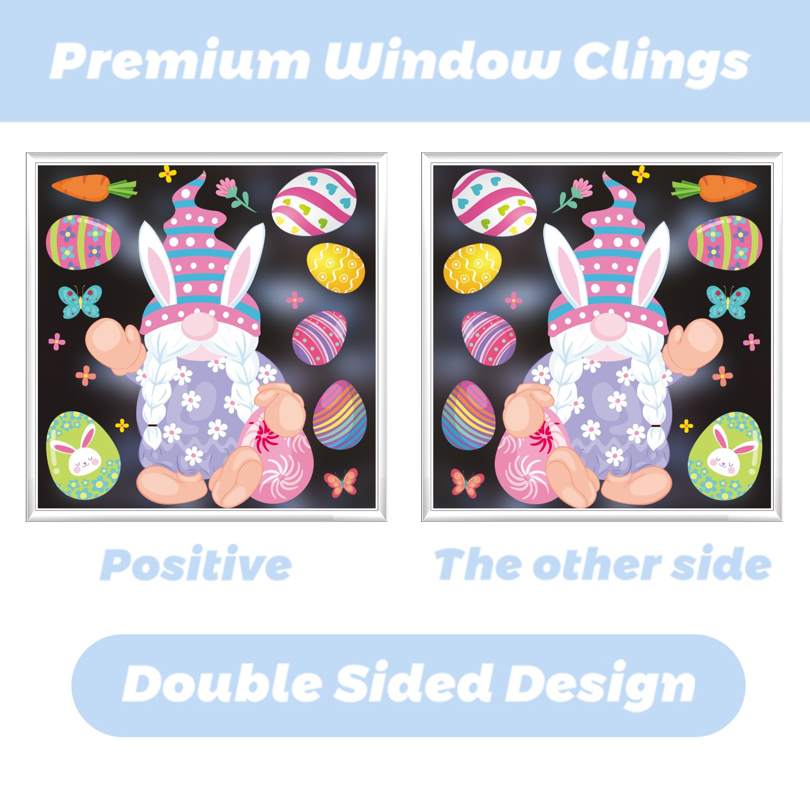 PartyDecorpro: Leading window clings manufacturer and custom window clings supplier for global wholesalers. Premium double-sided easter bunny window decals with adorable gnomes bring festive joy. Reusable static vinyl, perfect for holiday window decals and B2B bulk orders.