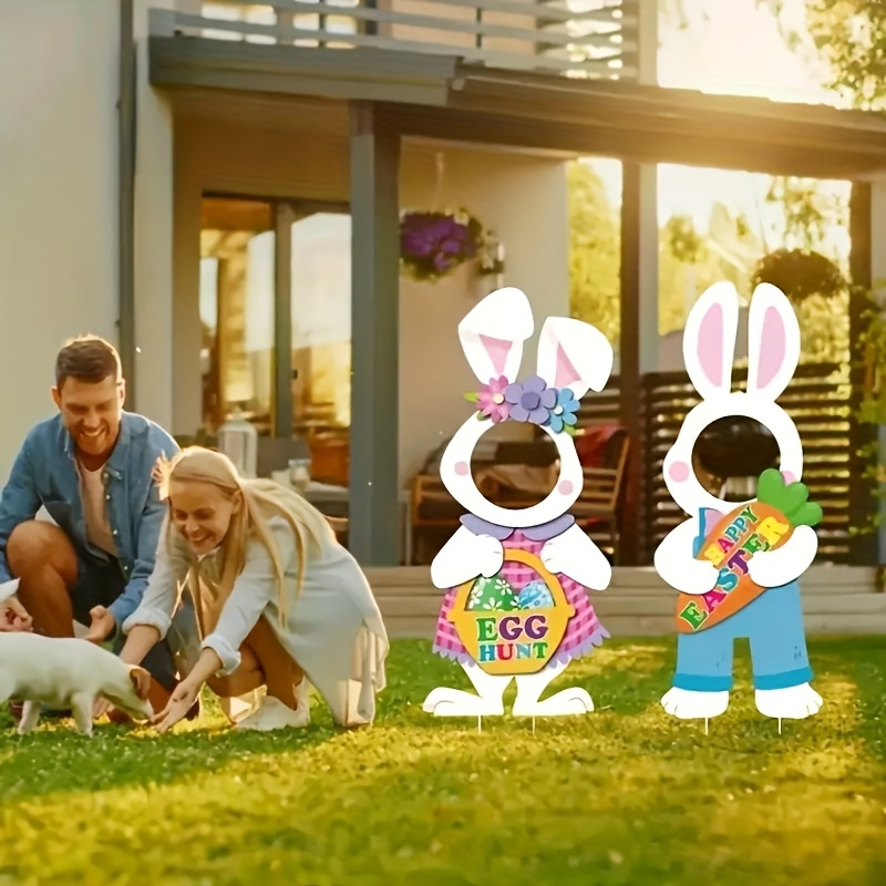 Easter Bunny Yard Signs – Photo Prop Rabbit Lawn Set
